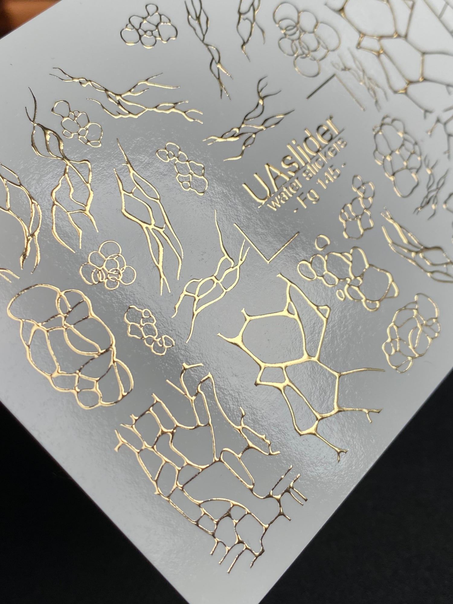 Nail Water Decal Fg-145 | Water Slide Nail Decals with Gold Cracked and Abstract Net Patterns | Modern Nail Art