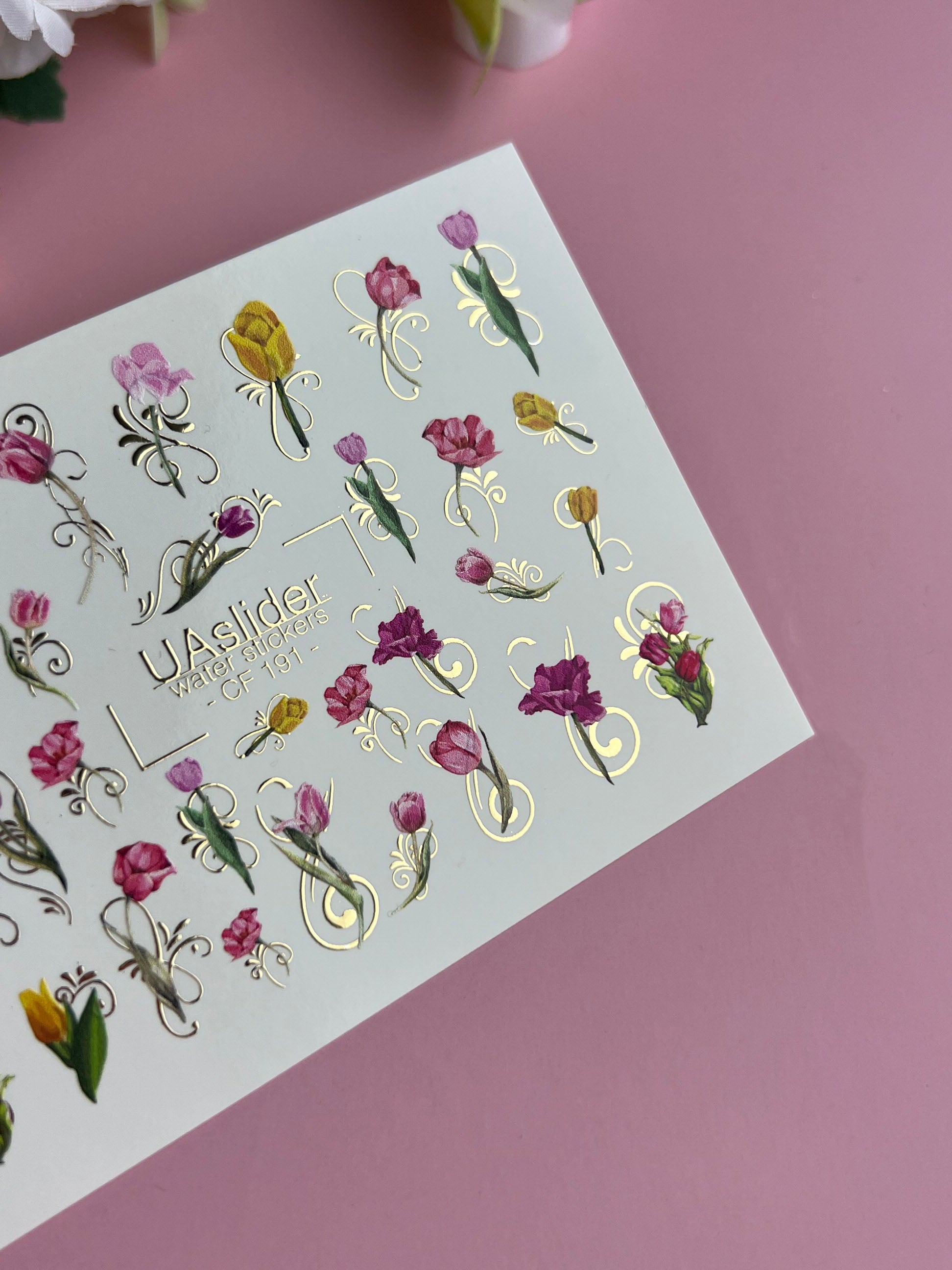 ملصق ماء للأظافر CF-191 | ملصقات ماء للأظافر | زهور التوليب وزخارف الأزهار