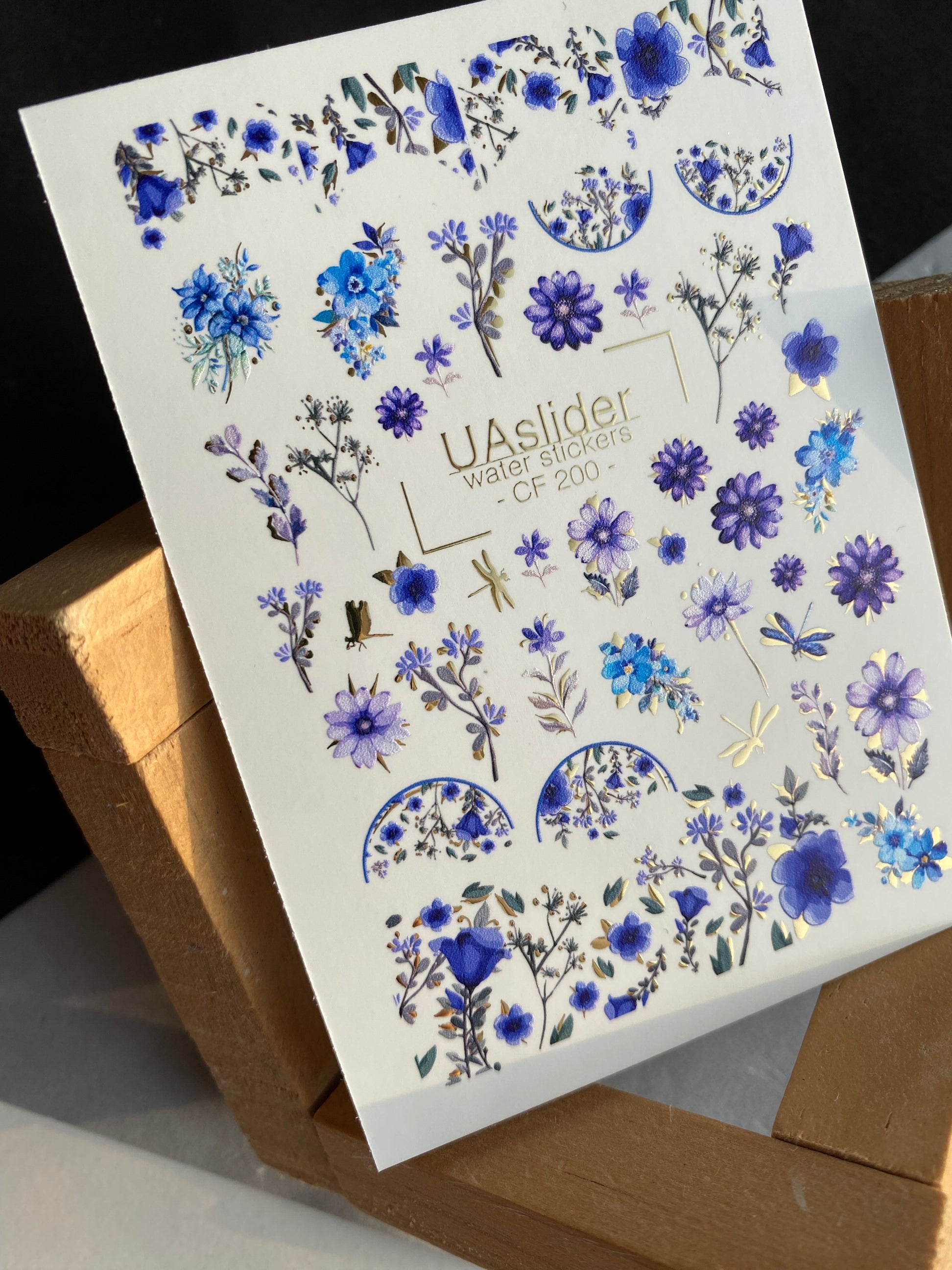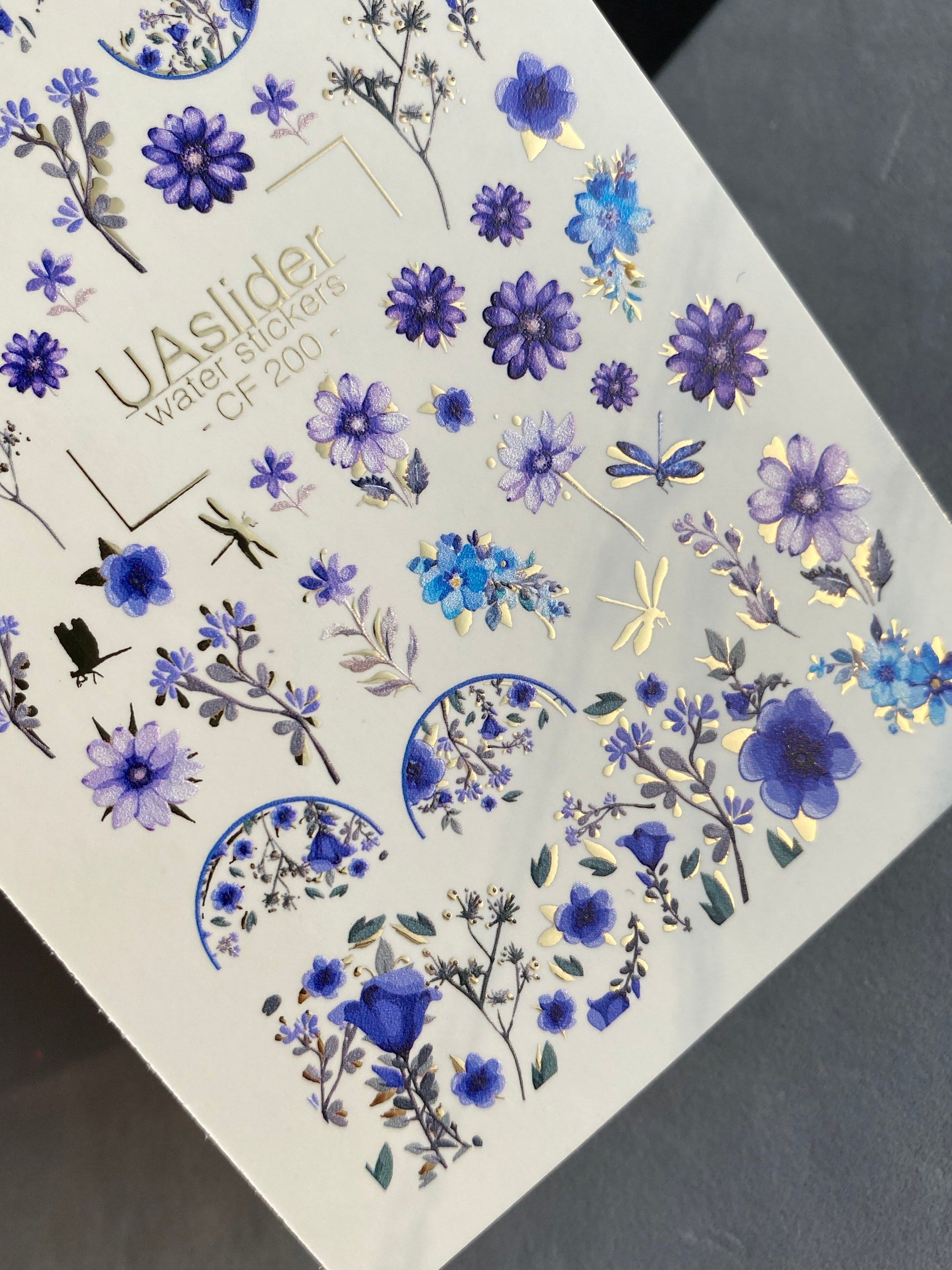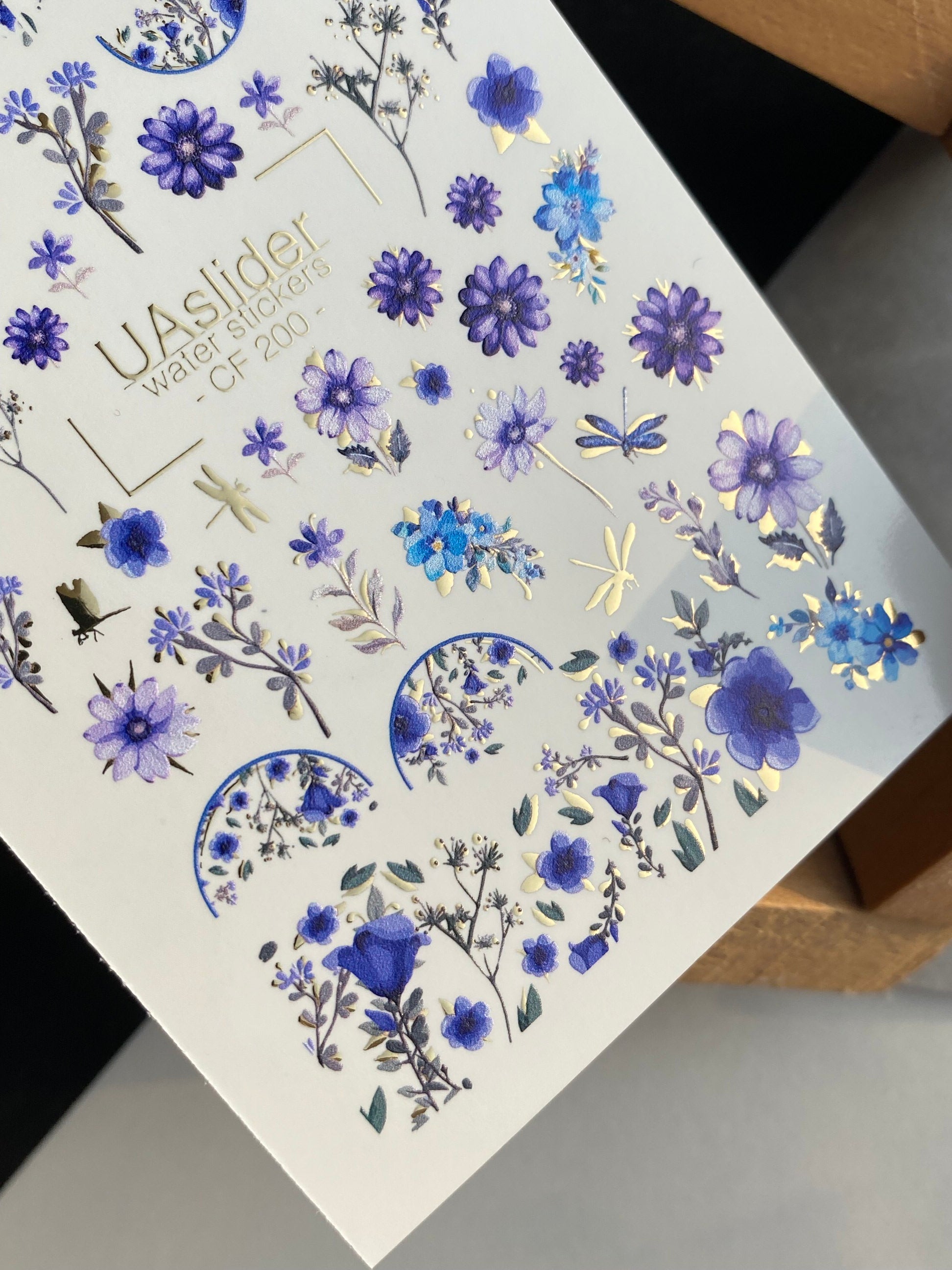 ملصق مائي للأظافر CF-200 | ملصقات مائية للأظافر | نقوش زهرية باللونين الأزرق والبنفسجي
