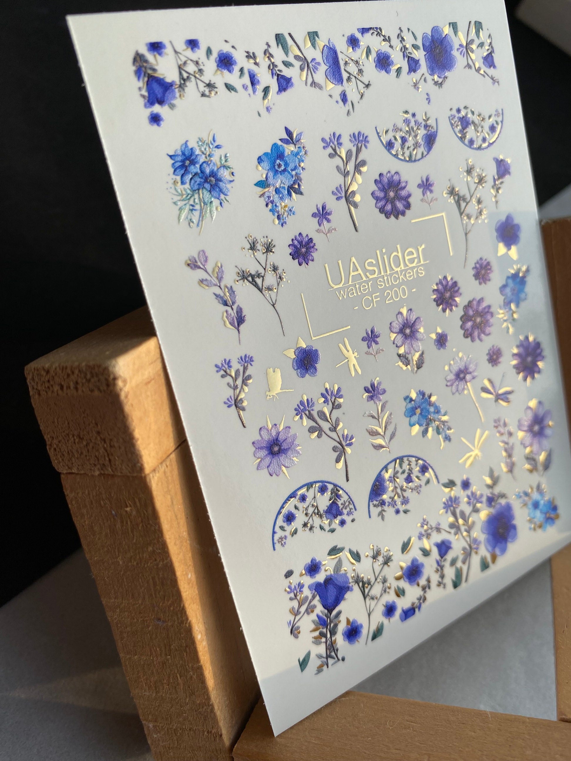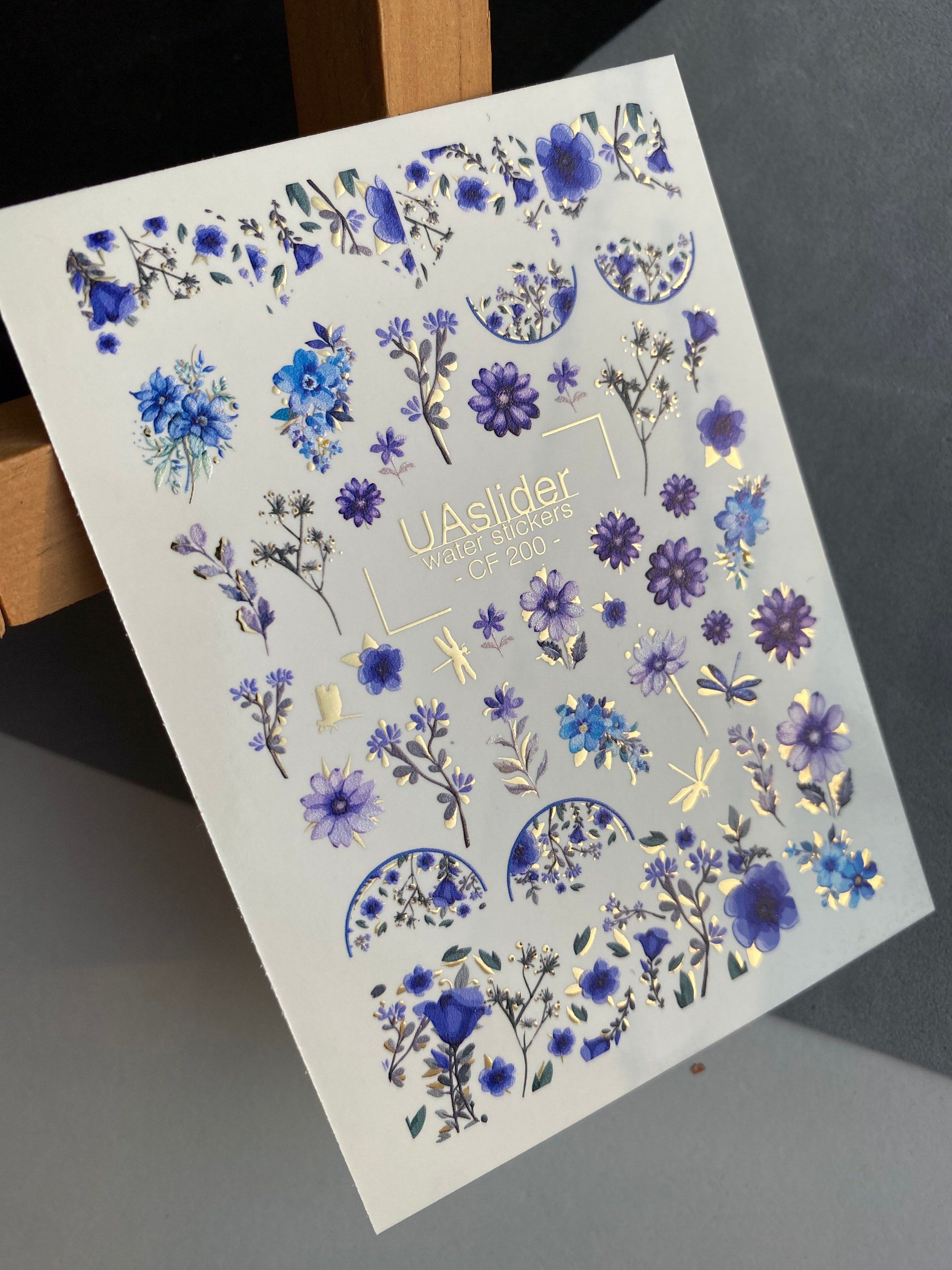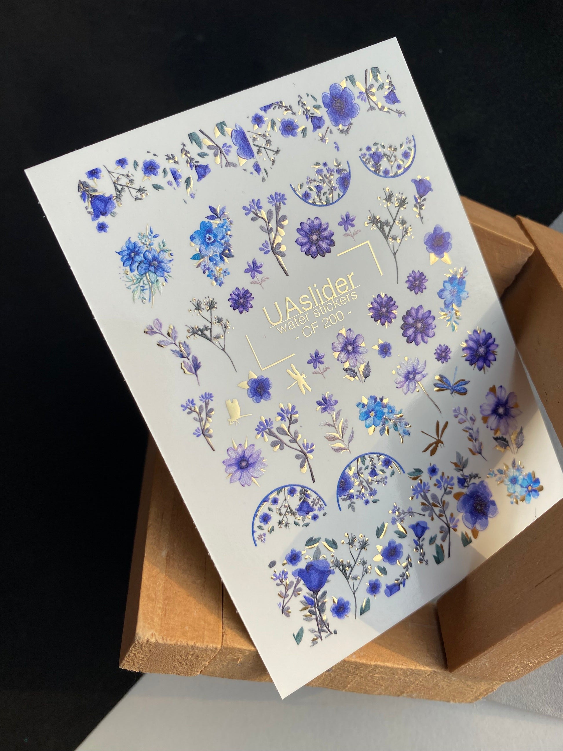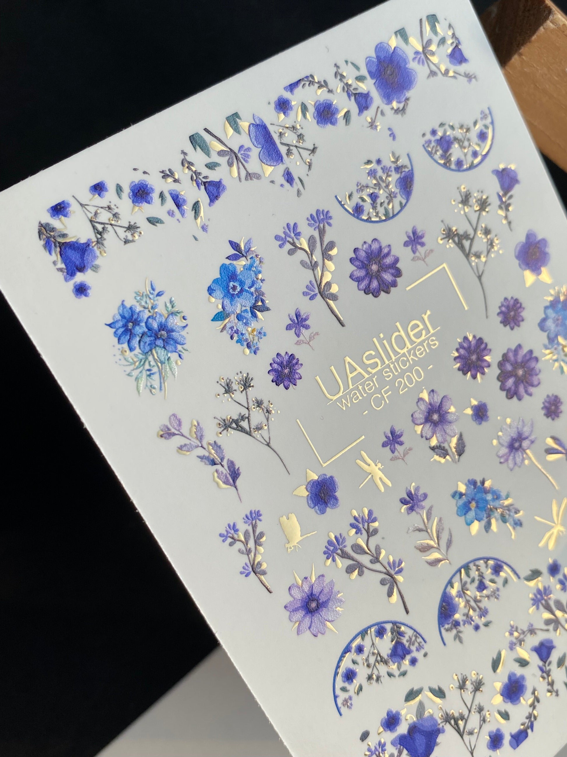 ملصق مائي للأظافر CF-200 | ملصقات مائية للأظافر | نقوش زهرية باللونين الأزرق والبنفسجي
