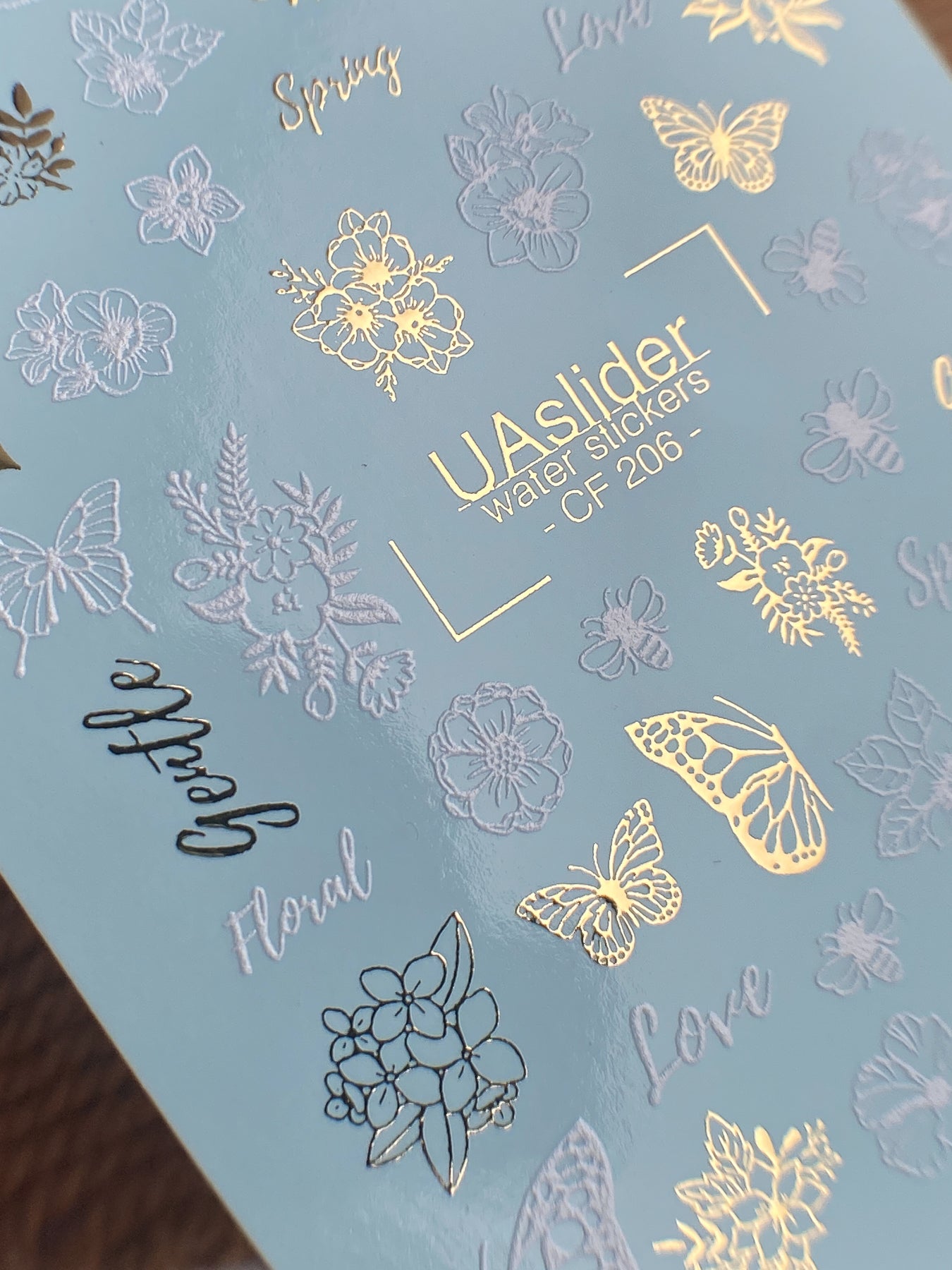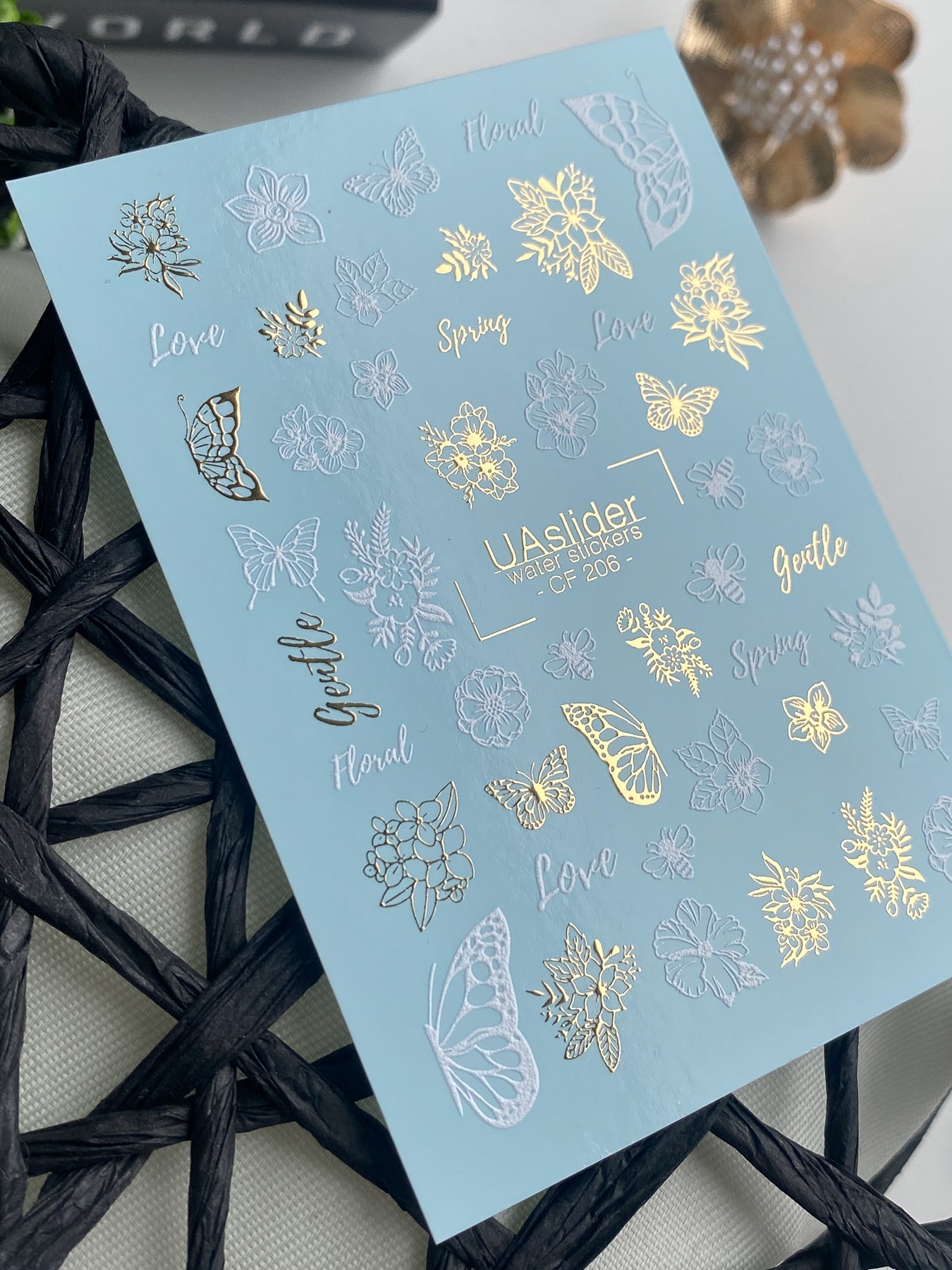 ملصق مائي للأظافر CF-206 | ملصقات مائية للأظافر | تصاميم زهرية ناعمة وفراشات مع ورق ذهبيCF_206