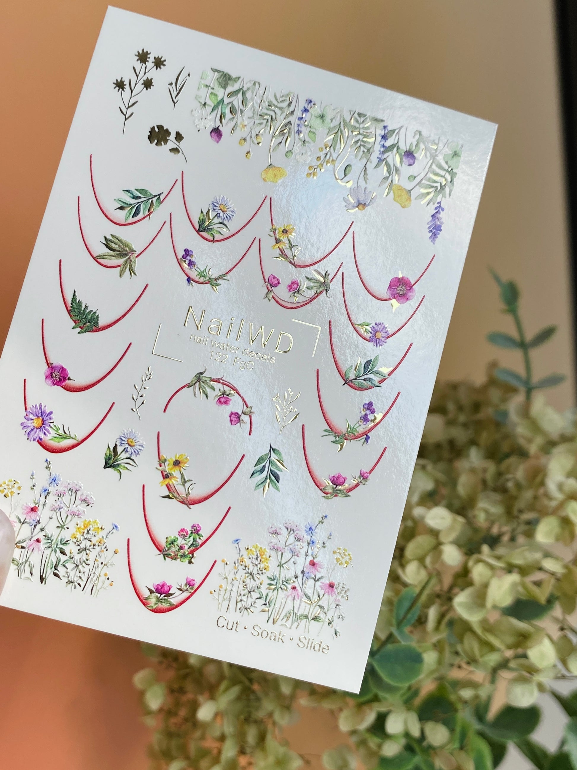 Nálepka na nehty 122 NailWD | Vodní obtisky na nehty květinové francouzské | Design divokých květin na okraji