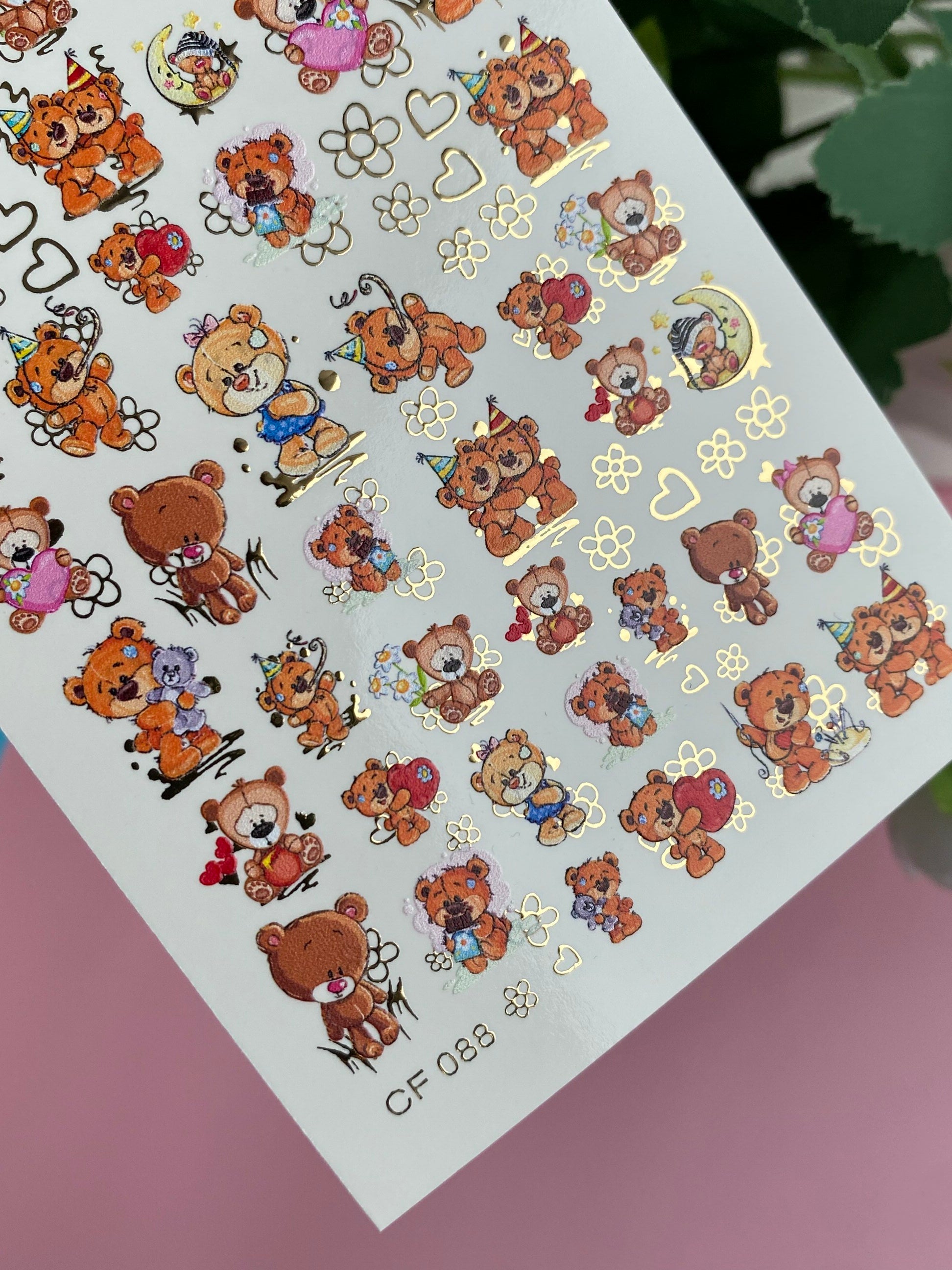 Nálepka na nehty CF-088 | Roztomilá vodní nálepka na nehty s medvídkem | Narozeniny, láska a ospalí medvídci