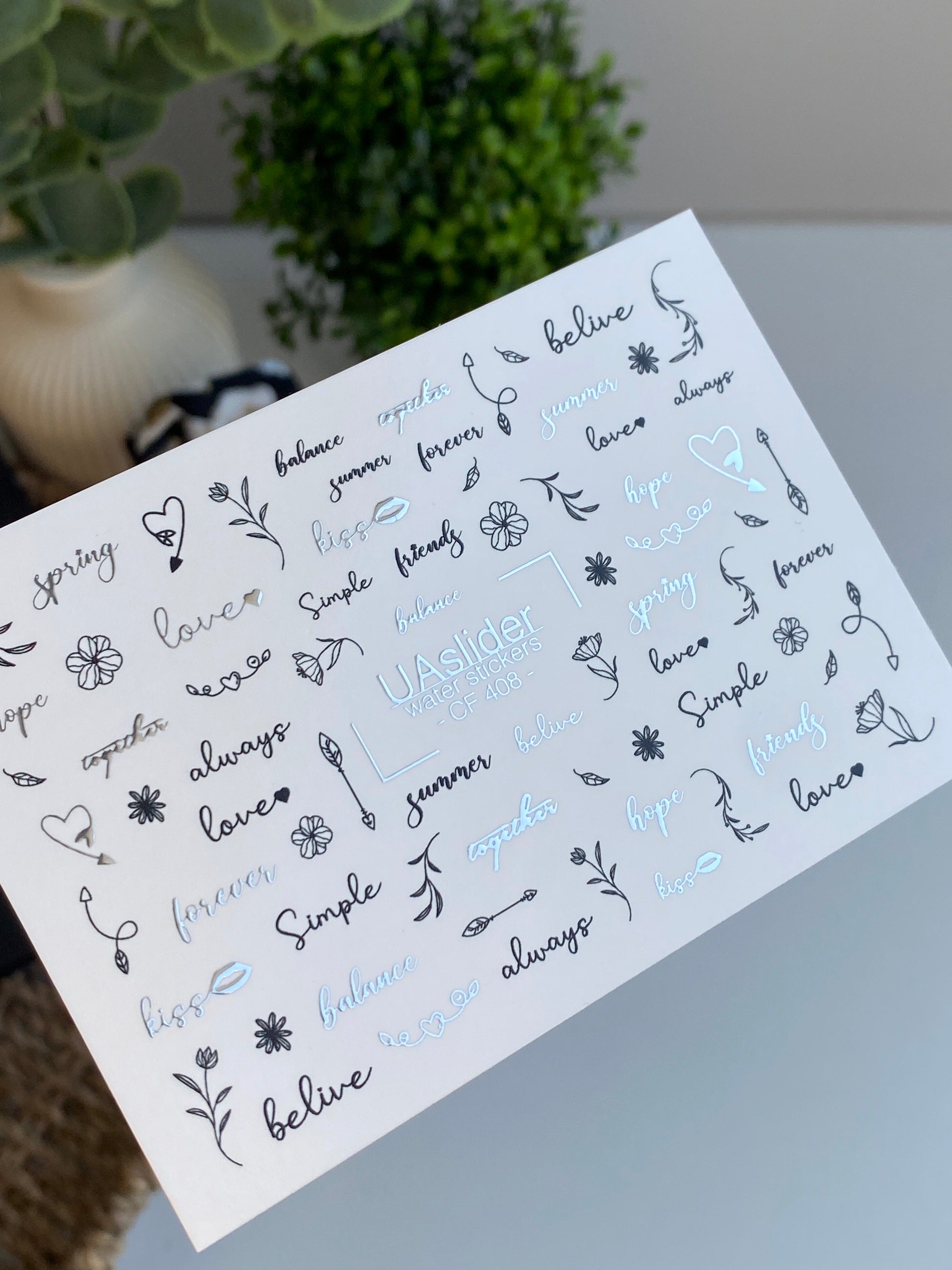 Nálepka na nehty CF-408 | Minimalistické citáty a květinové nálepky na nehty | Vodní posuvné nálepky CF 408