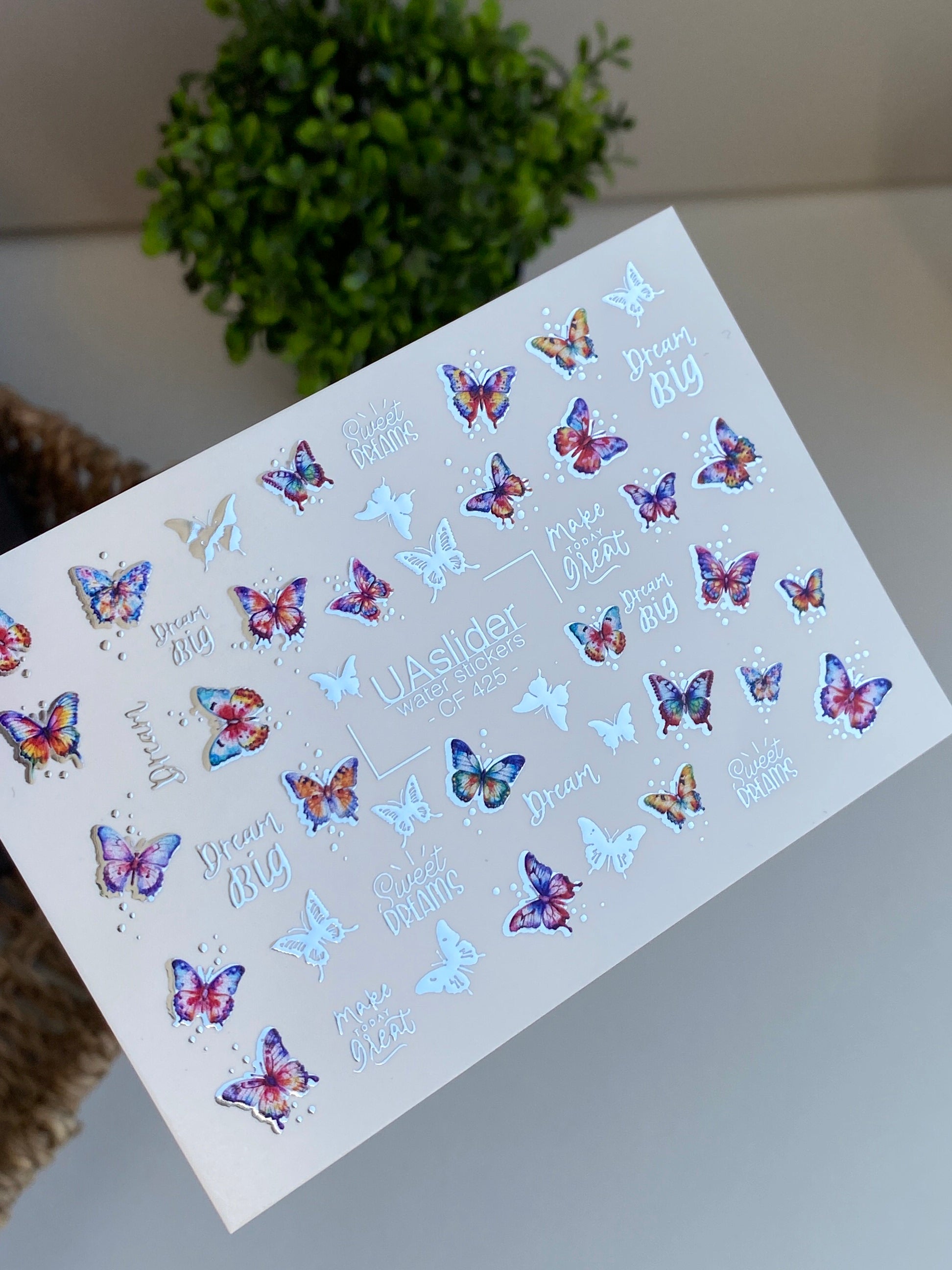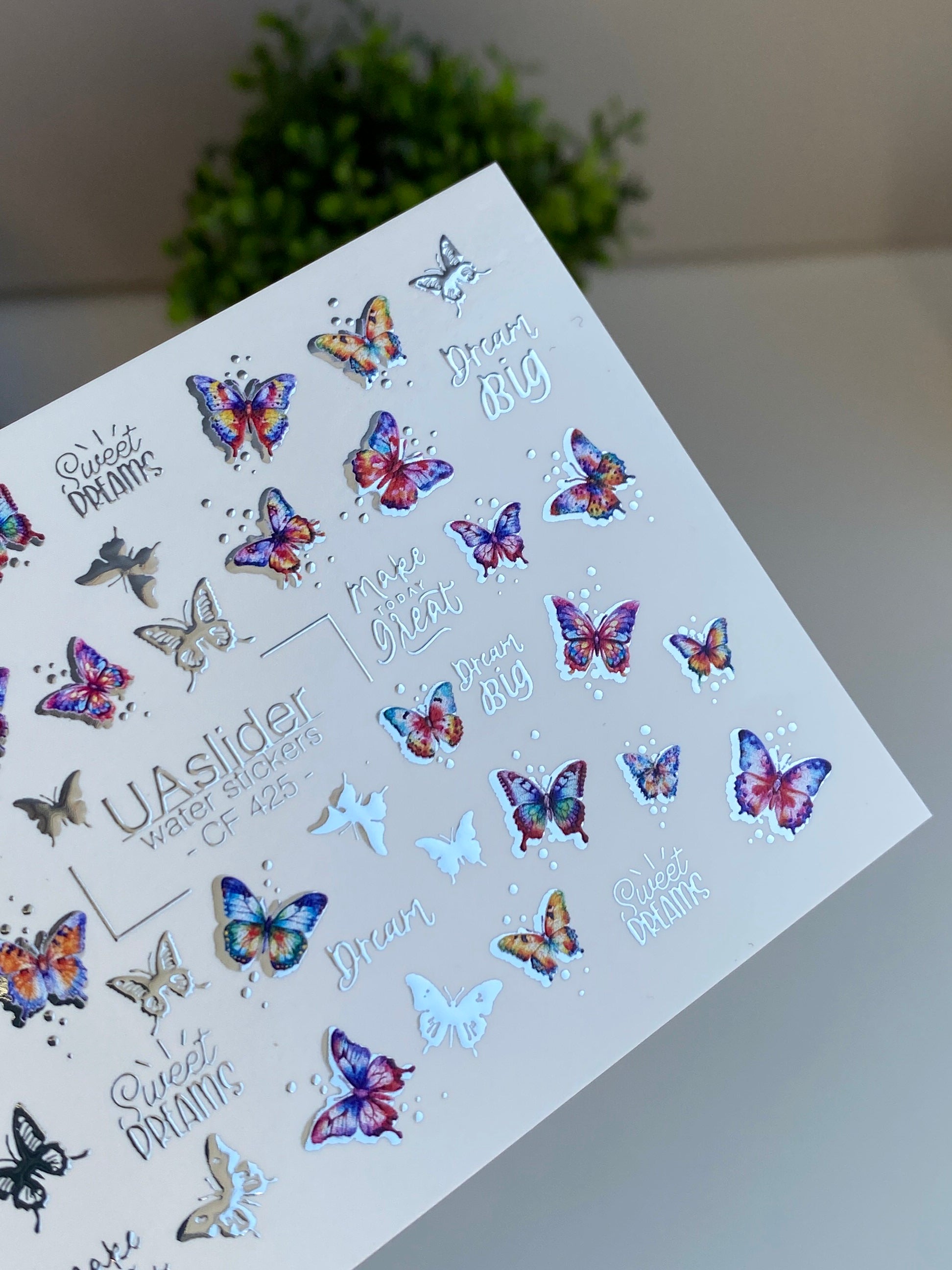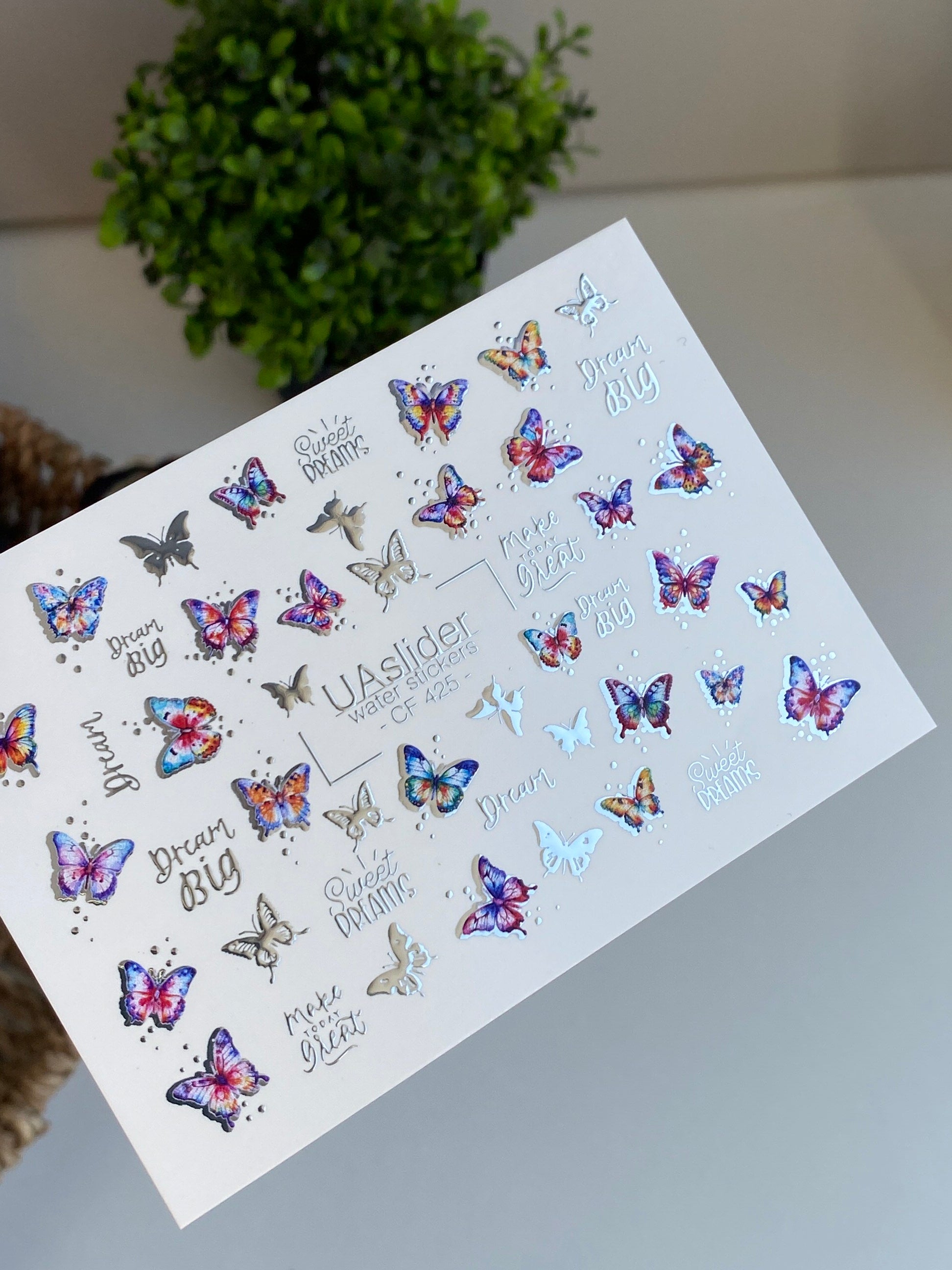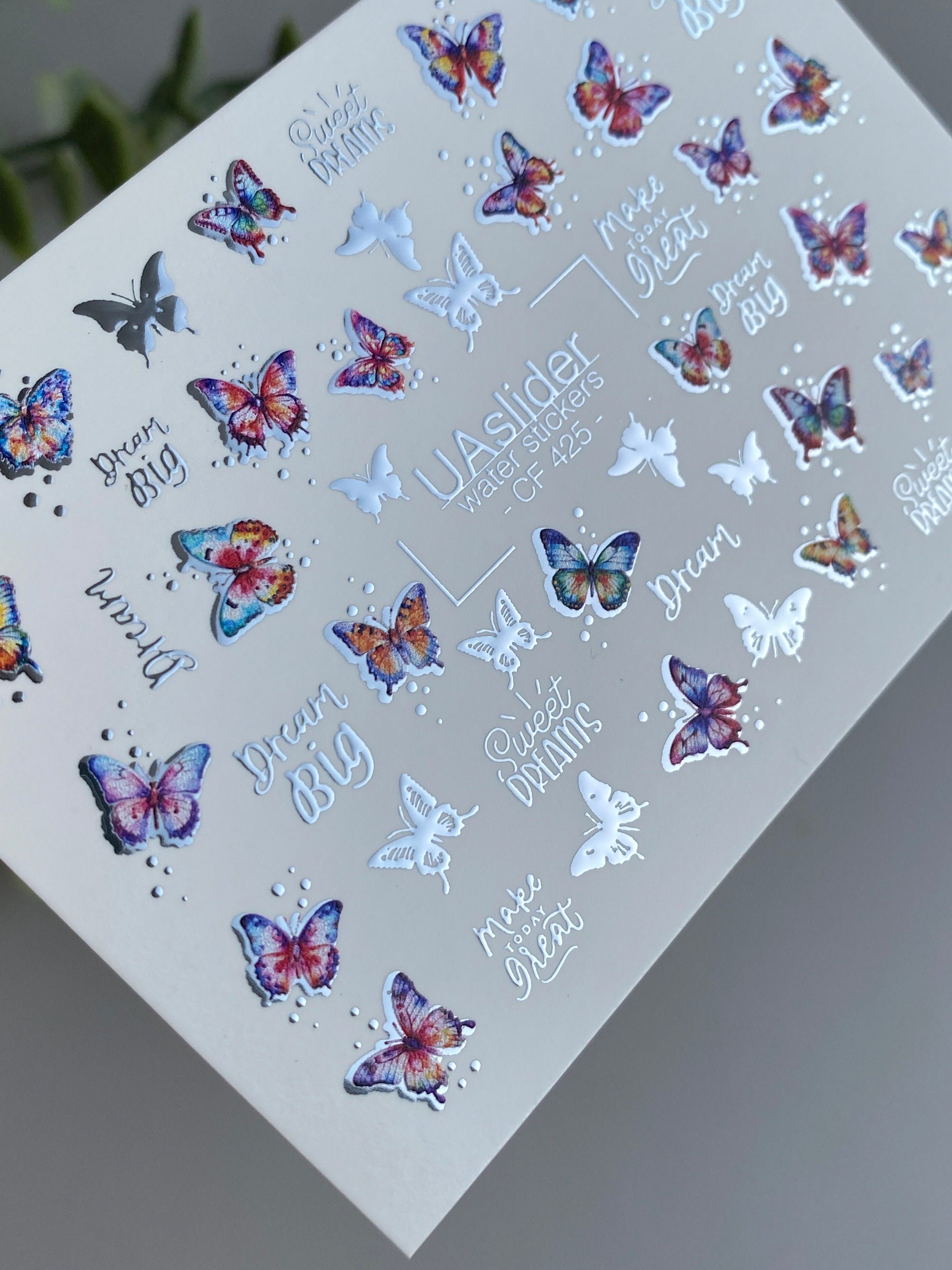 Nálepka na nehty CF-425 | Barevné motýly vodní nálepky na nehty | Sny velké & sladké sny citátyCF_425