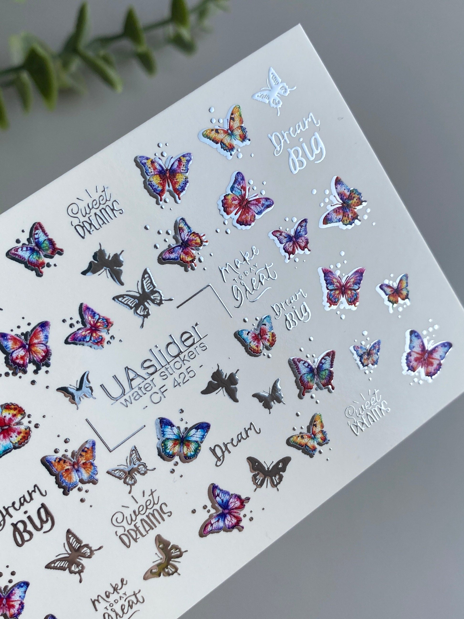 Nálepka na nehty CF-425 | Barevné motýly vodní nálepky na nehty | Sny velké & sladké sny citáty