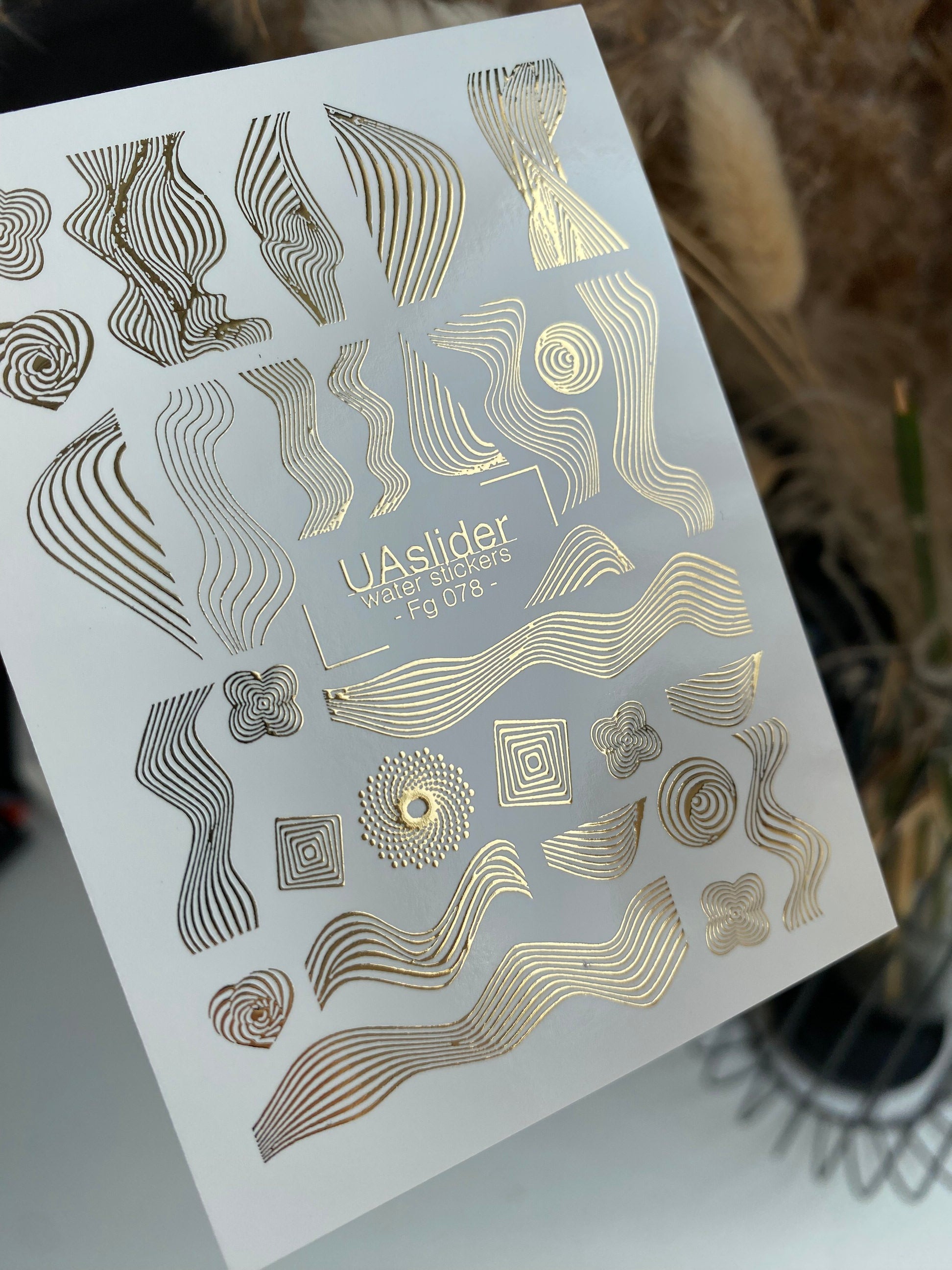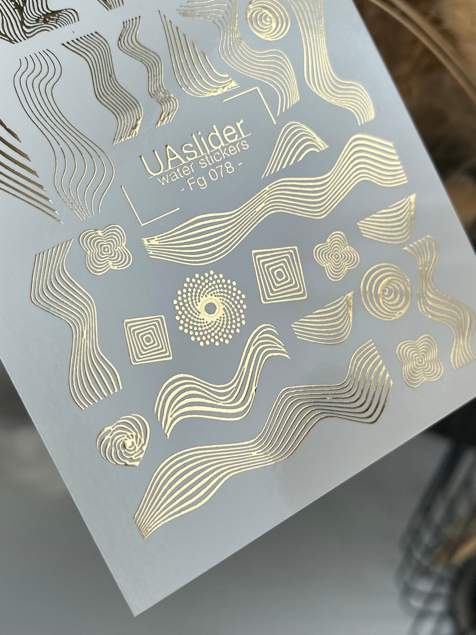 Nálepky na nehty Fg-078 | Zlaté fóliové vodní nálepky na nehty | Abstraktní vlny a geometrické linieFg_078