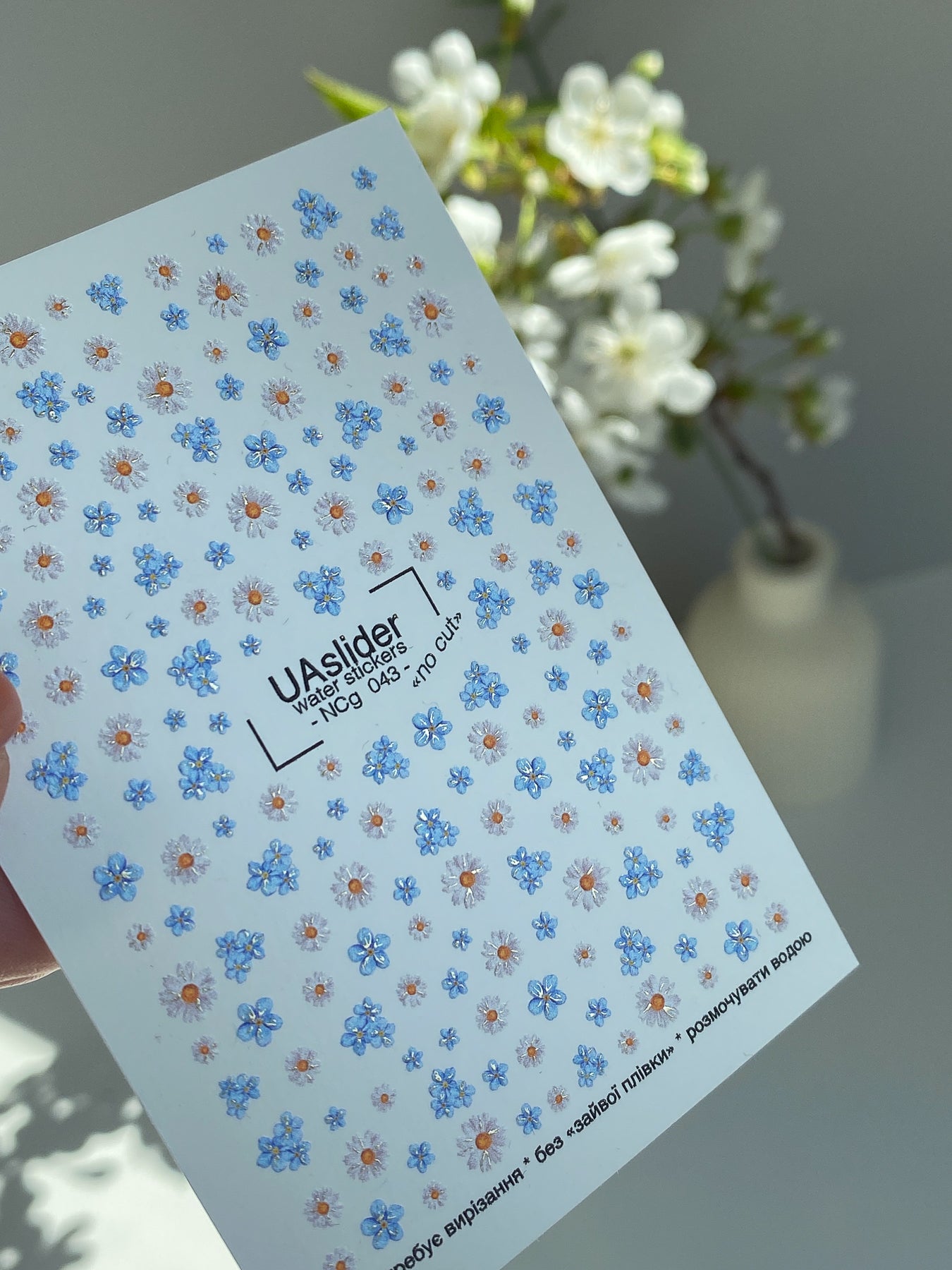 Nálepka na nehty NCg-043 | Vodní nálepky na nehty | Modré pomněnky a sedmikráskyNCg_043