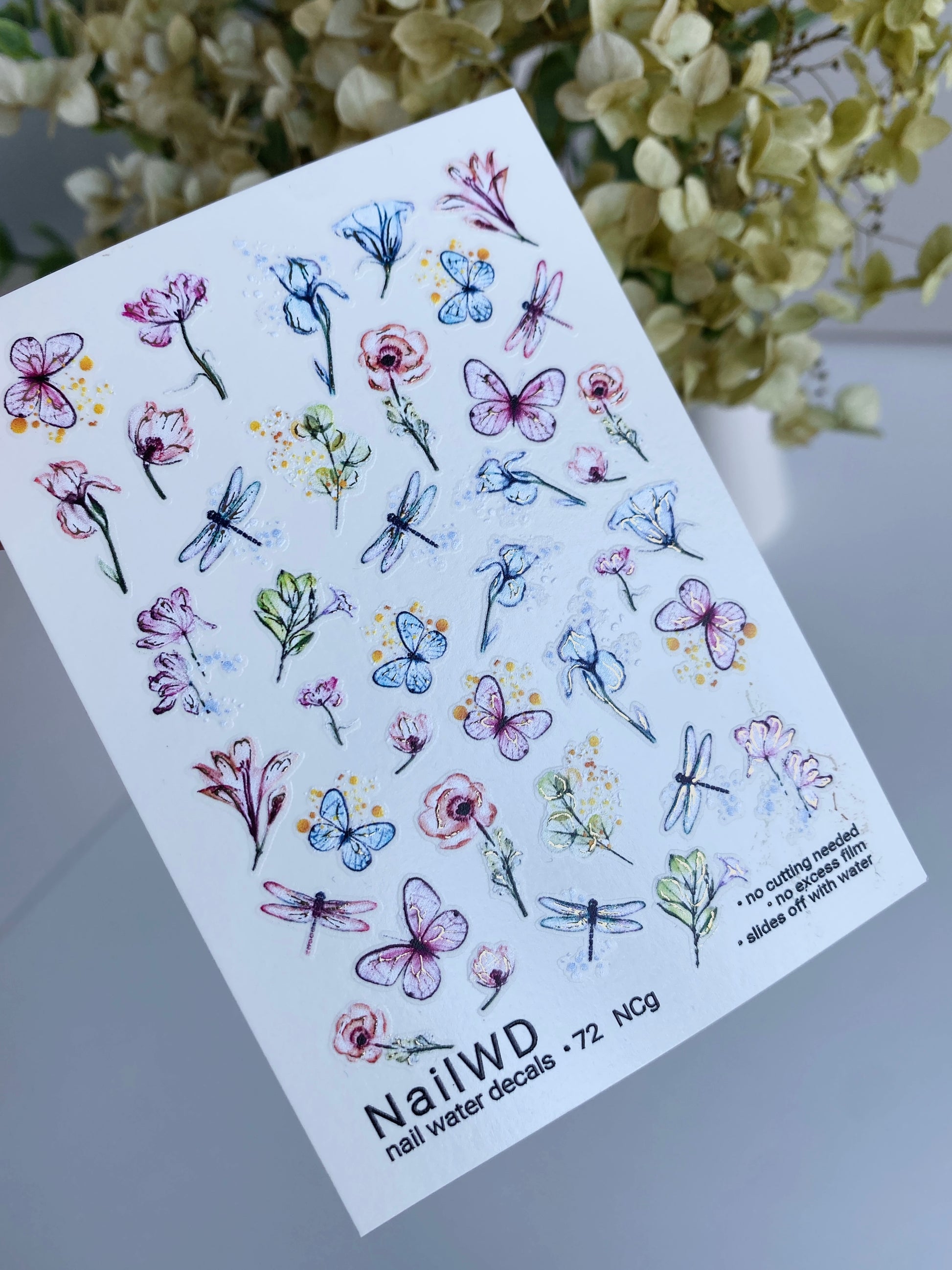 Nagel Wasserabziehbild 72 NailWD | Wasserfolien Nagelabziehbilder Blumen, Schmetterlinge & Libellen | Verspieltes Gartenset