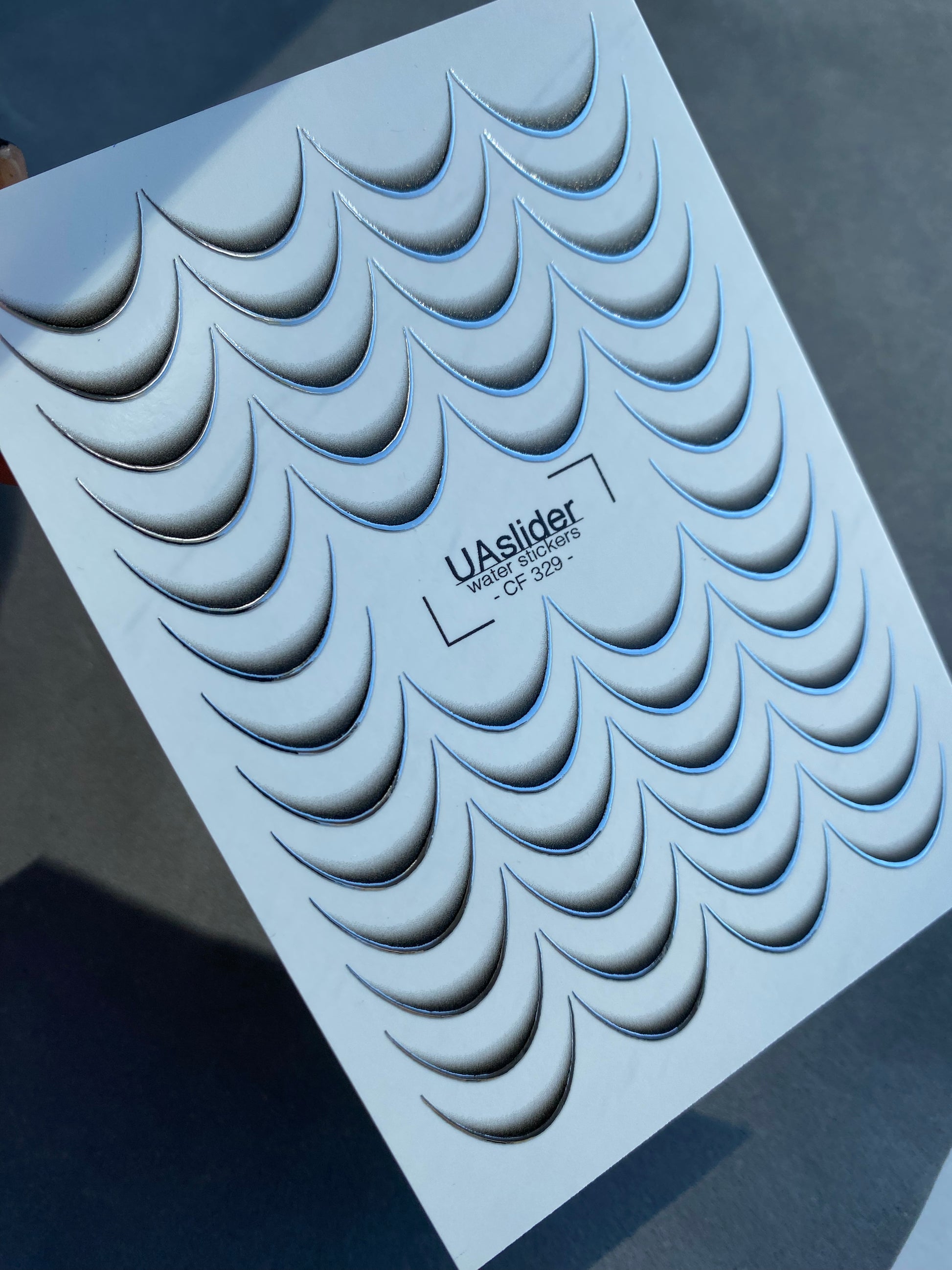 Nagel Wasserabziehbild CF-329 | Französische Wasserfolien Nagelabziehbilder | Schwarz und Silber Farbverlauf Spitzen