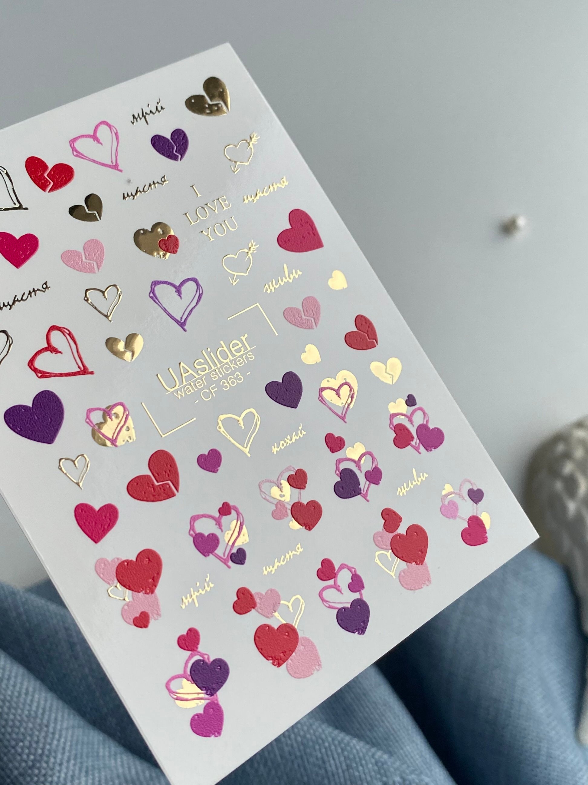Nagel Wasserabziehbild CF-363 | Wassertransfer Nagelabziehbilder | Romantische Herzen & LiebeszitateCF_363
