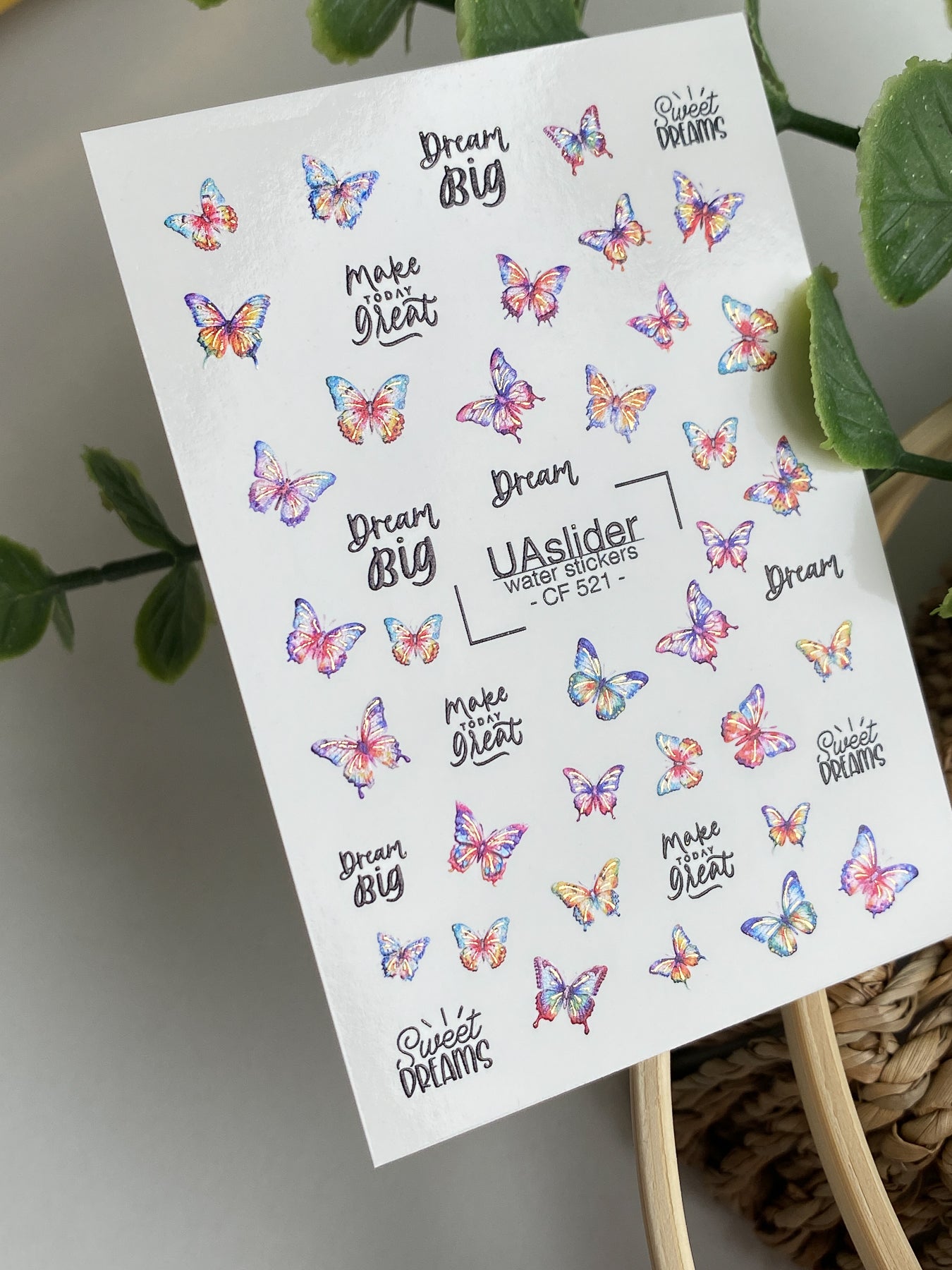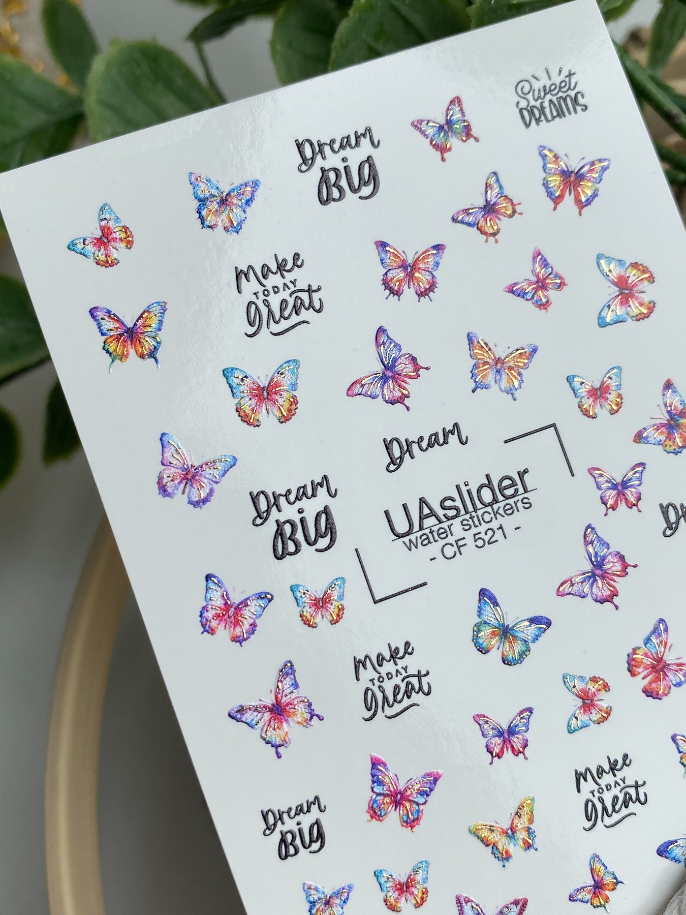 Nagel Wasserabziehbild CF-521 | Wasserabzieh-Nagelaufkleber mit bunten Schmetterlingen & Zitaten | Inspirierende NagelkunstCF_521