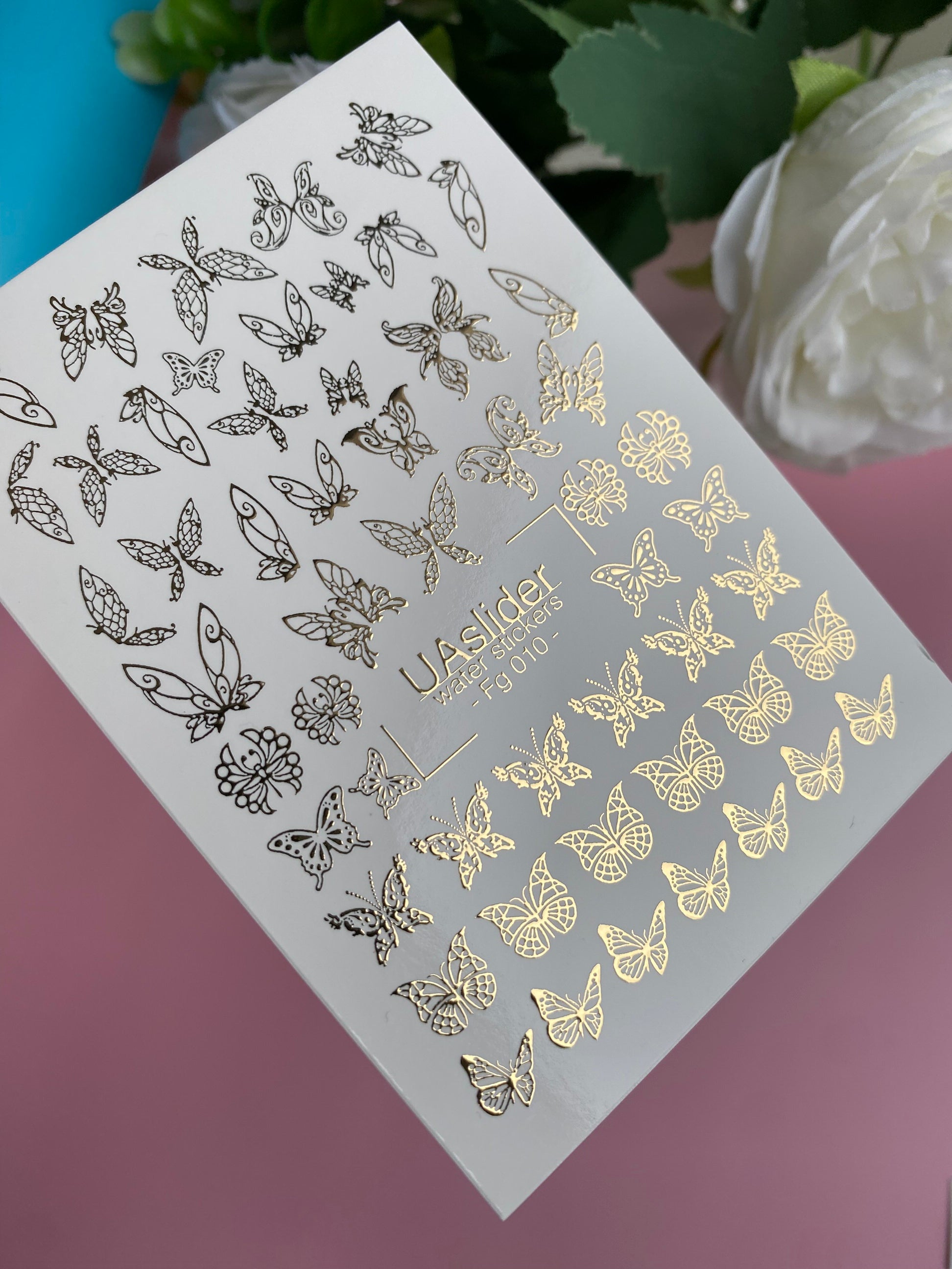 Nagel Wasserabziehbild Fg-010 | Schmetterling Wasserfolien Nagelabziehbilder mit Goldfolie | Elegante Insektenmotive