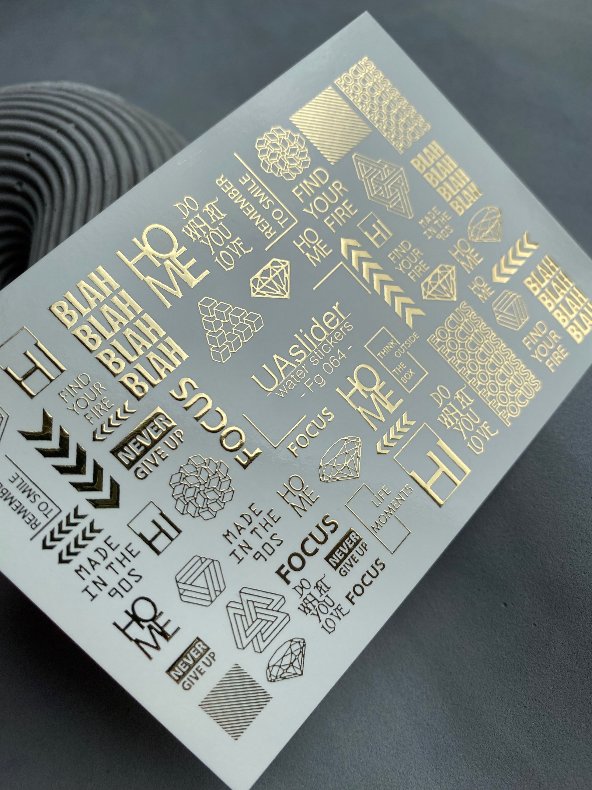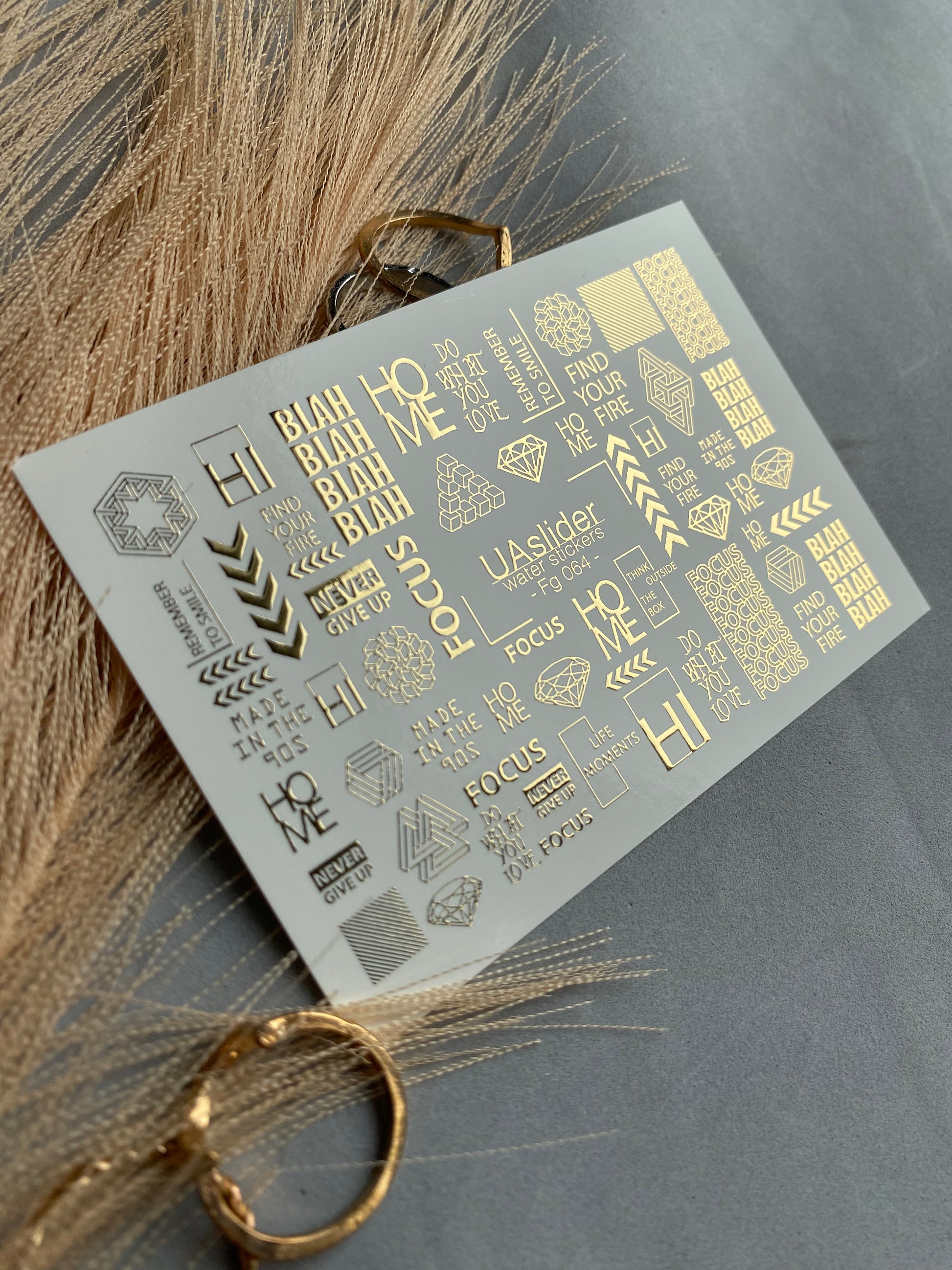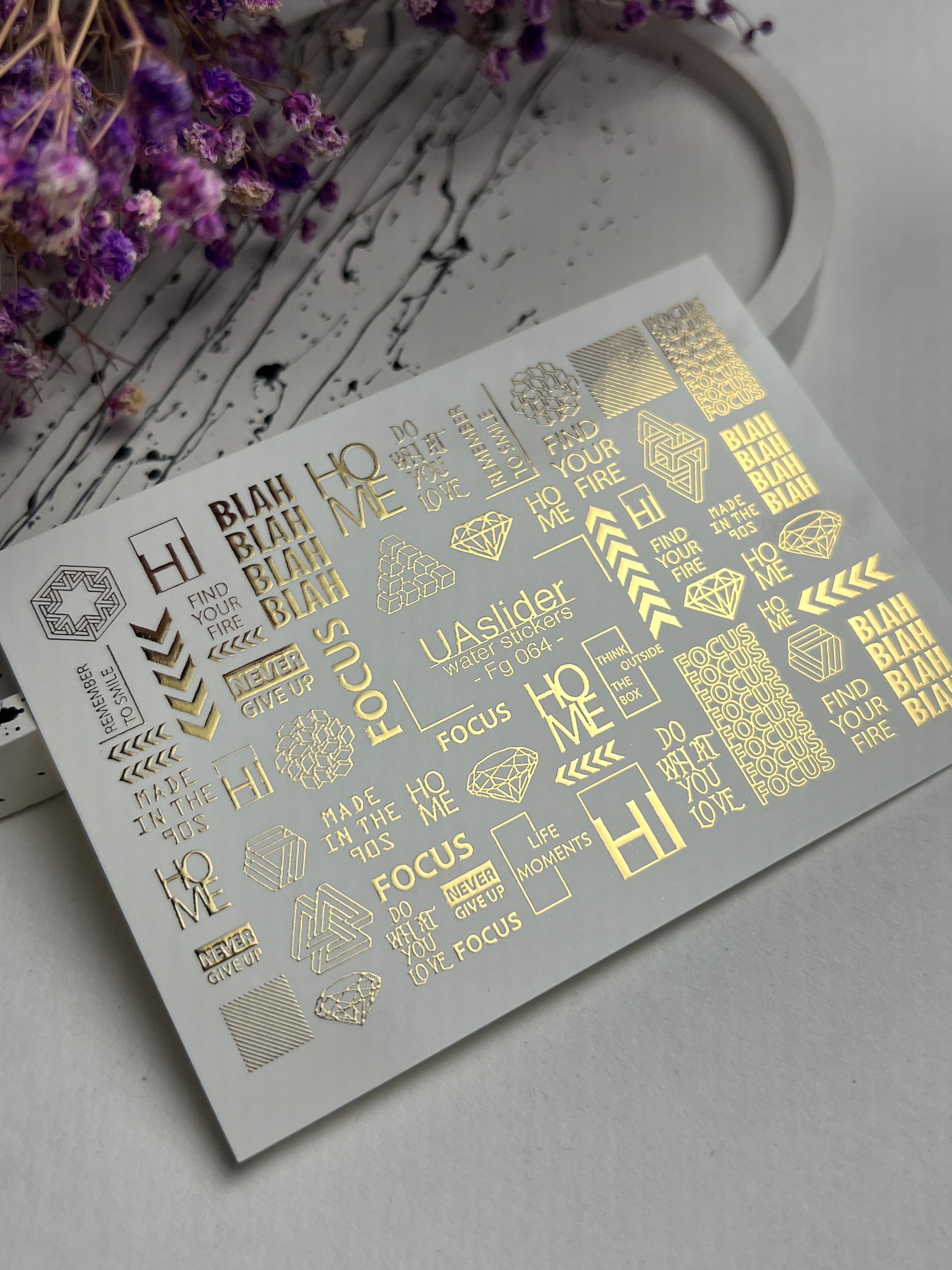 Nagel Wasserabziehbild Fg-064 | Goldfolie Wasser-Schiebefolie Nagelabziehbilder | Geometrische Formen & MotivationswörterFg_064