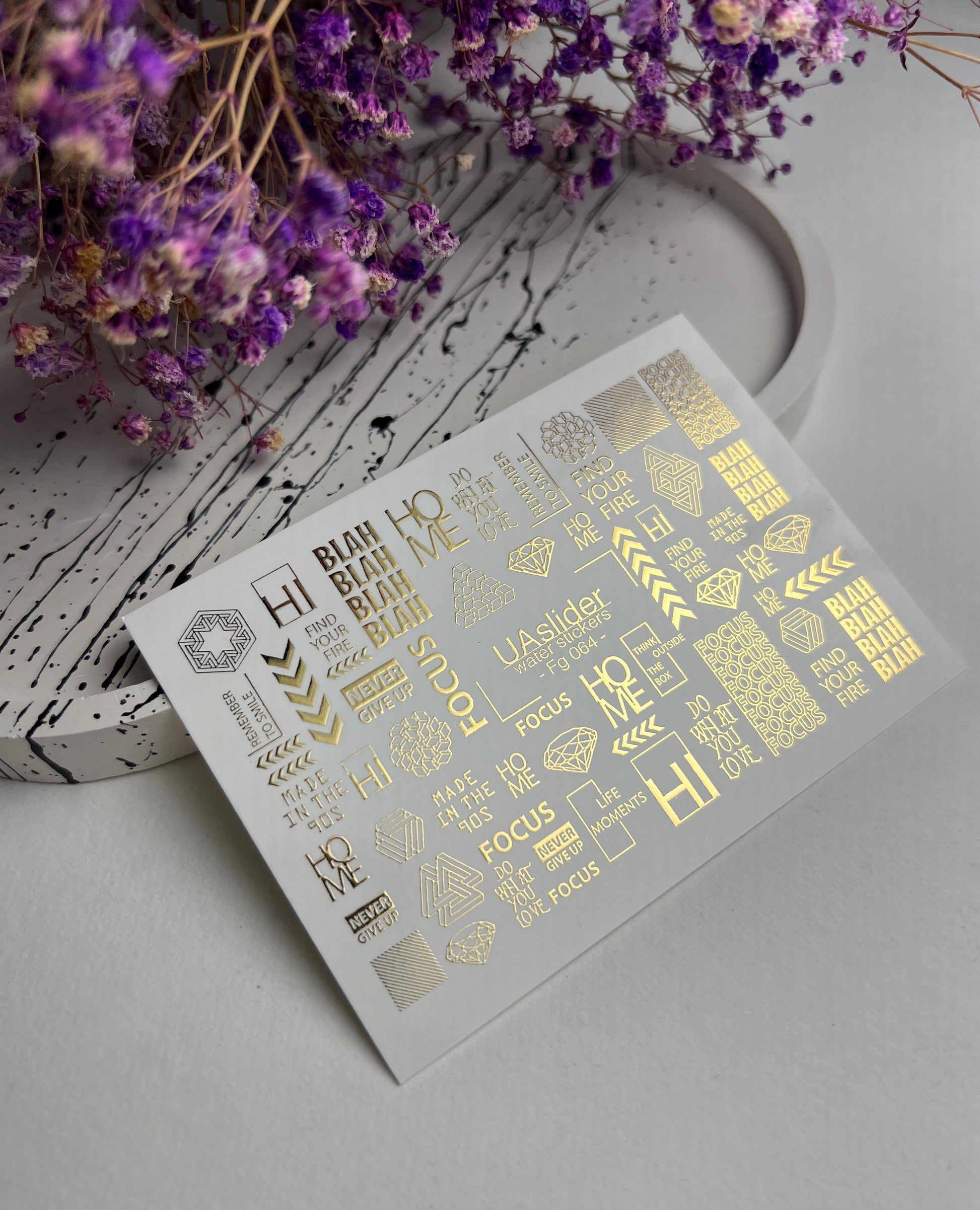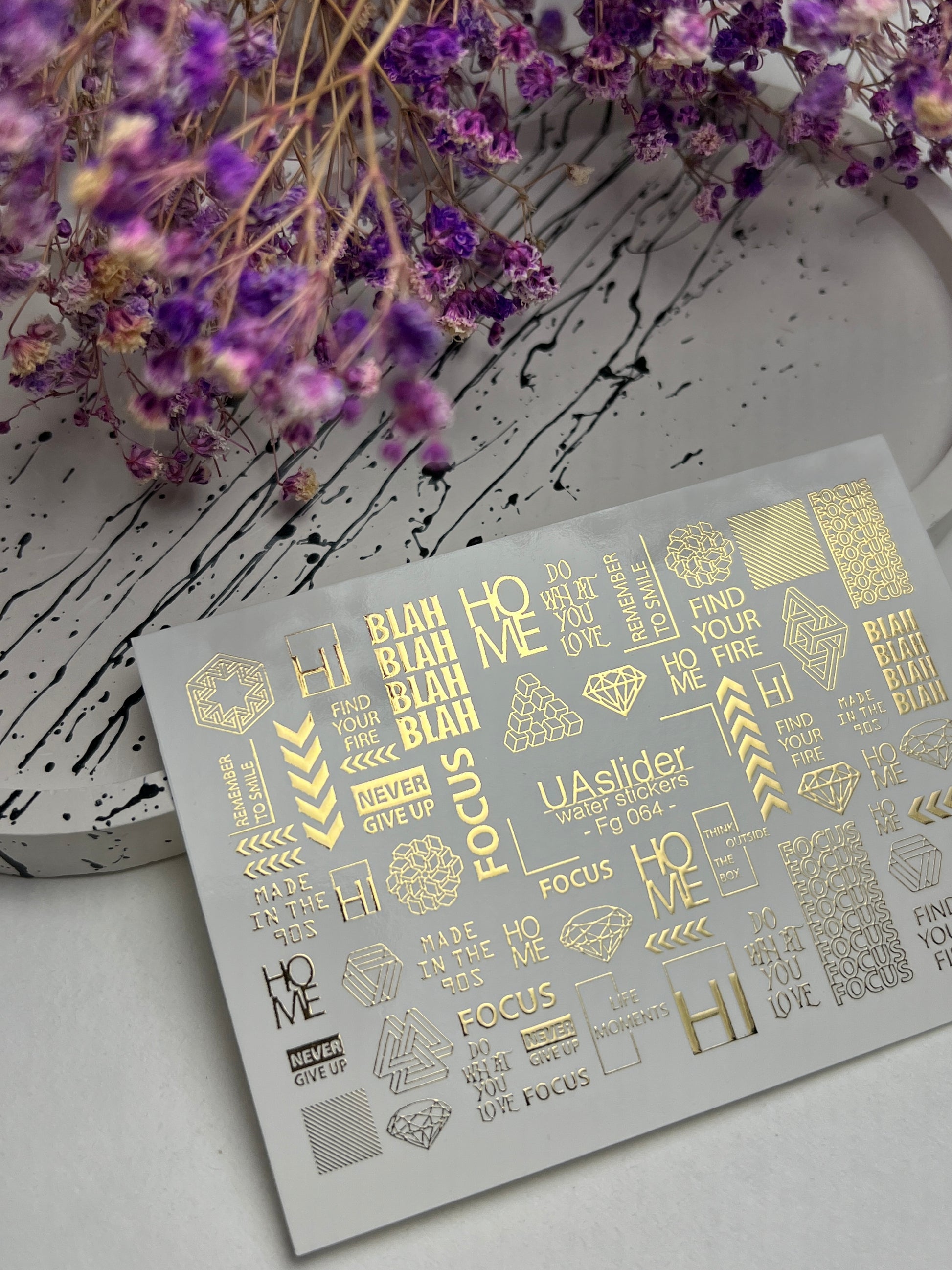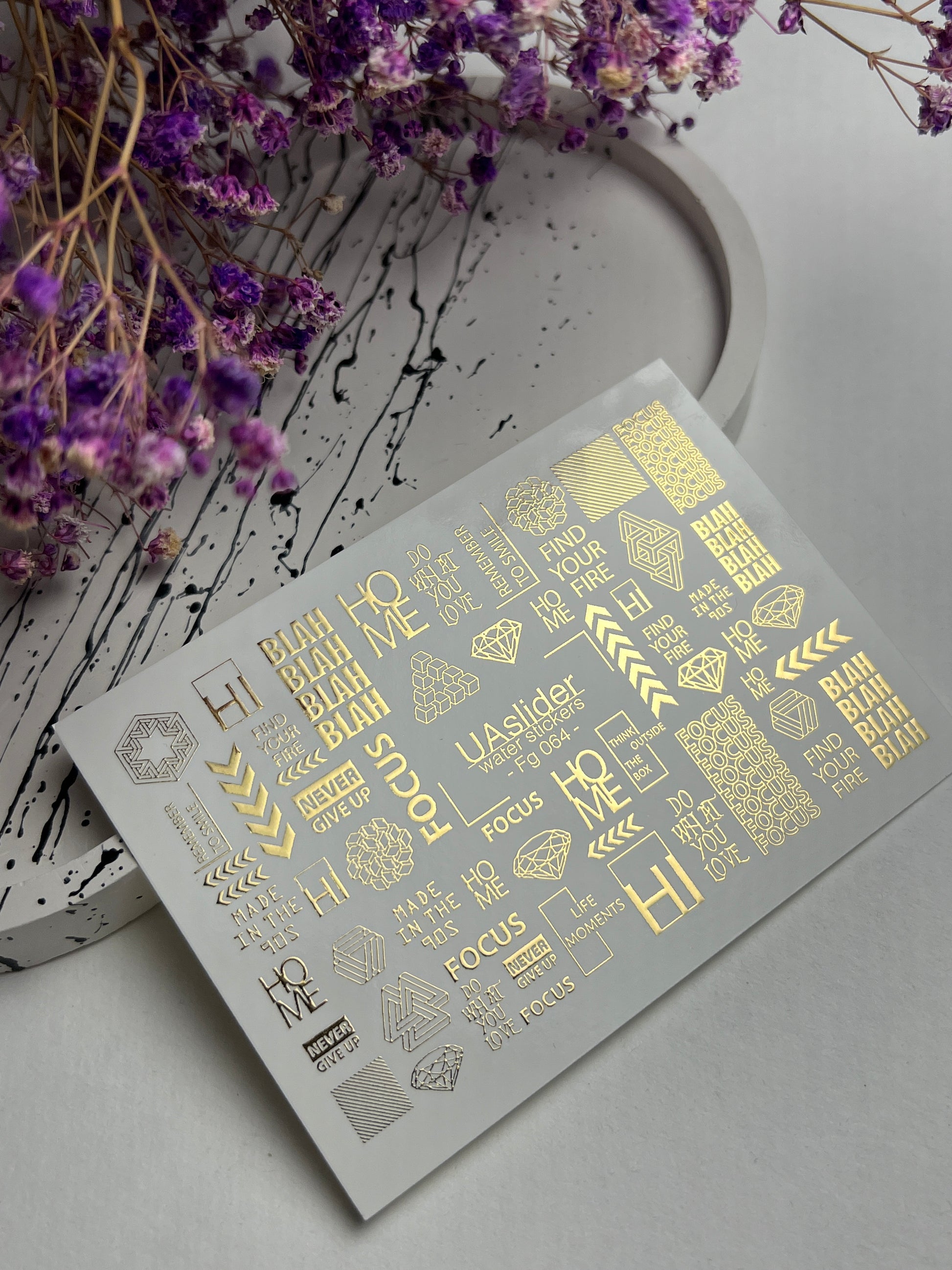 Nagel Wasserabziehbild Fg-064 | Goldfolie Wasser-Schiebefolie Nagelabziehbilder | Geometrische Formen & MotivationswörterFg_064
