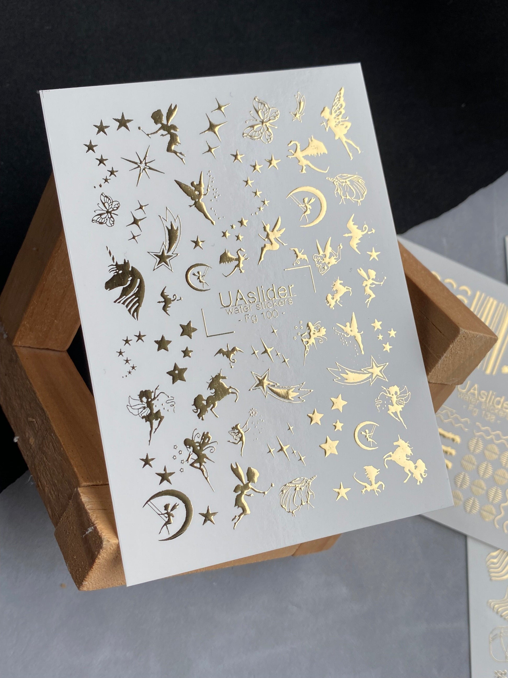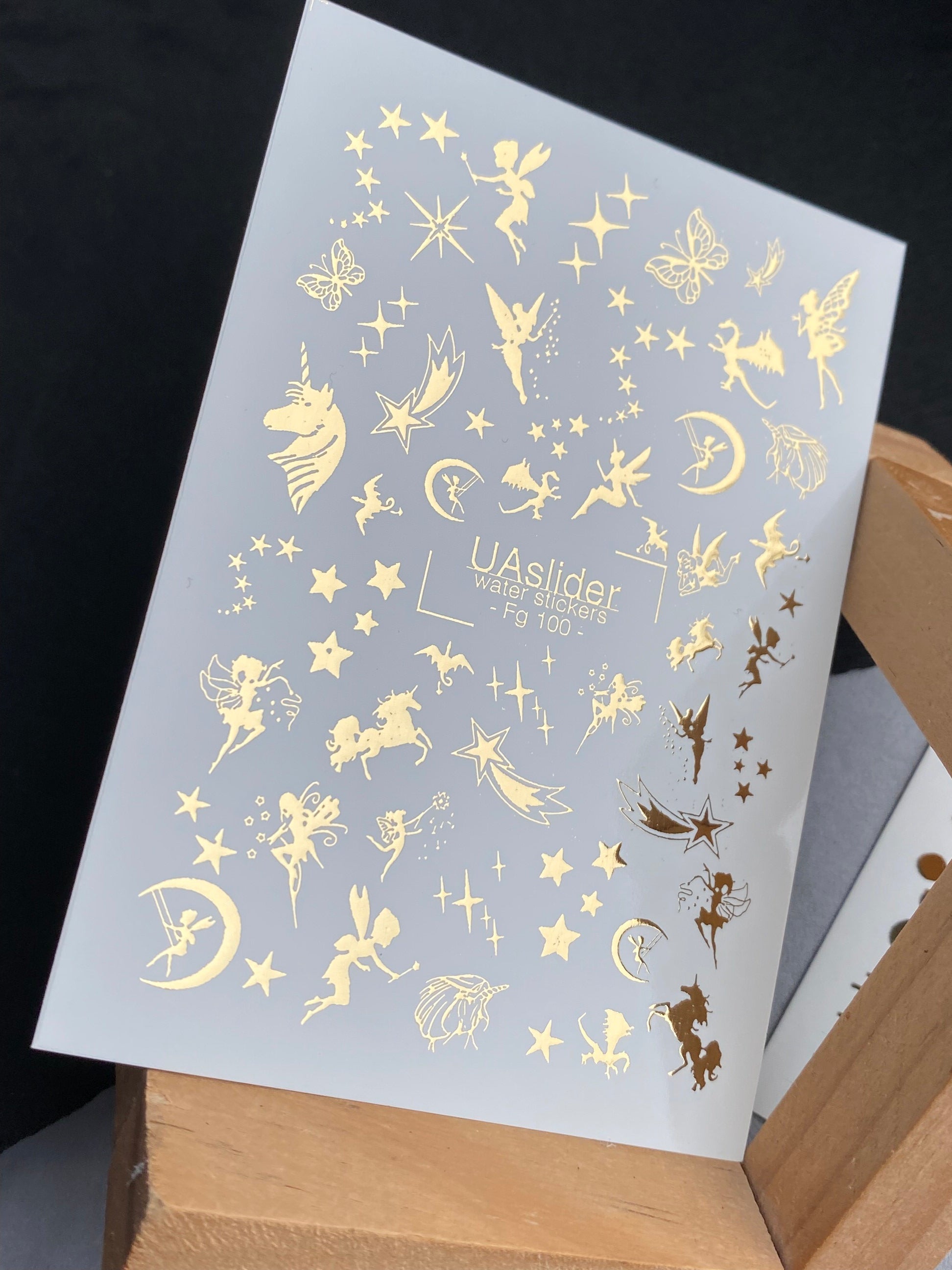Nagel Wasserabziehbild Fg-100 | Wasserfolien Nagelabziehbilder mit Goldenen Feen & Sternen | Magische FantasieFg_100