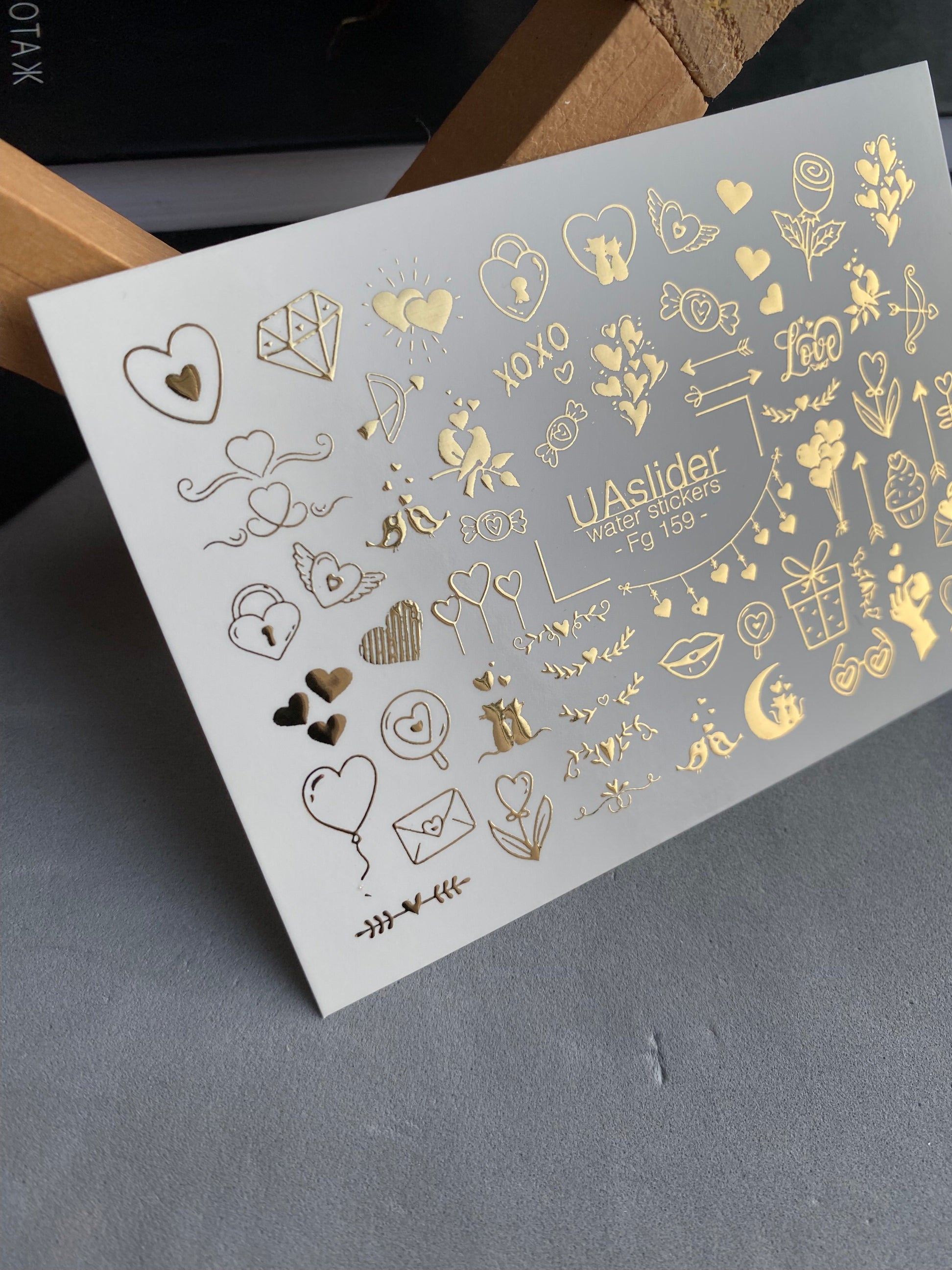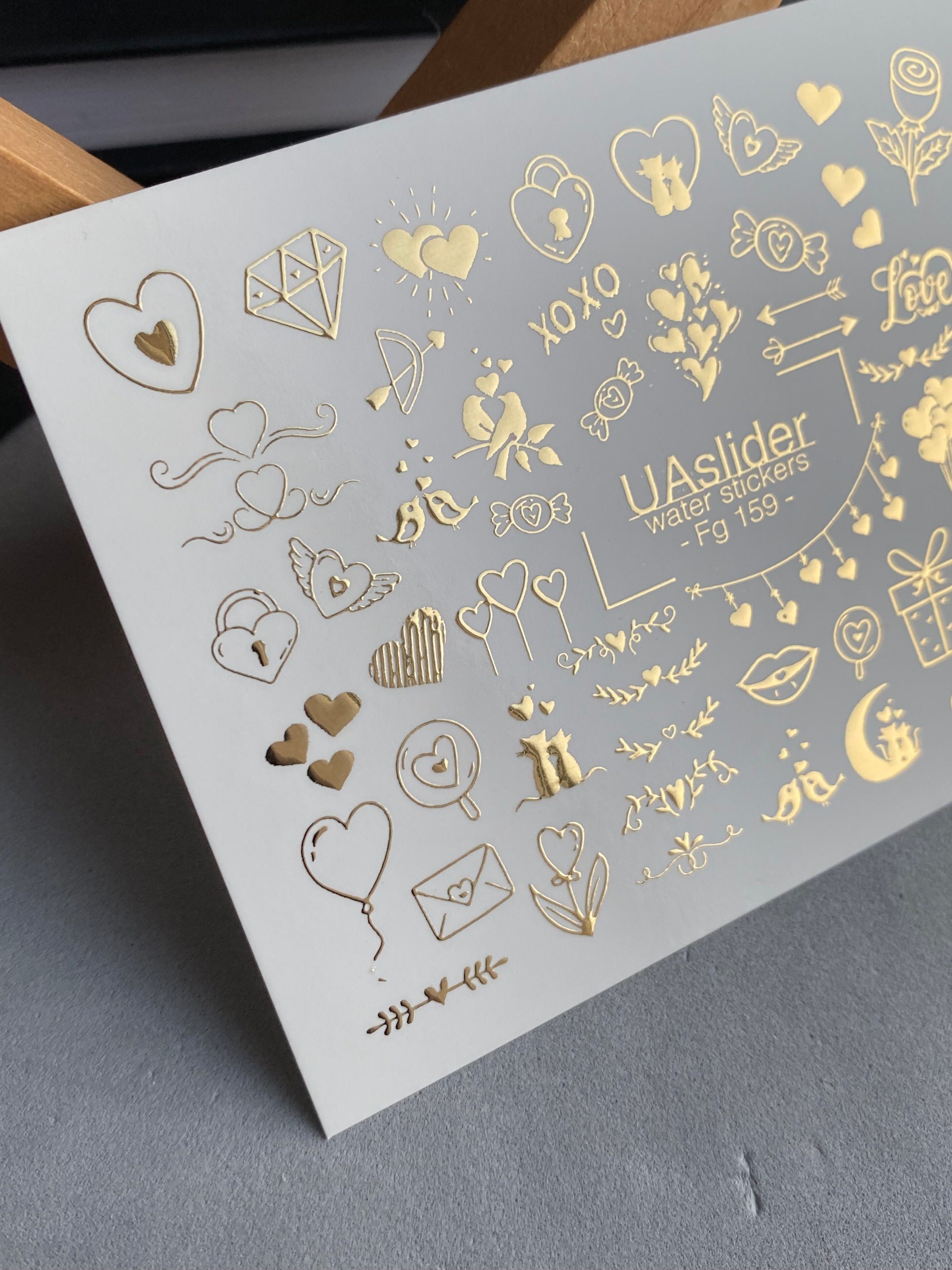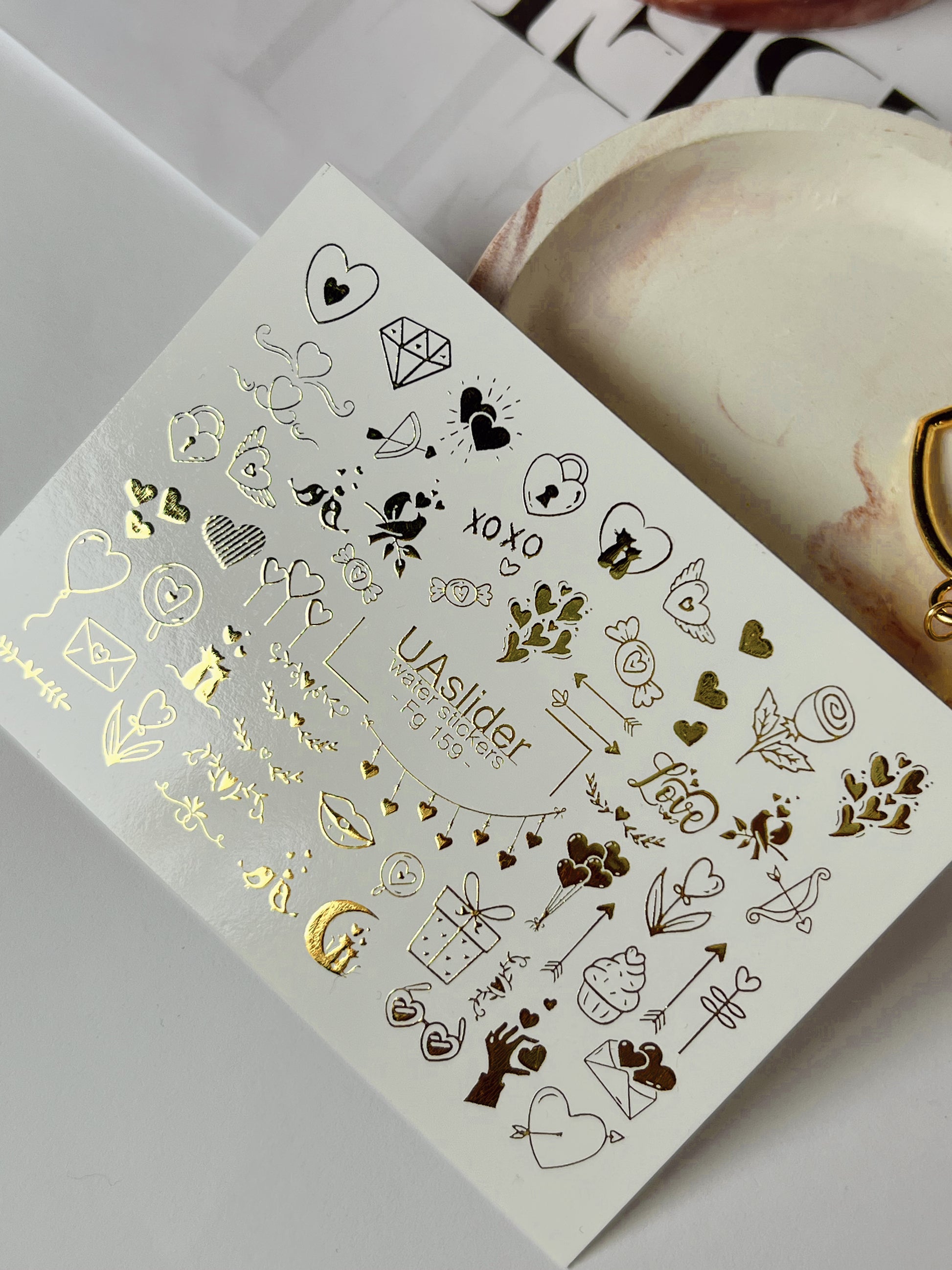 Nagel Wasserabziehbild Fg-159 | Goldfolie Wasserabzieh-Nagelbilder | Romantische Liebe & Niedliche AkzenteFg_159