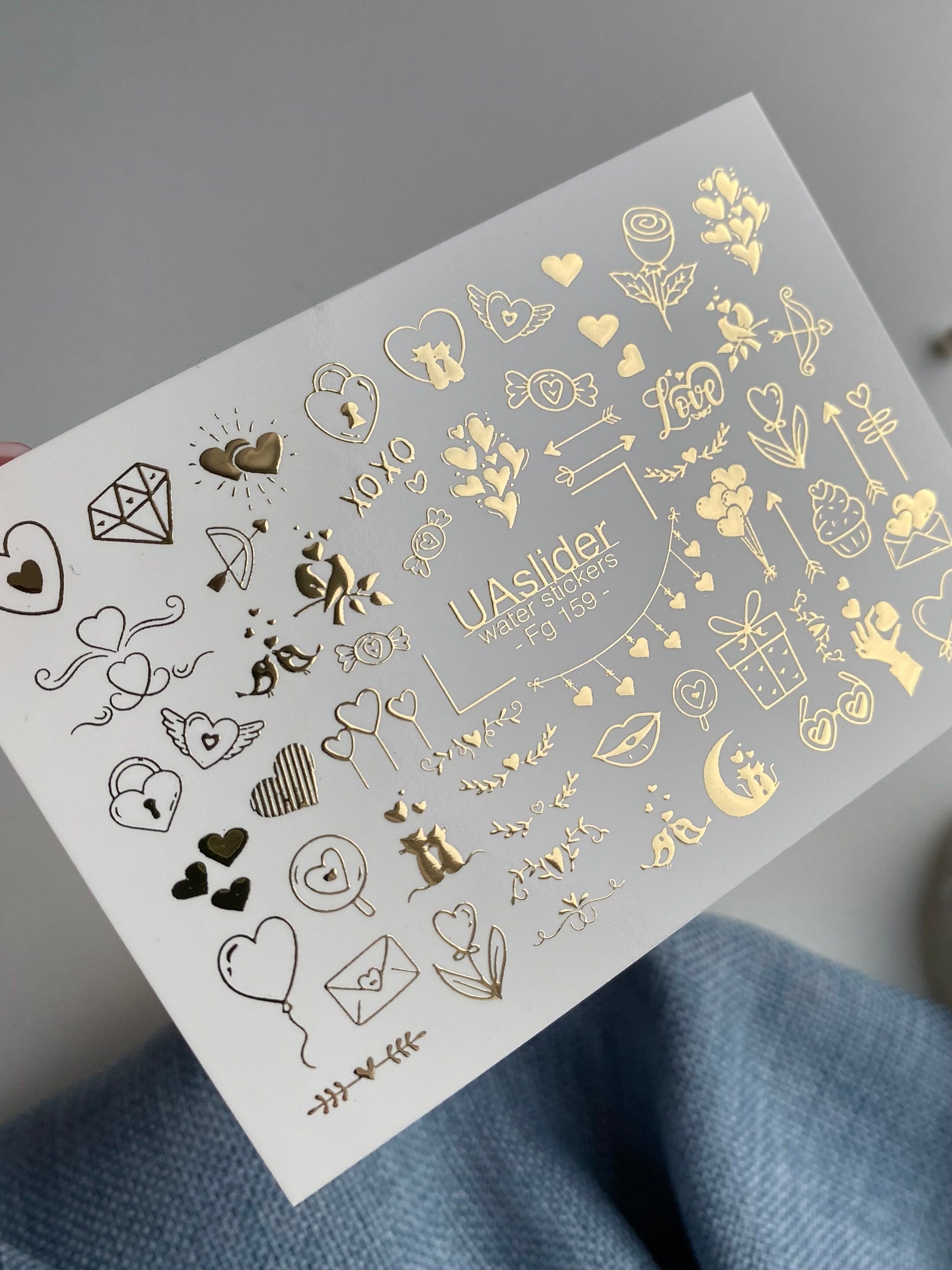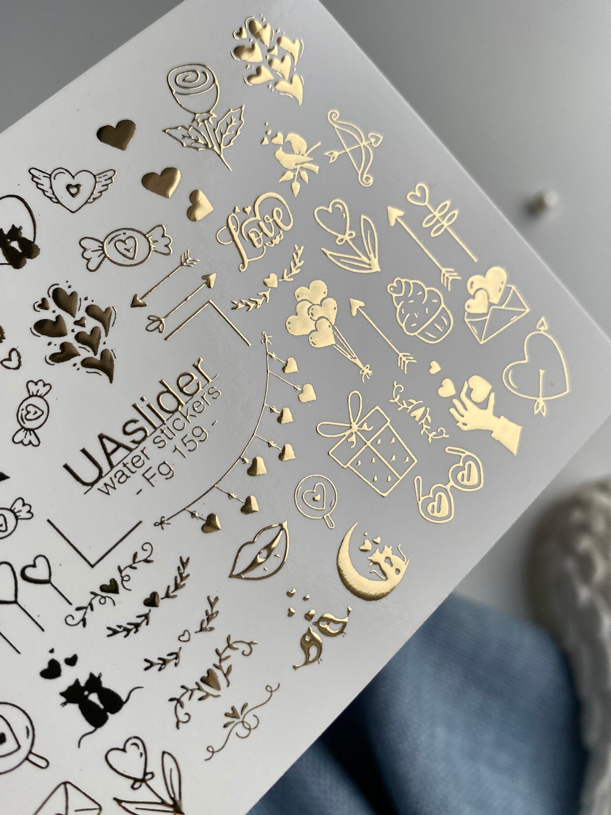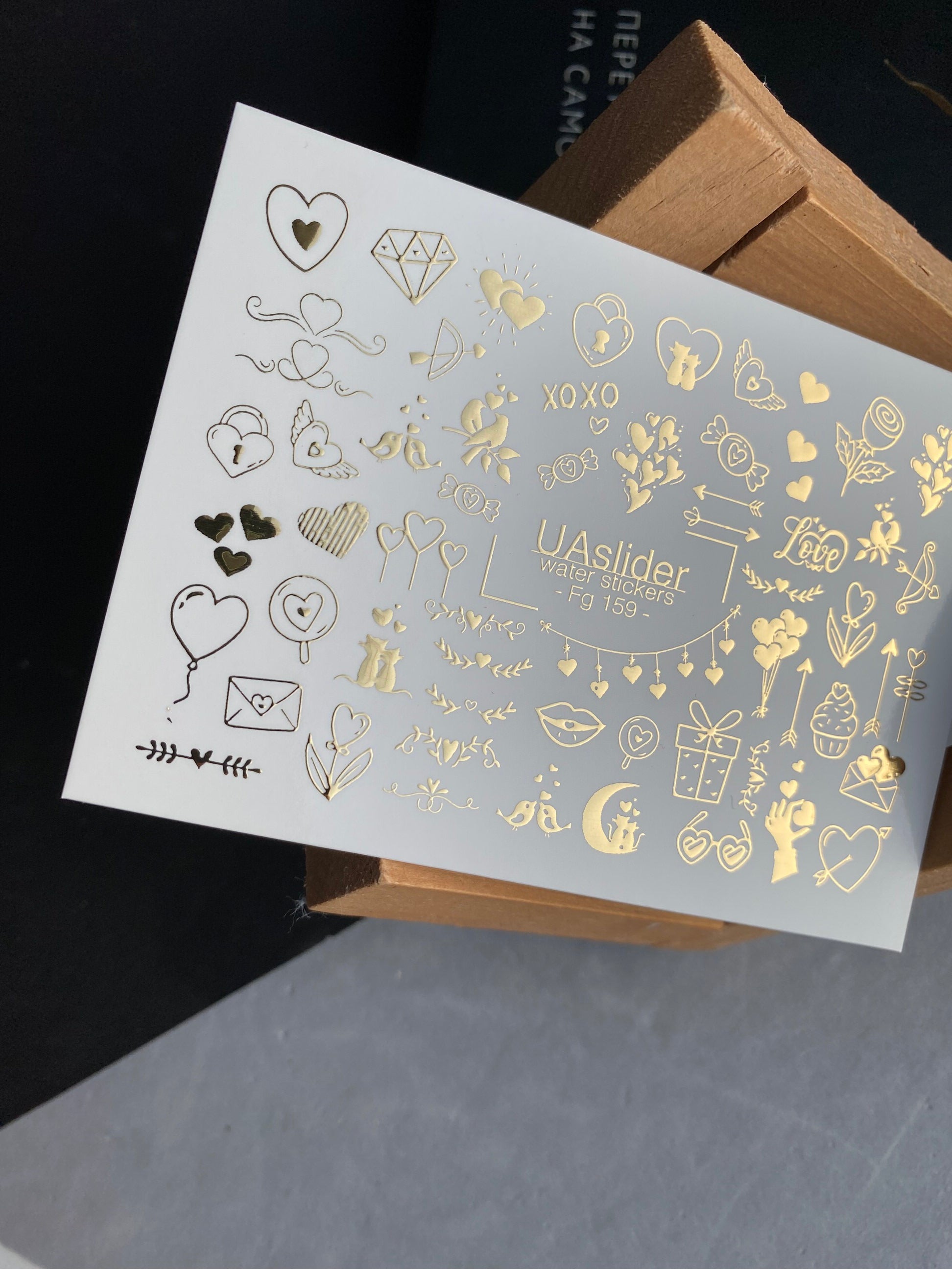 Nagel Wasserabziehbild Fg-159 | Goldfolie Wasserabzieh-Nagelbilder | Romantische Liebe & Niedliche AkzenteFg_159