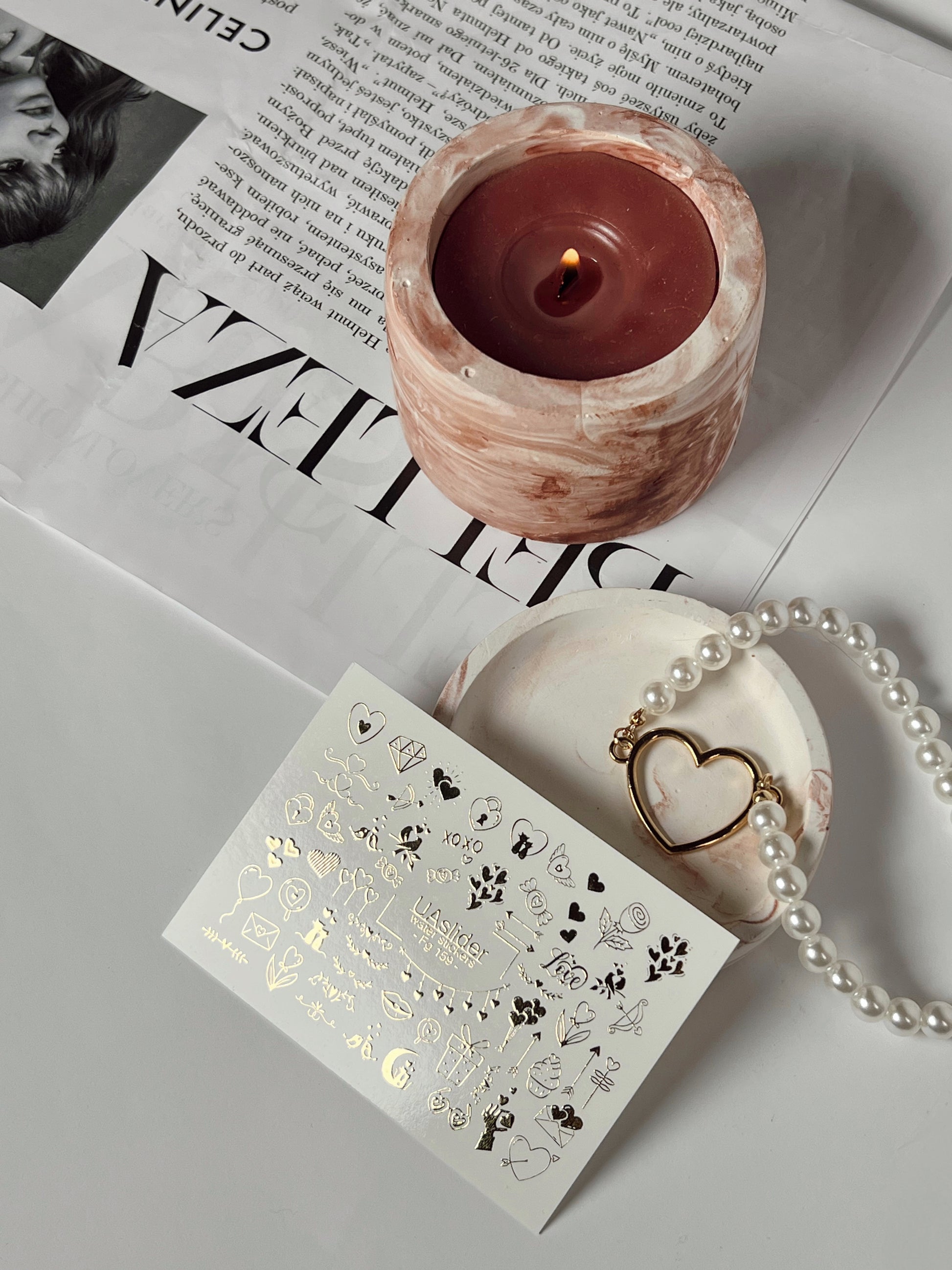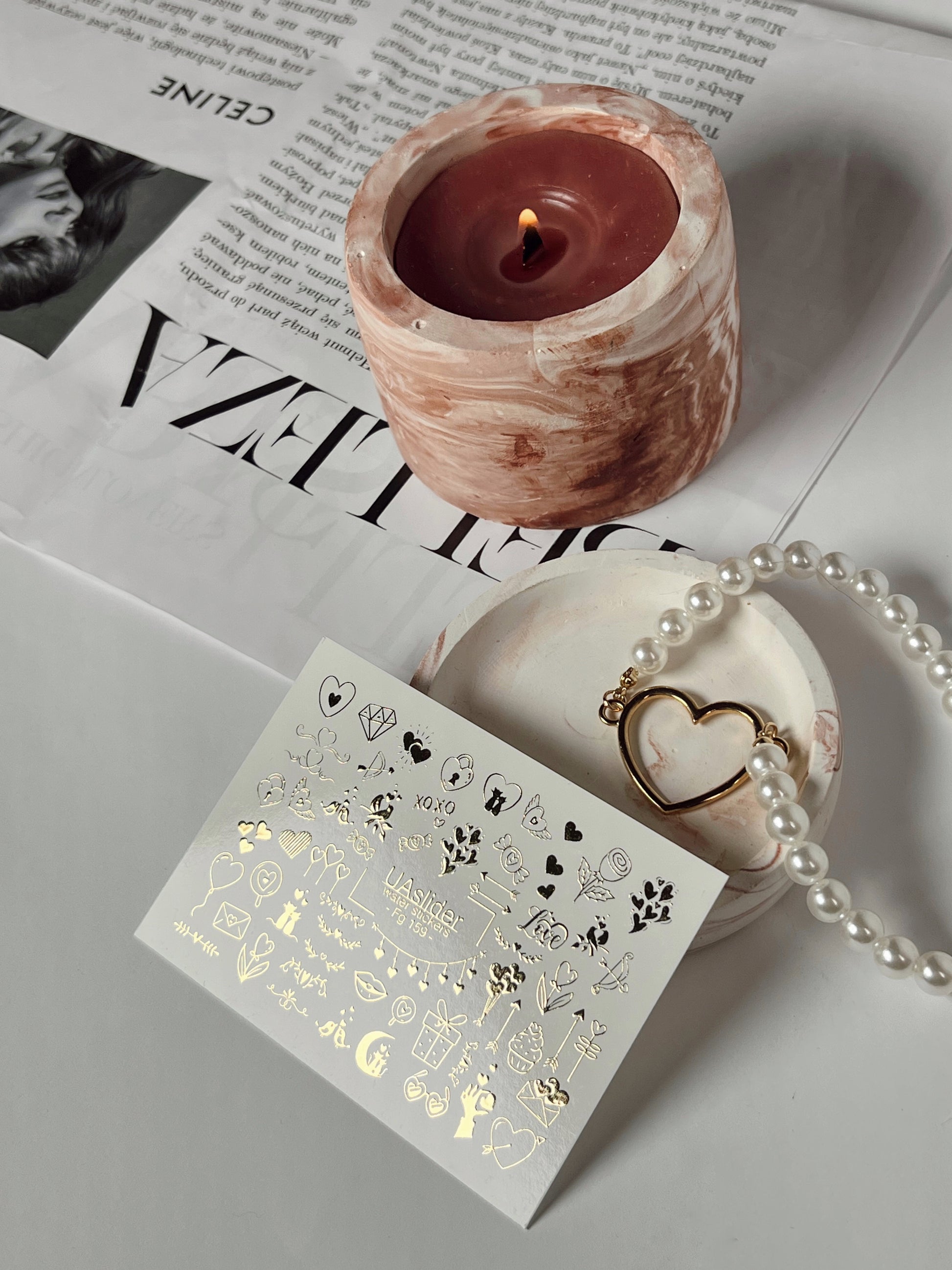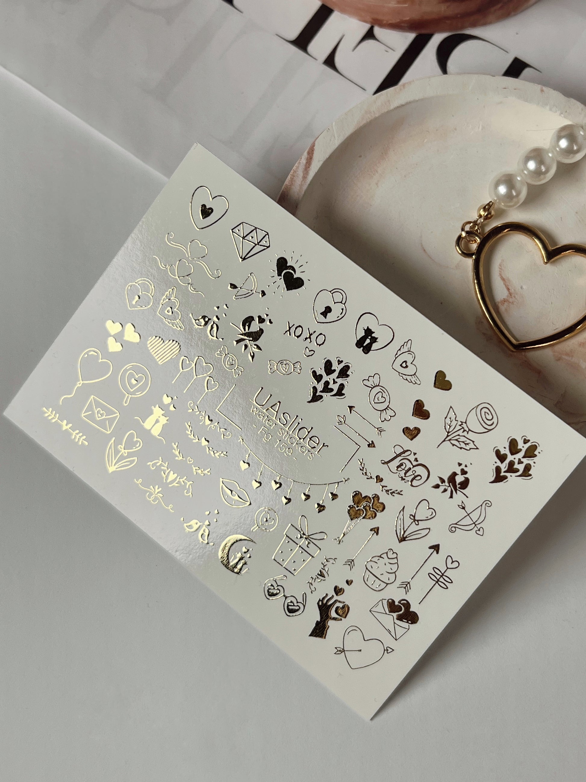 Nagel Wasserabziehbild Fg-159 | Goldfolie Wasserabzieh-Nagelbilder | Romantische Liebe & Niedliche Akzente