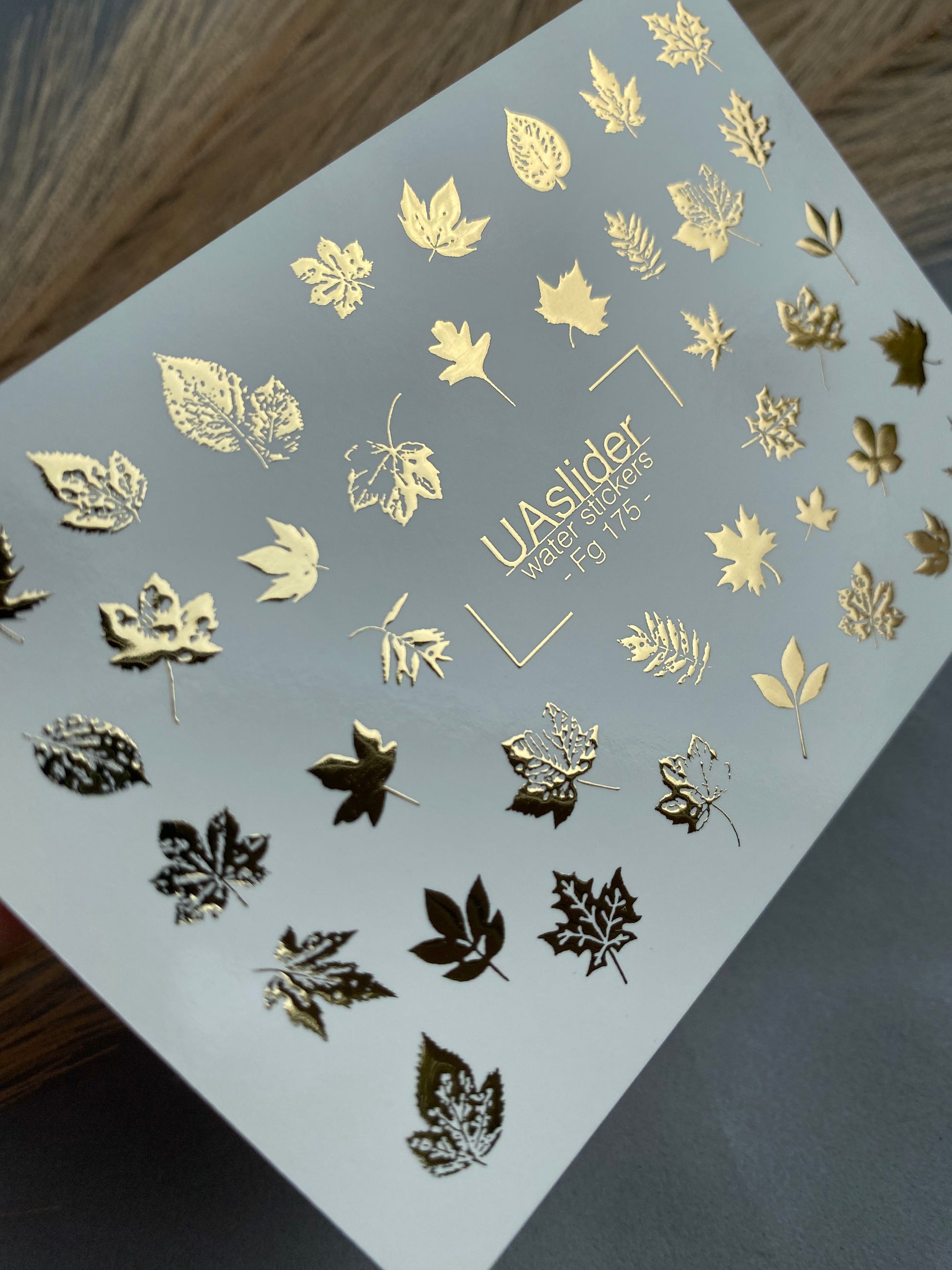 Nagel Wasserabziehbild Fg-175 | Goldfolie Wasserabzieh-Nagelbilder | Herbstblätter & Botanische Akzente