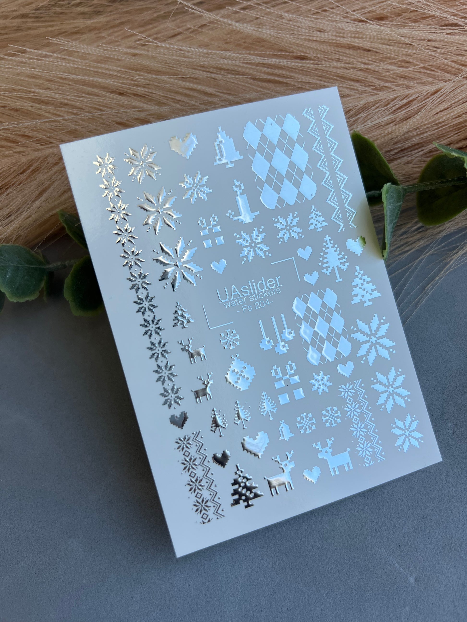 Nagel Wasserabziehbild Fs-204 | Wasserfolien Nagelabziehbilder Weihnachten Nordisch | Schneeflocken, Rentiere und OrnamenteFs_204