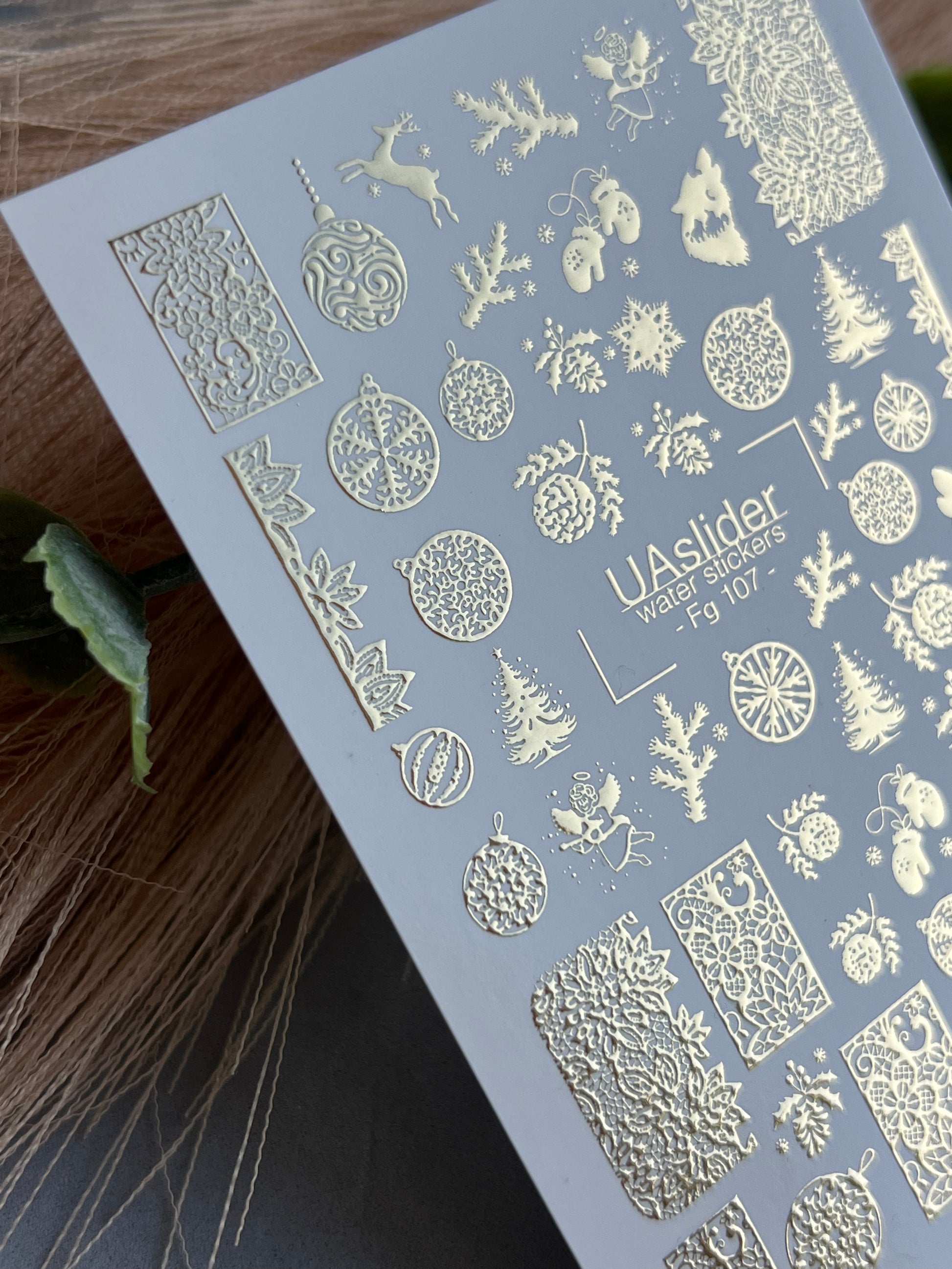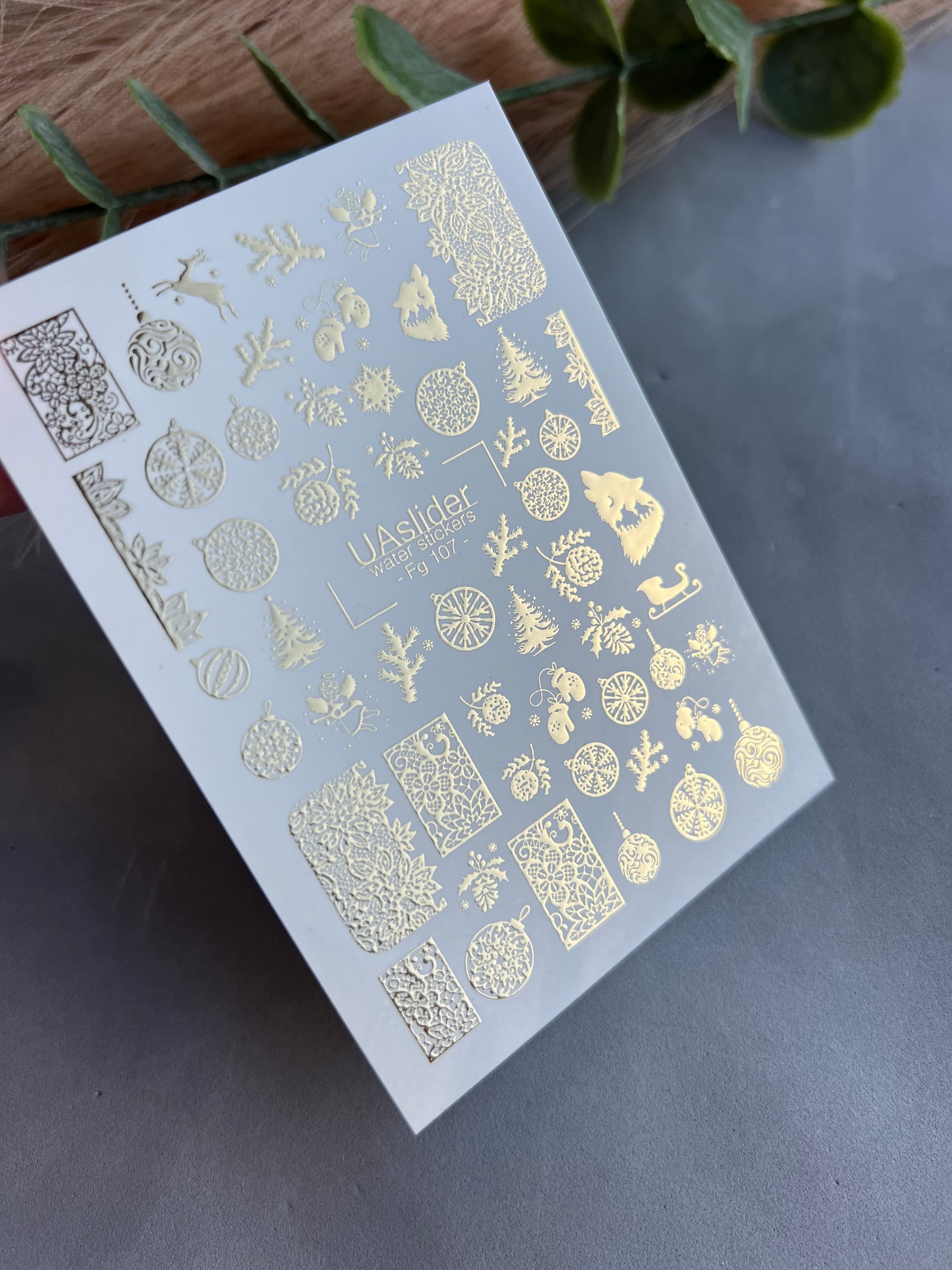 Αυτοκόλλητο Νυχιών με Νερό Fg-107 | Αυτοκόλλητα Νυχιών με Νερό και Χρυσά Χριστουγεννιάτικα Στολίδια | Εορταστική ΔιακοπήFg_107