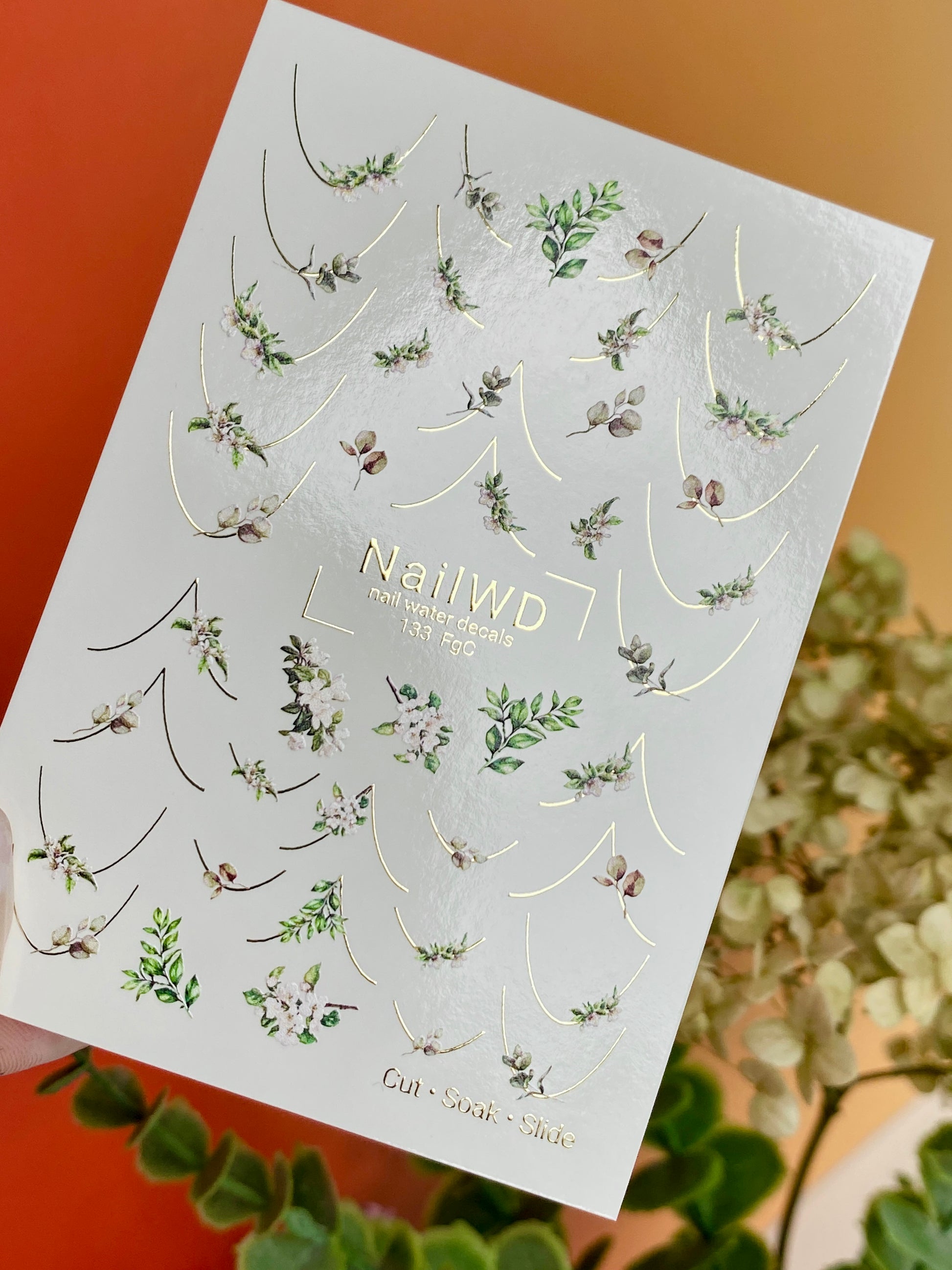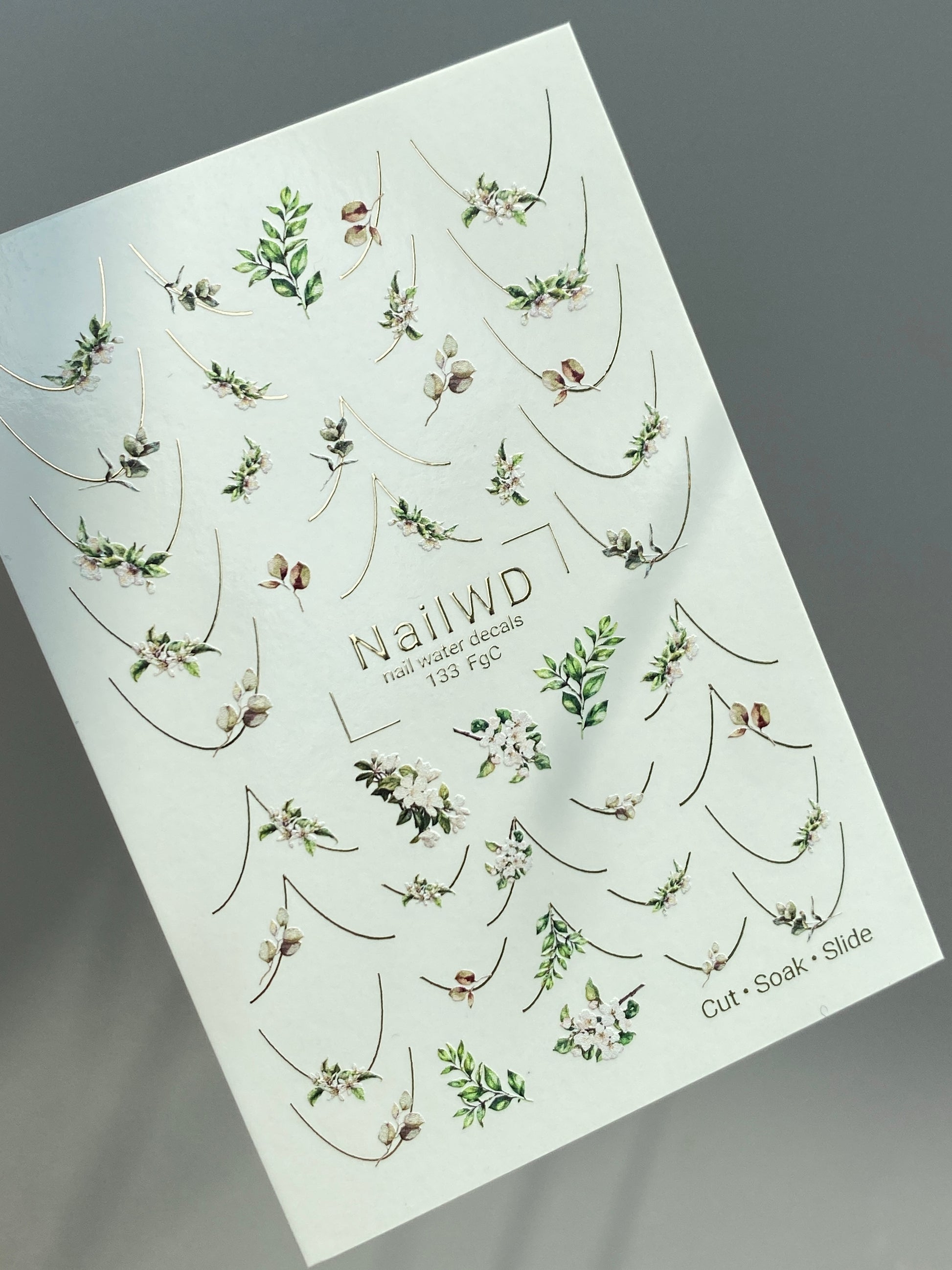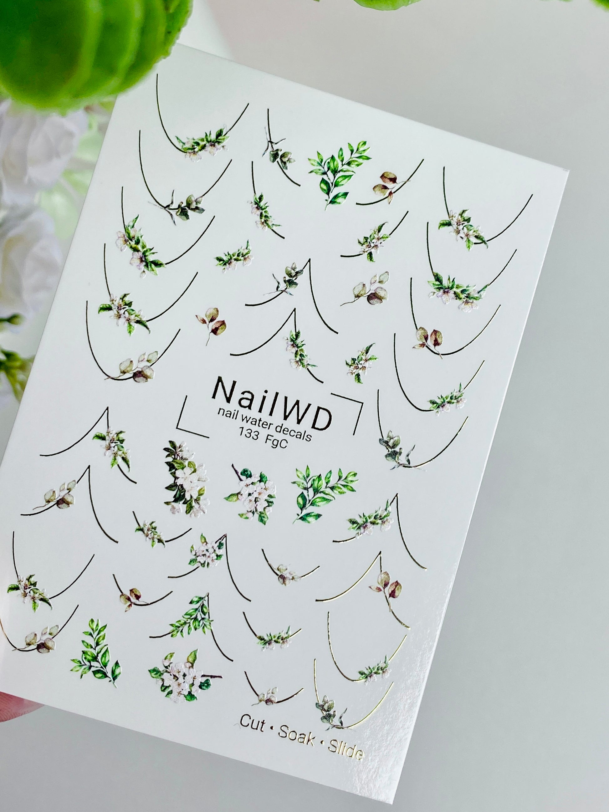 Küünte veekleebis 133 NailWD | Veeliuguri küünte kleebised rohelus prantsuse | Botaaniline minimalistlik disain0133_FgC
