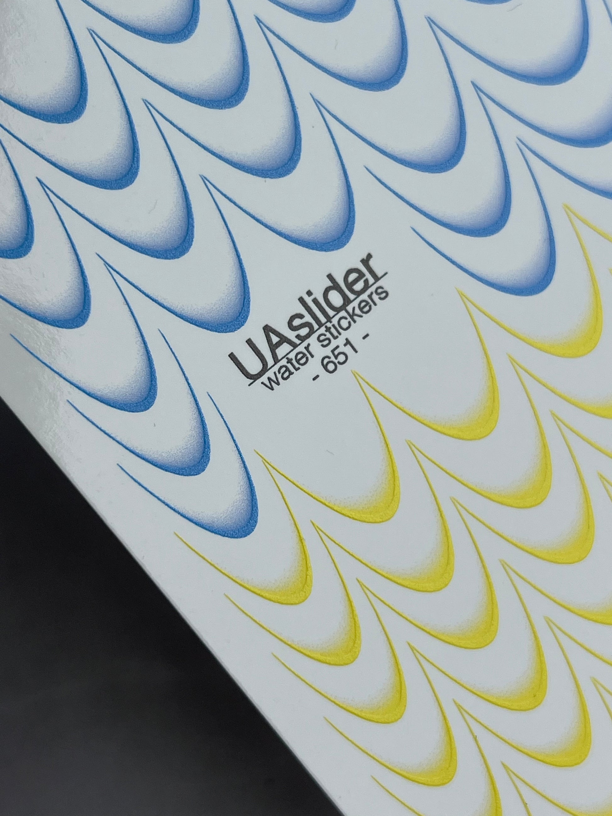 Veeliuguri küünte kleebised valge taustaga toimivad suurepäraselt iga geellaki tooni peal, tagades erksad ja teravad mustrid.