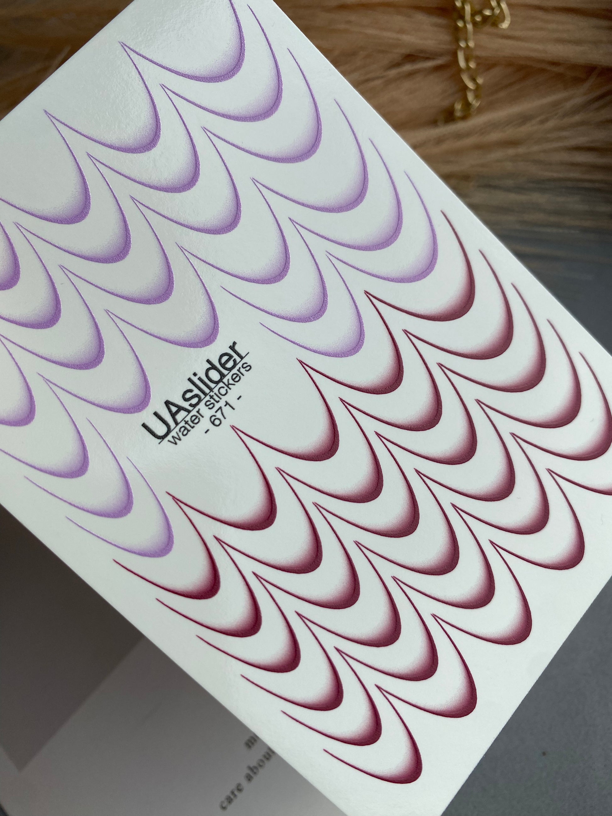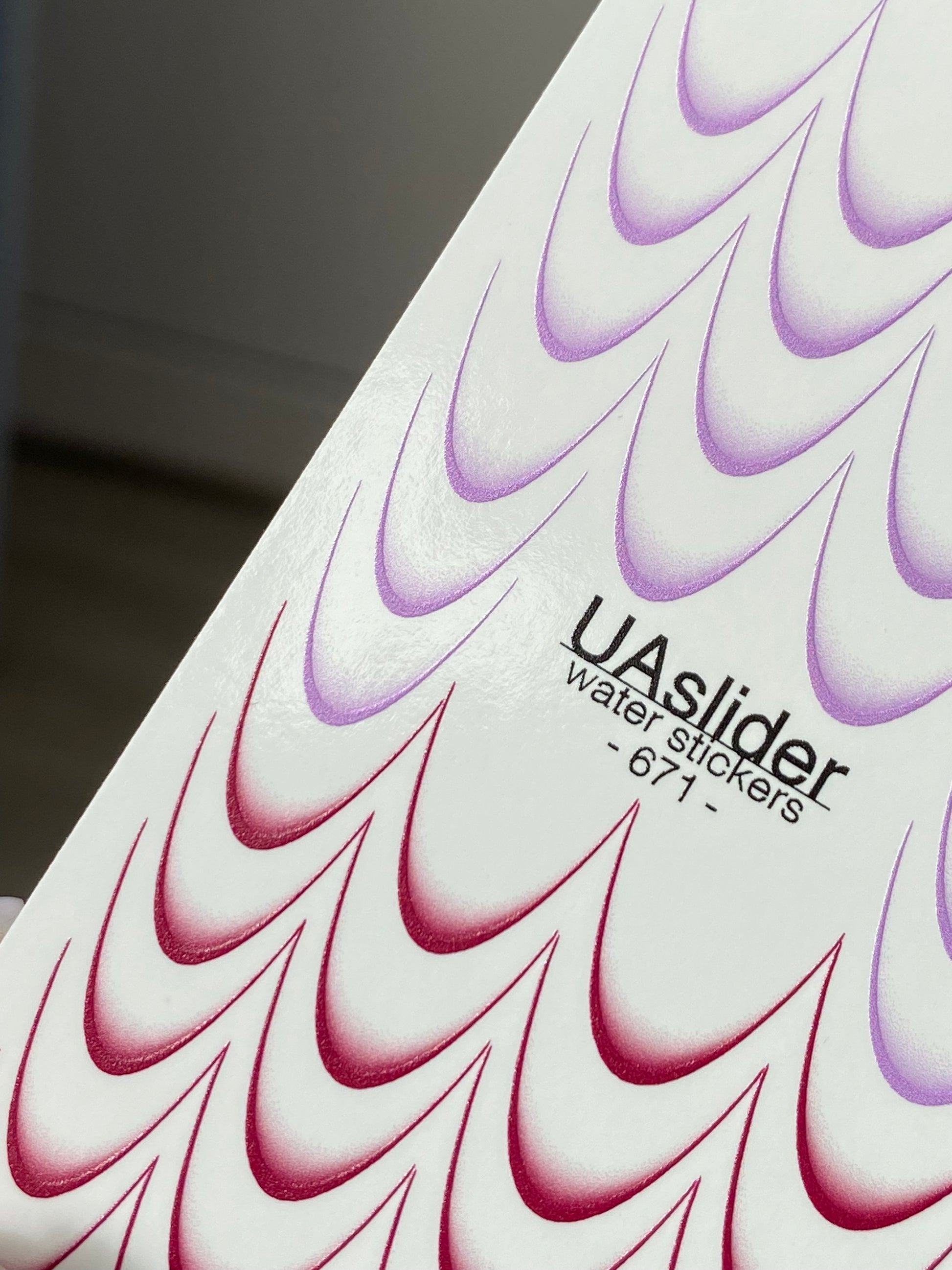 Veeliuguri küünte kleebised valge taustaga toimivad suurepäraselt iga geellaki tooni peal, tagades erksad ja teravad mustrid.