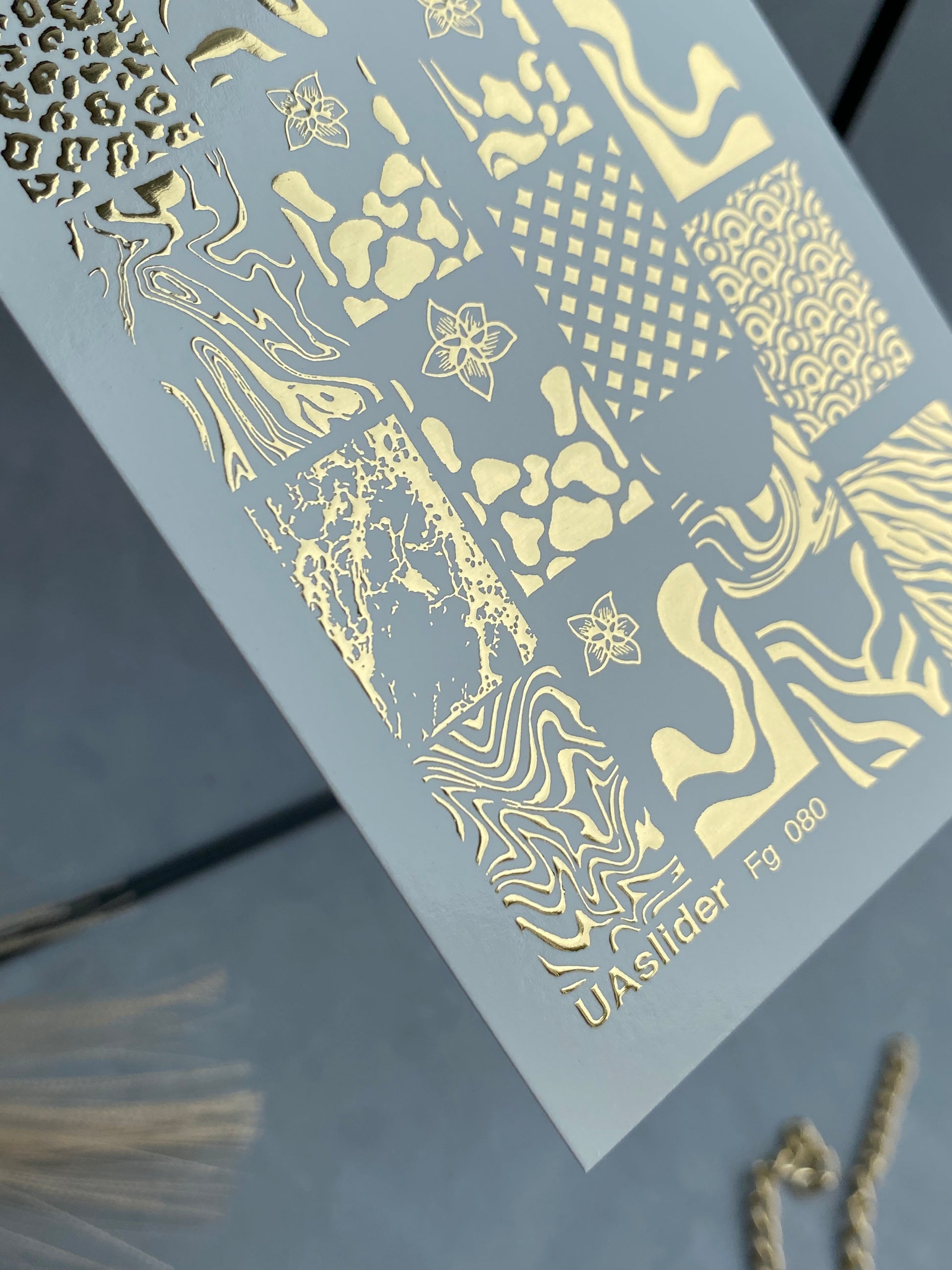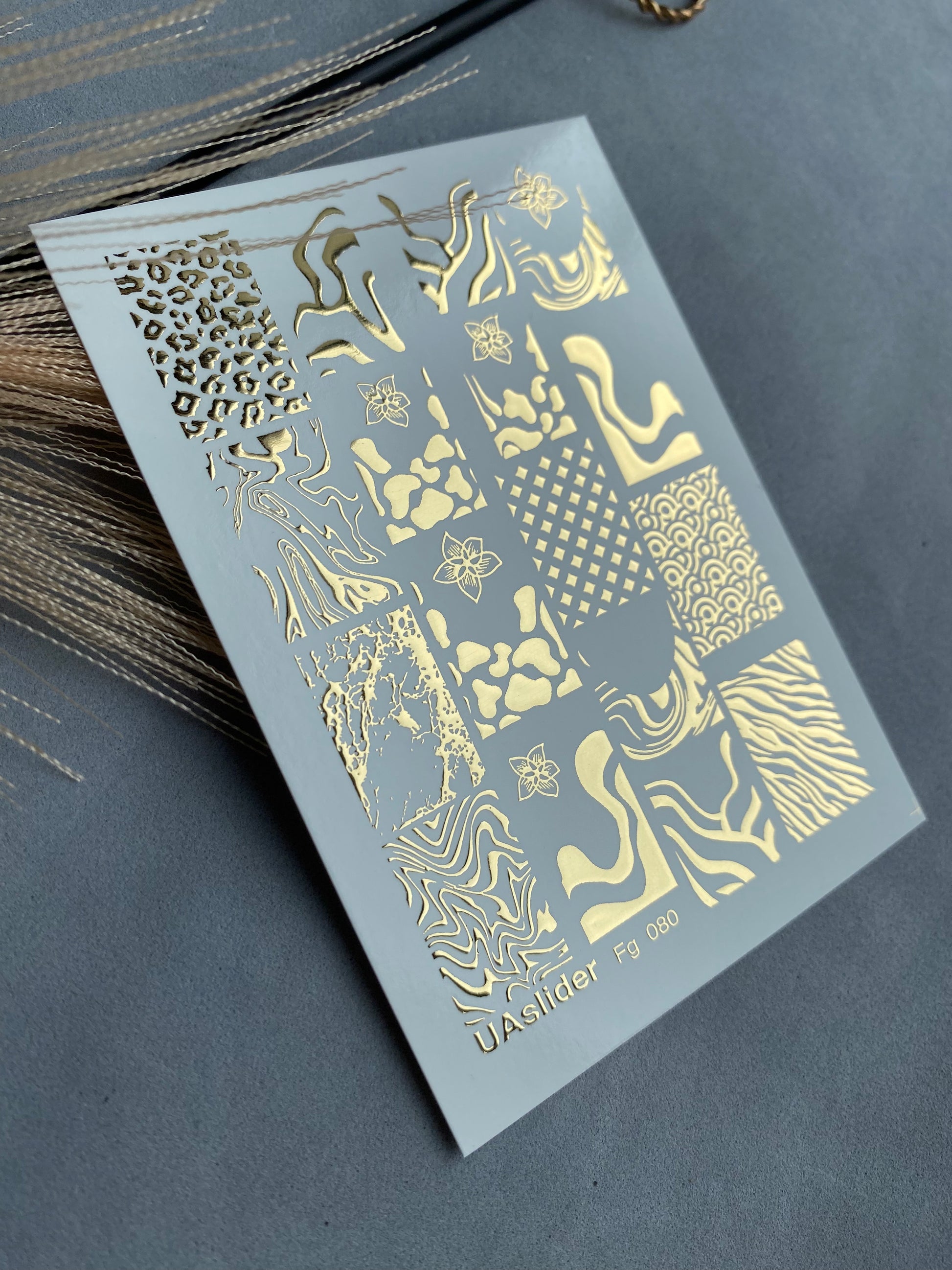Küünte veekleebis Fg-080 | Kuldse fooliumiga vees libisevad küünte kleebised | Loomamustrid ja abstraktsed mustridFg_080