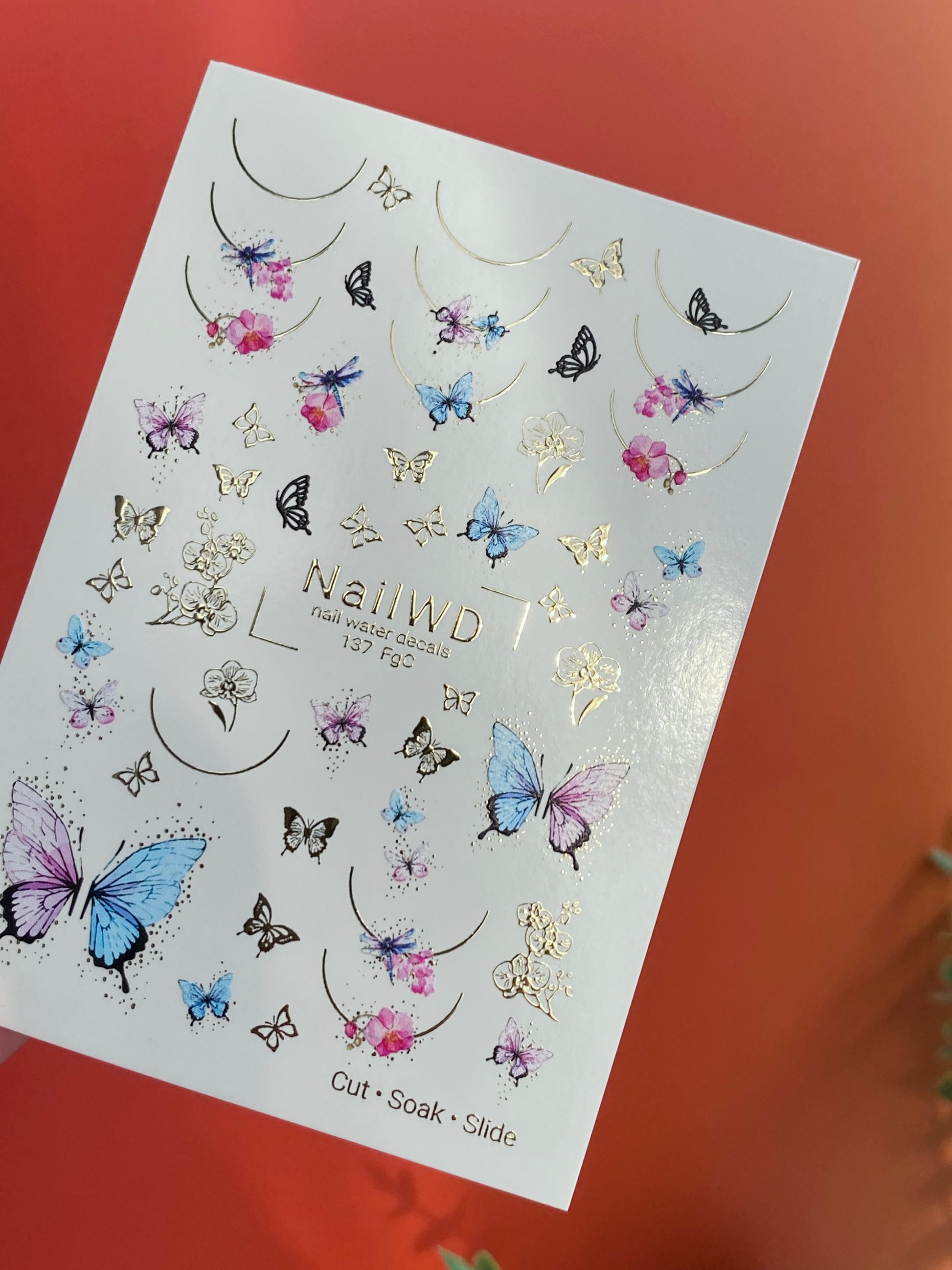 Décalcomanie d'eau pour ongles 137 NailWD | Décalcomanies à glissière d'eau pour ongles Papillons & Orchidées | Design floral français pastel