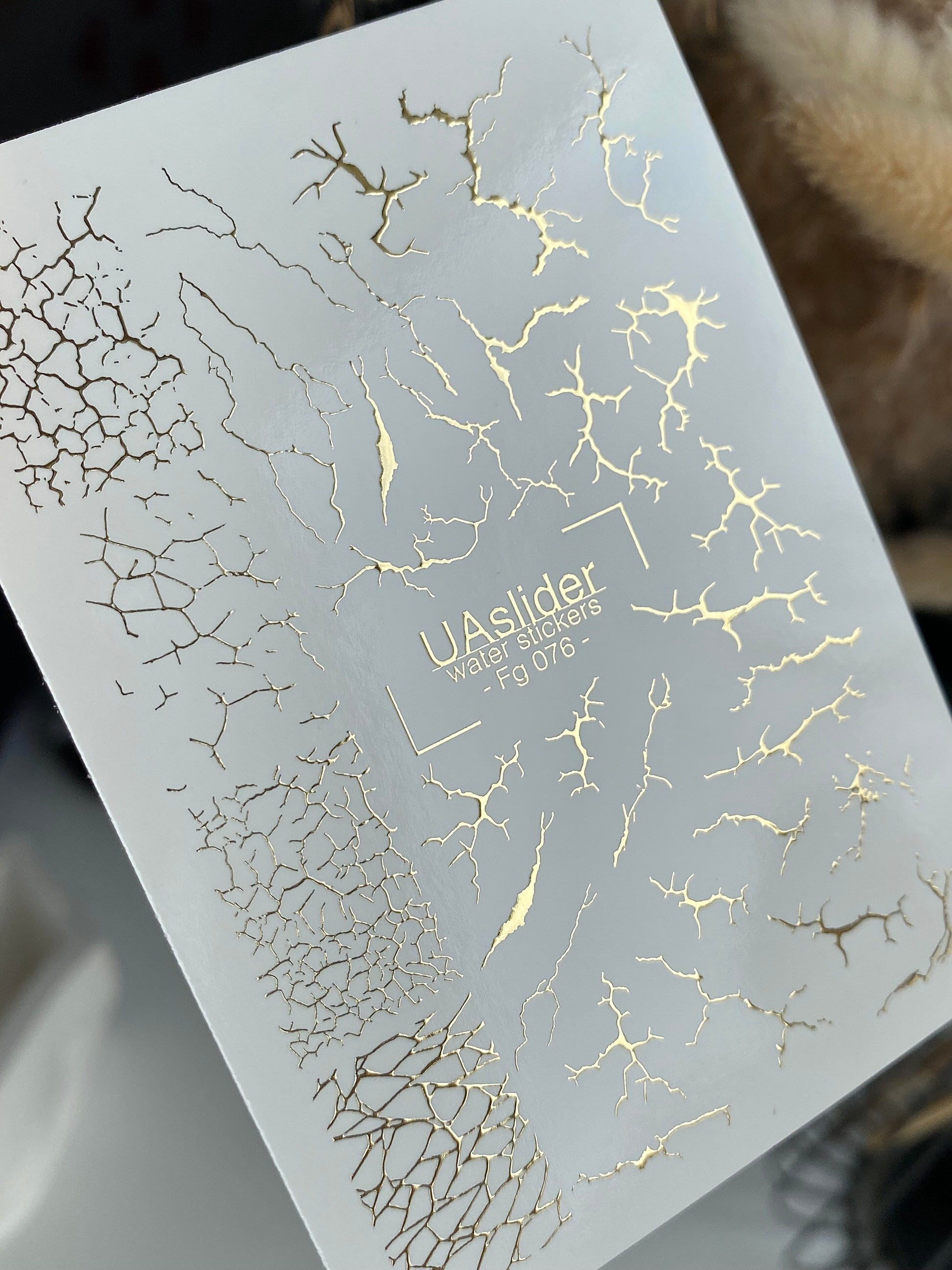 Décalcomanie d'ongle à l'eau Fg-076 | Décalcomanies d'ongle à glissement d'eau en feuille d'or | Effet craquelé et éclairFg_076