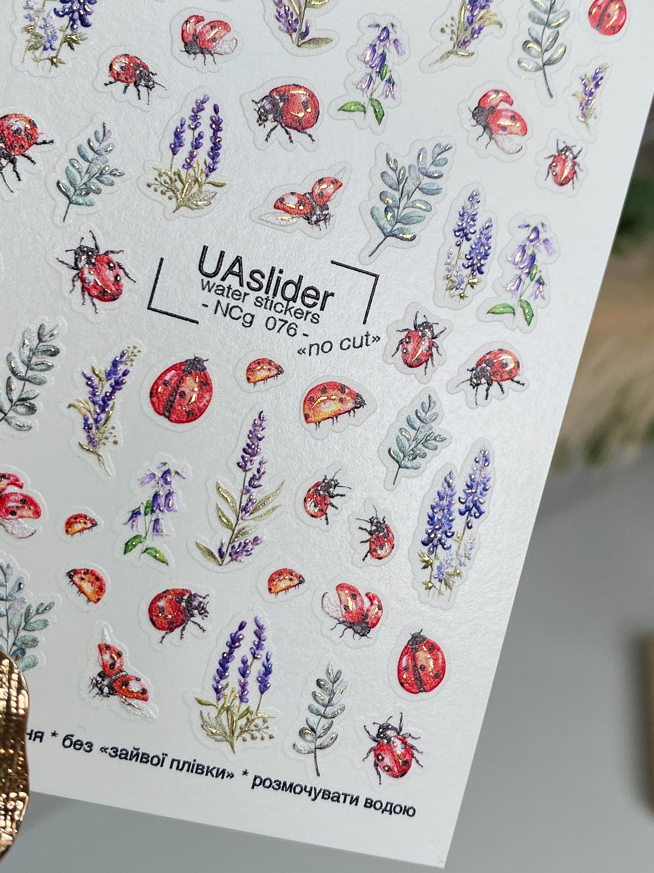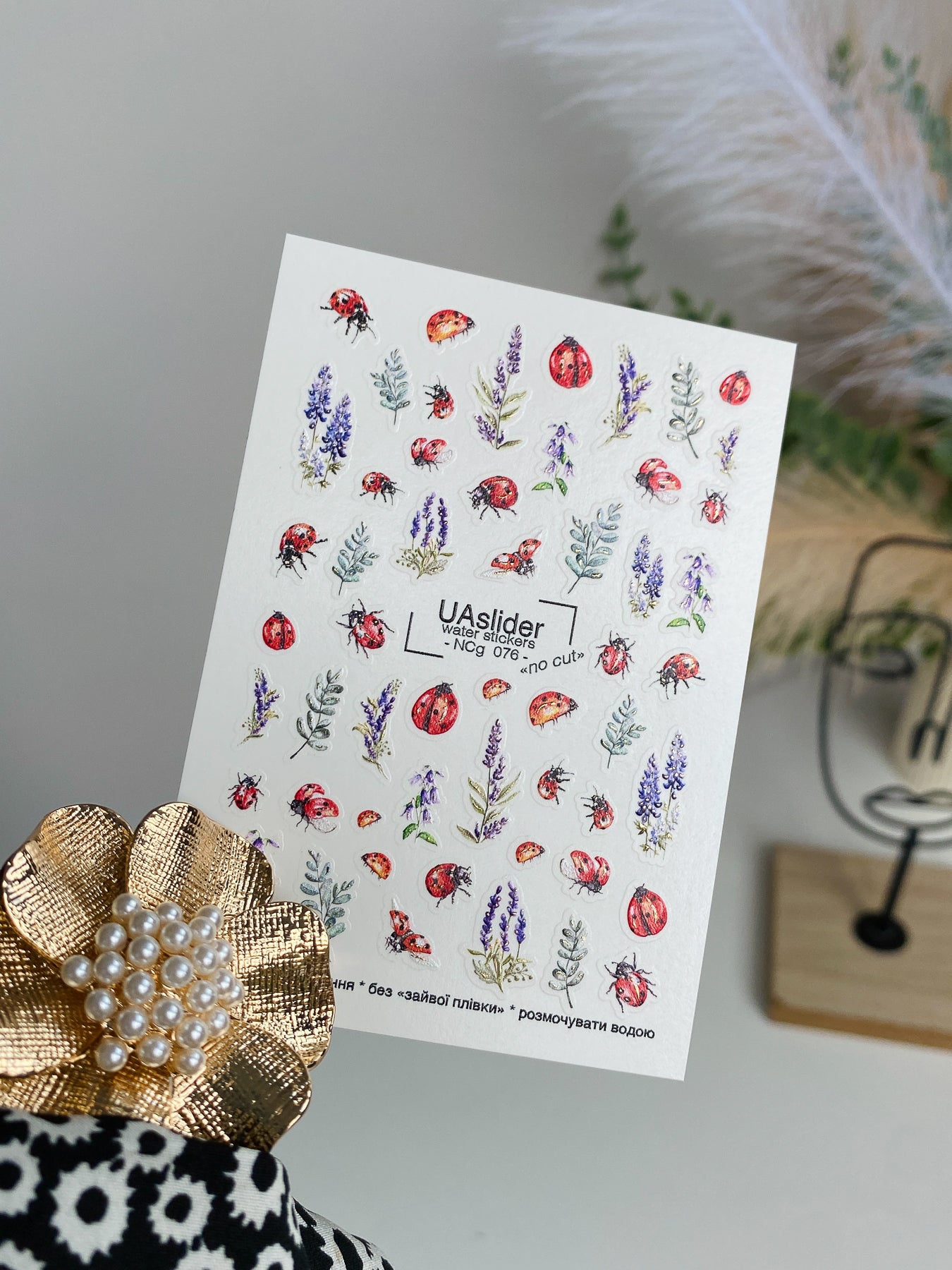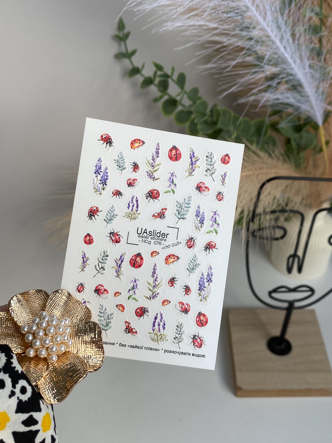 מדבקת מים לציפורניים NCg-076 | מדבקות מים לציפורניים עם חיפושיות פרת משה רבנו ולבנדר | אמנות ציפורניים בהשראת הטבעNCg_076