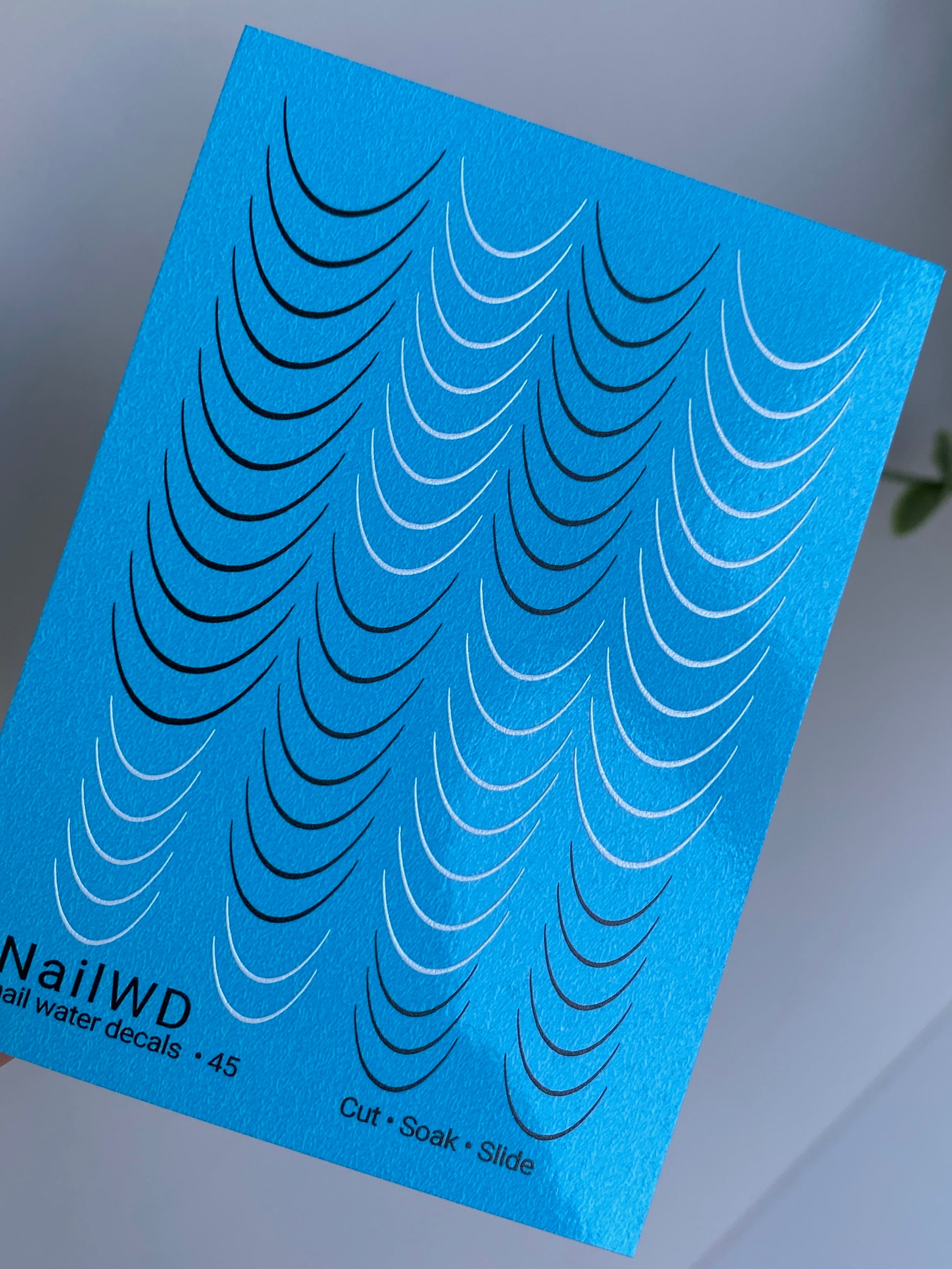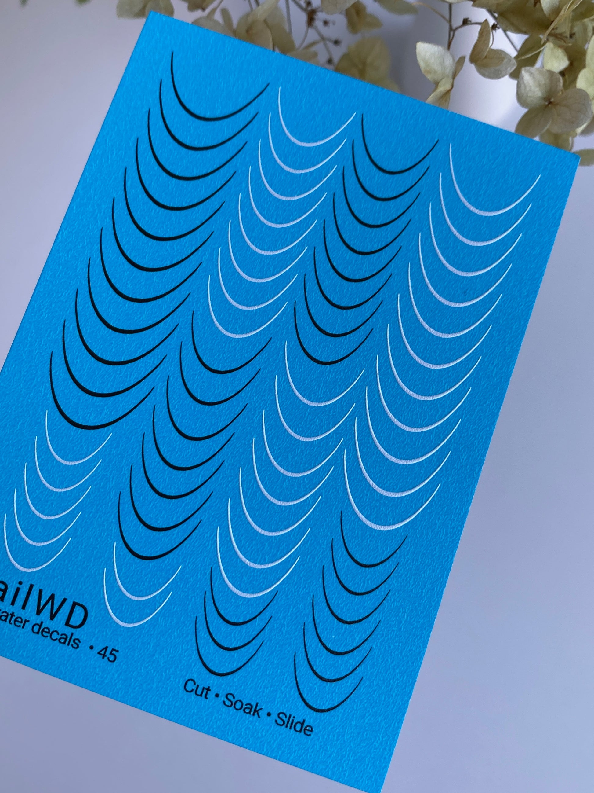 Köröm víz matrica 45 NailWD | Francia vízcsúsztatós köröm matricák | Fekete és fehér ívelt vonalak