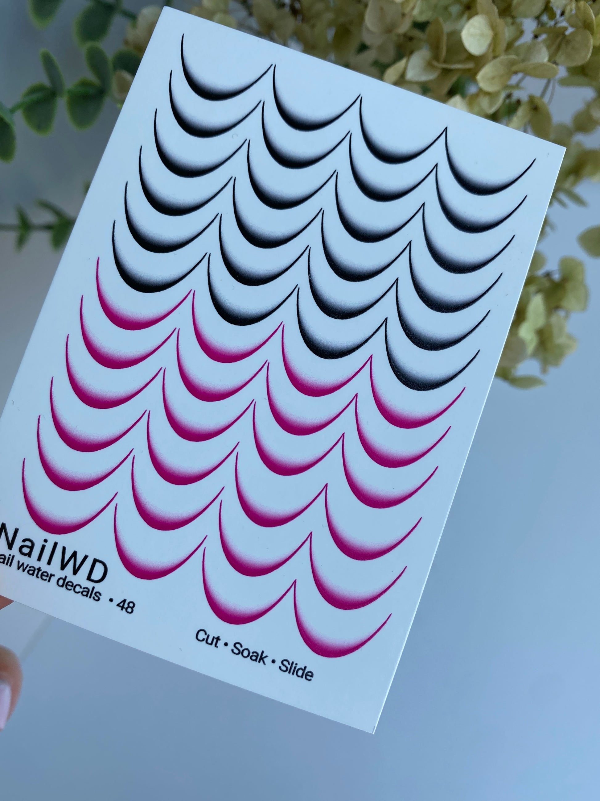 Köröm víz matrica 48 NailWD | Francia vízcsúsztatós köröm matricák | Fekete és rózsaszín ombre körömvégek
