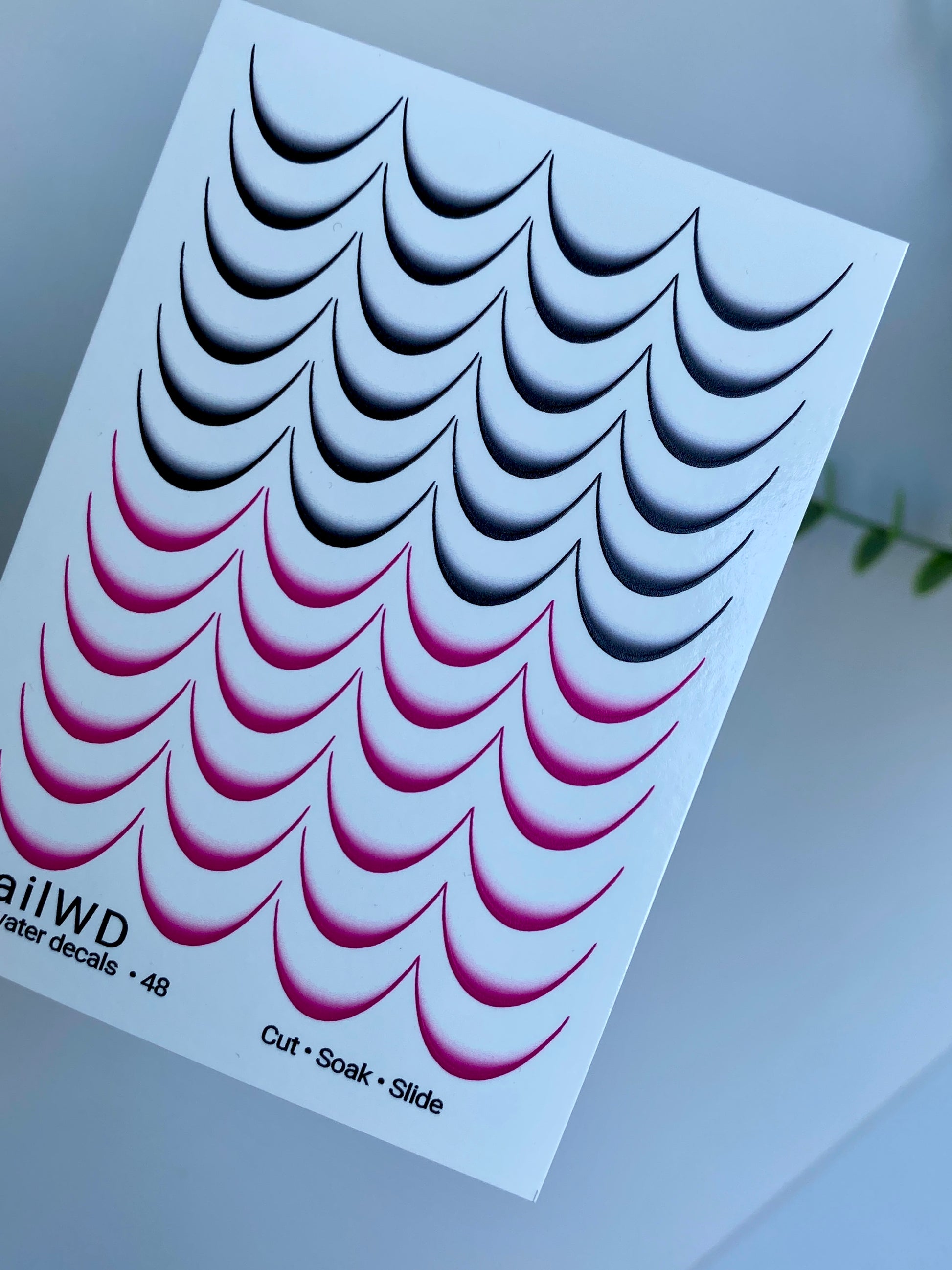 Köröm víz matrica 48 NailWD | Francia vízcsúsztatós köröm matricák | Fekete és rózsaszín ombre körömvégek0048_color