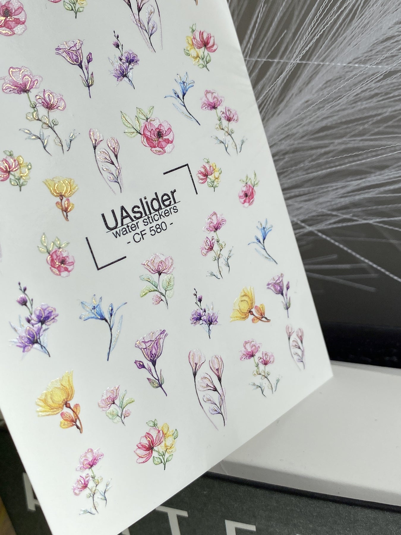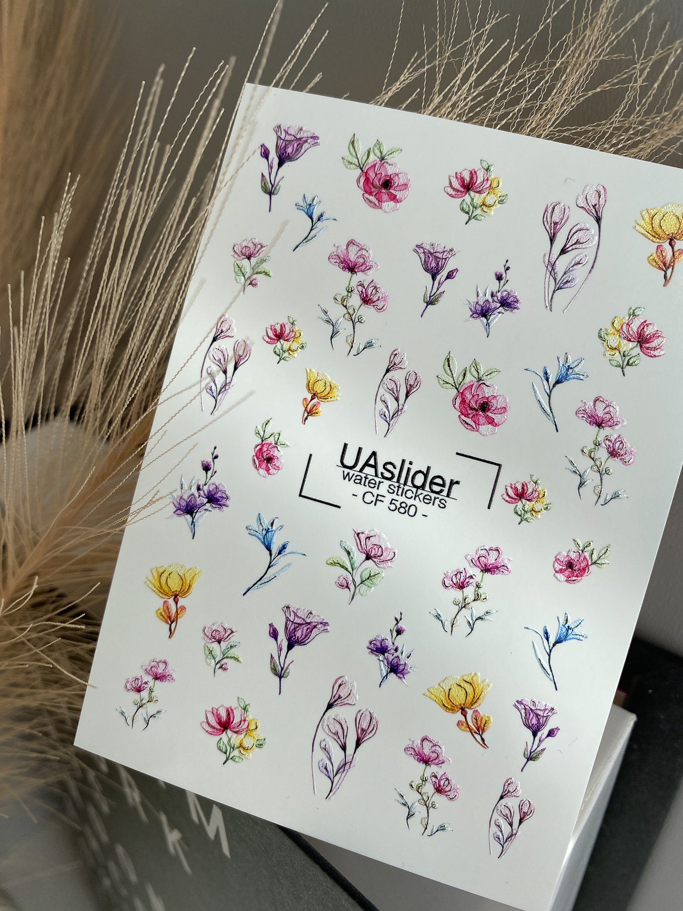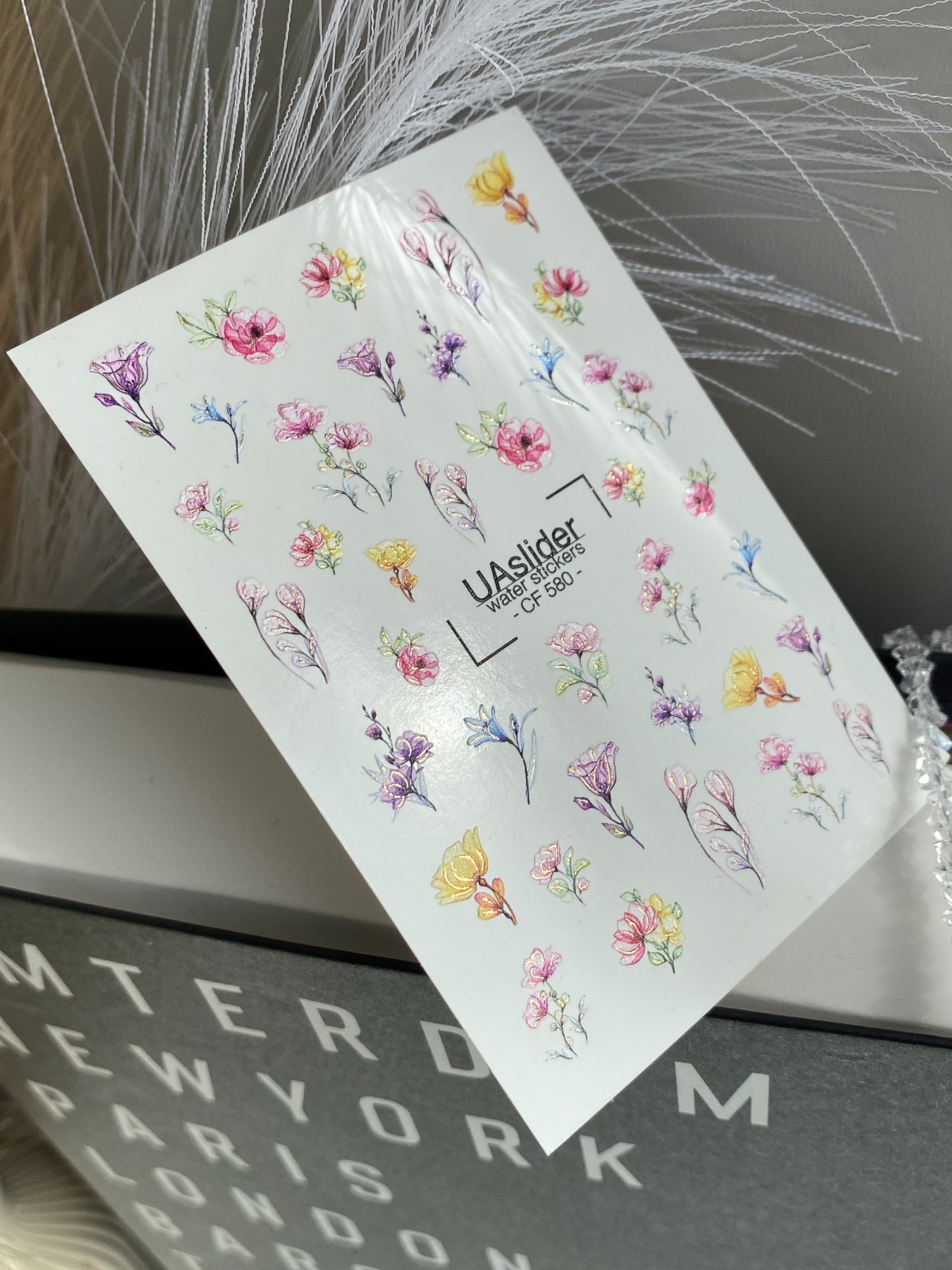 Köröm víz matrica CF-580 | Vízsikló köröm matricák színes vadvirágokkal | Virágos köröm művészeti minták