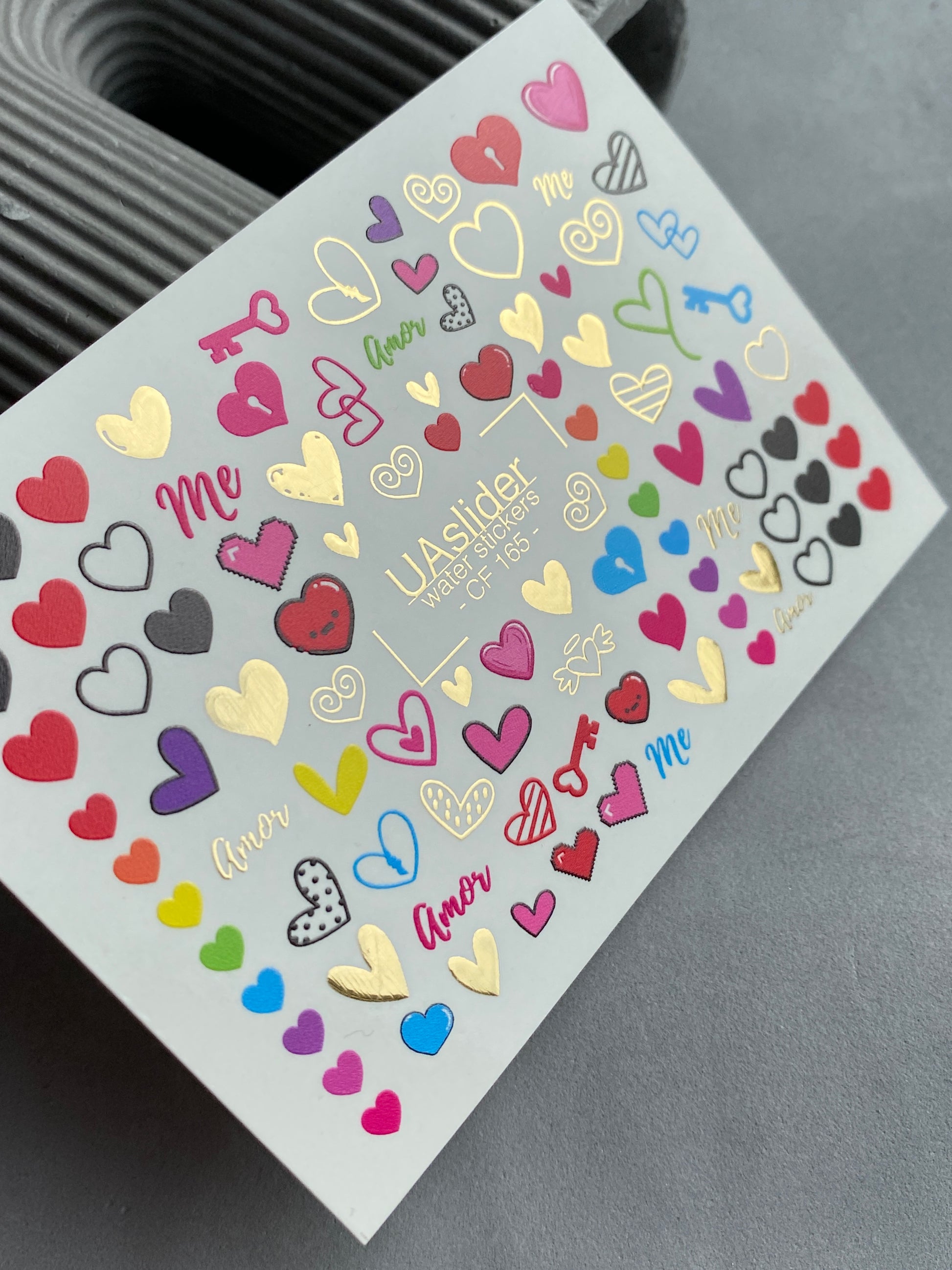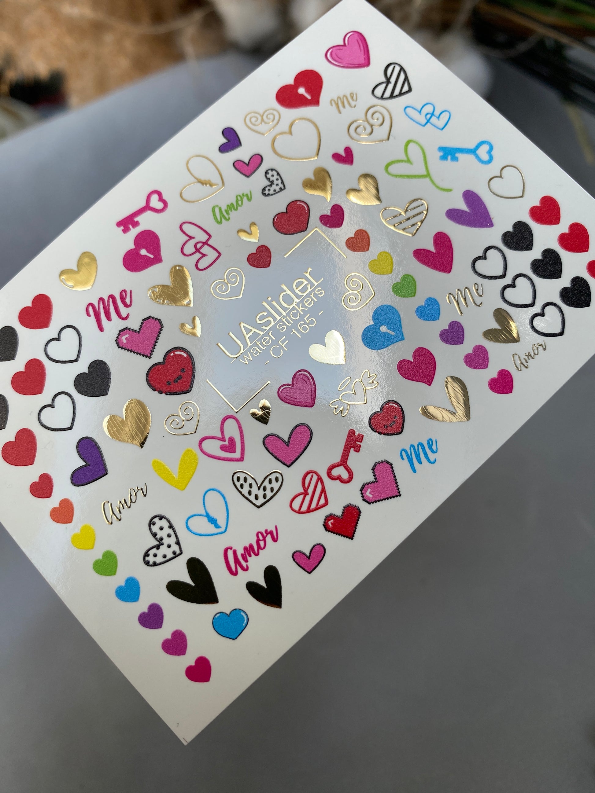 Adesivo per unghie ad acqua CF-165 | Adesivi per unghie ad acqua Love Nail Art | Cuori, chiavi e adesivi con scritte AmorCF_165
