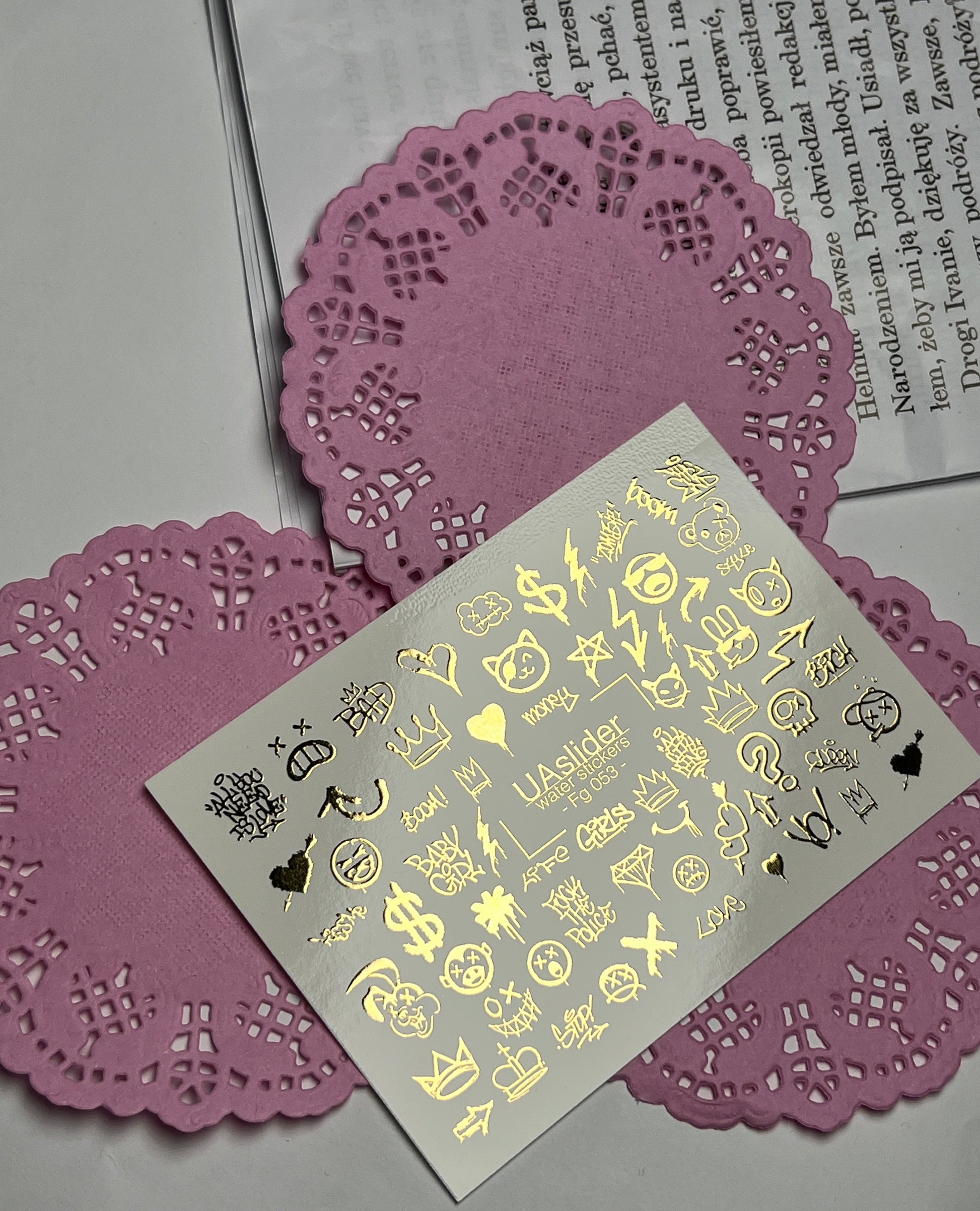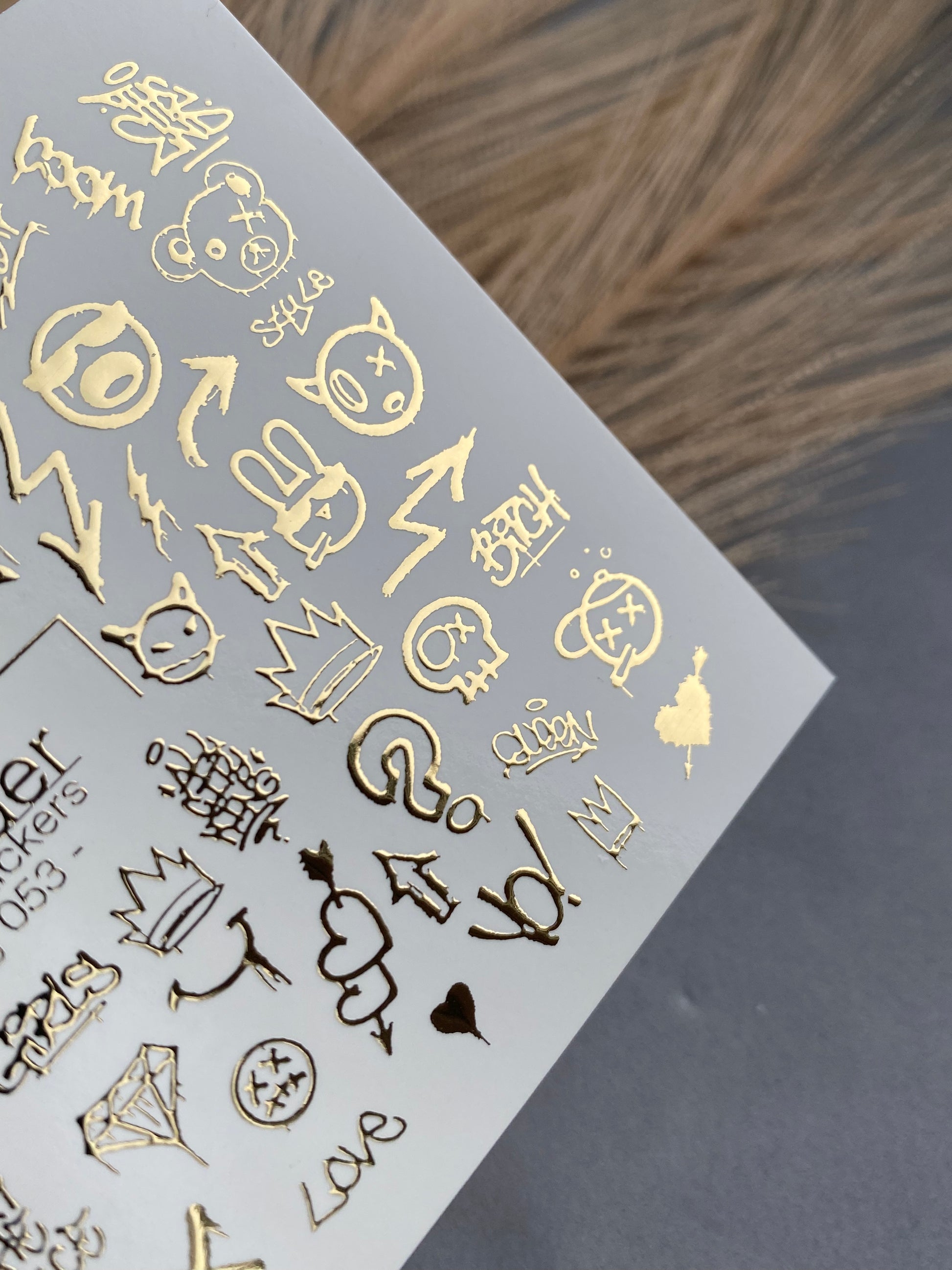 Adesivo per unghie Fg-053 | Adesivi per unghie a trasferimento ad acqua stile graffiti | Simboli urbani e arte per unghie dorata