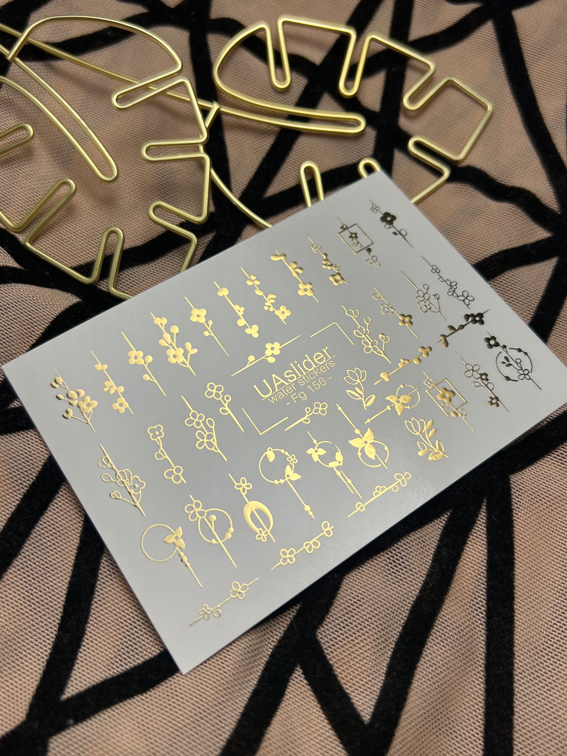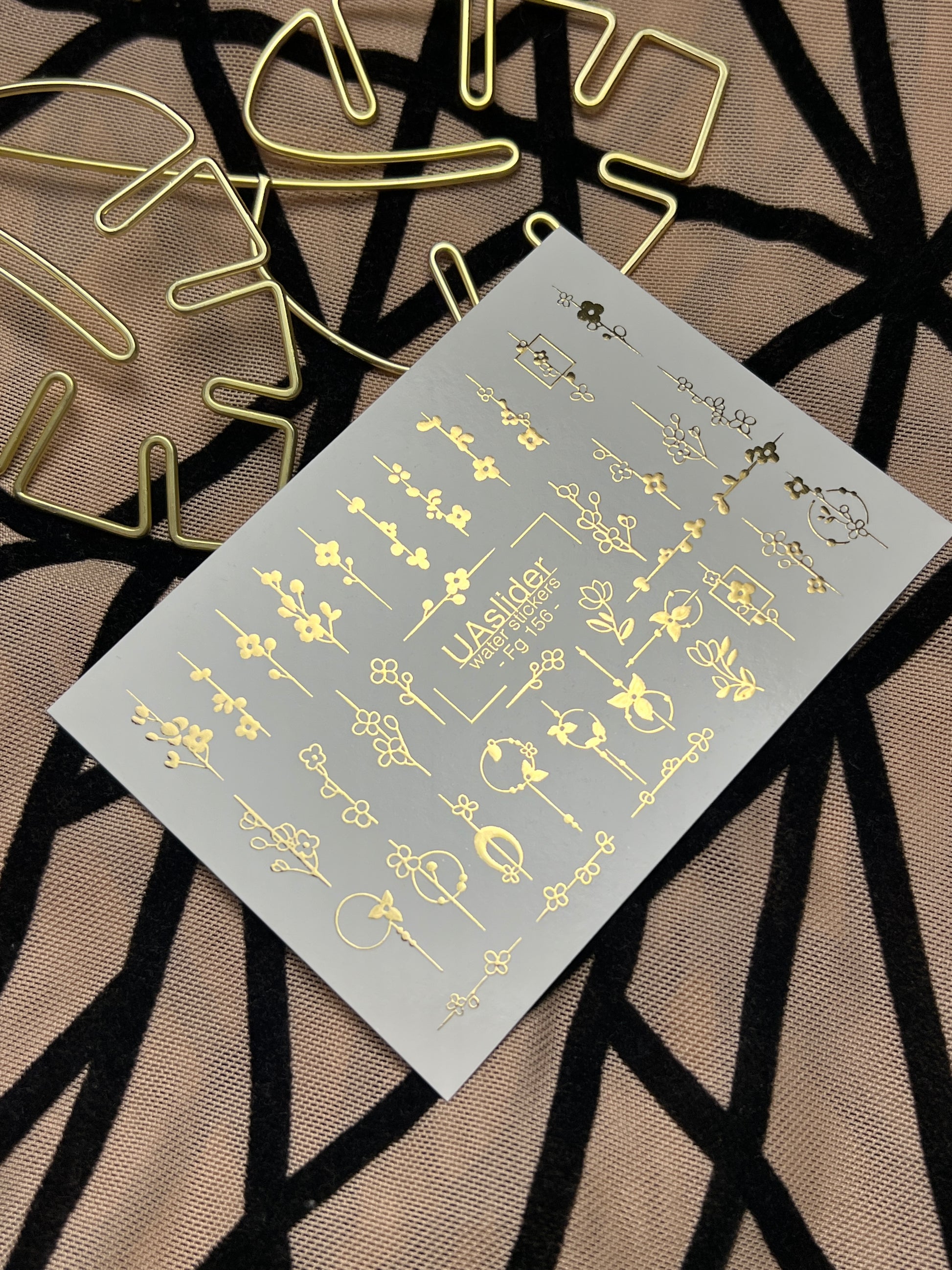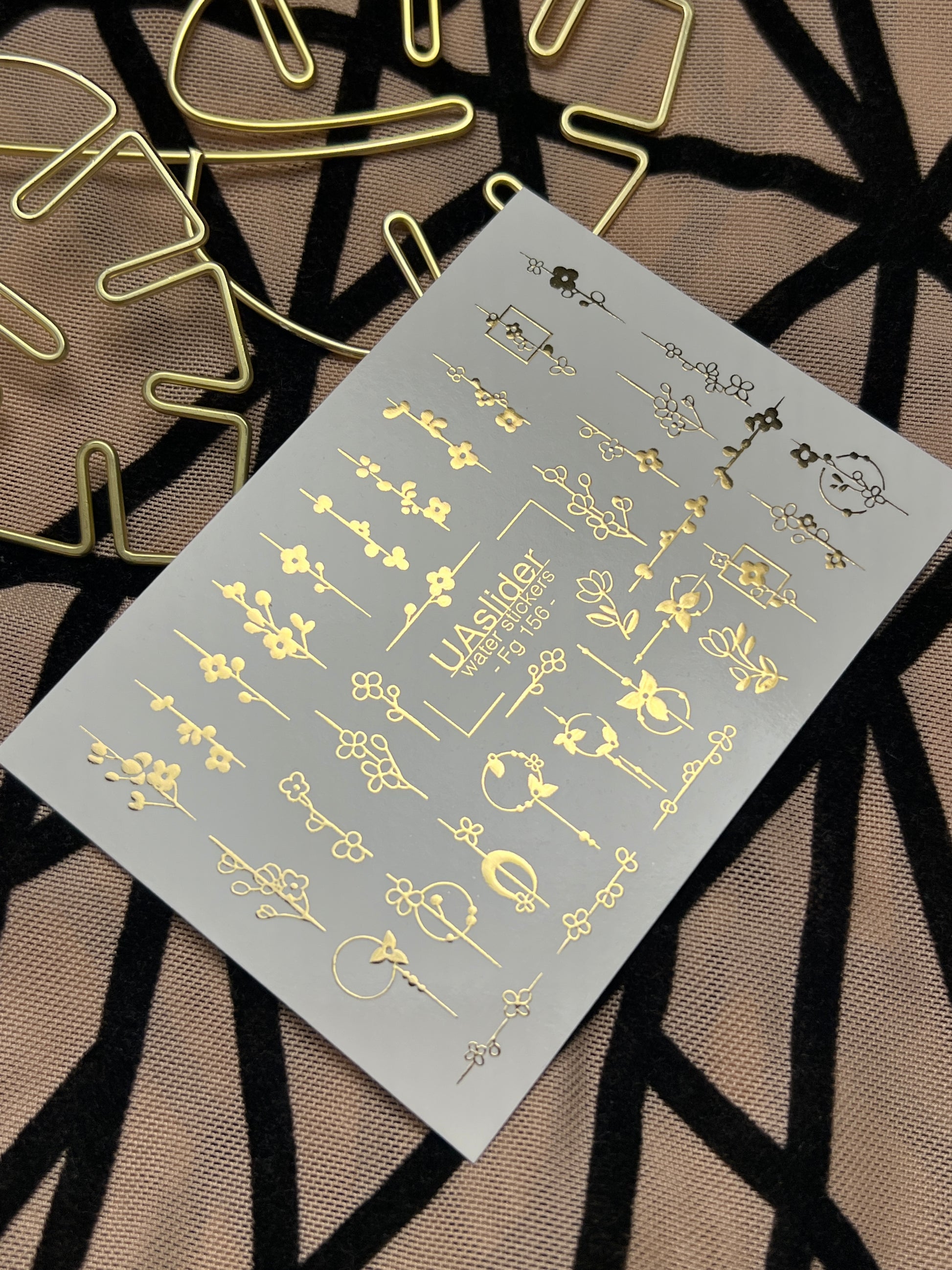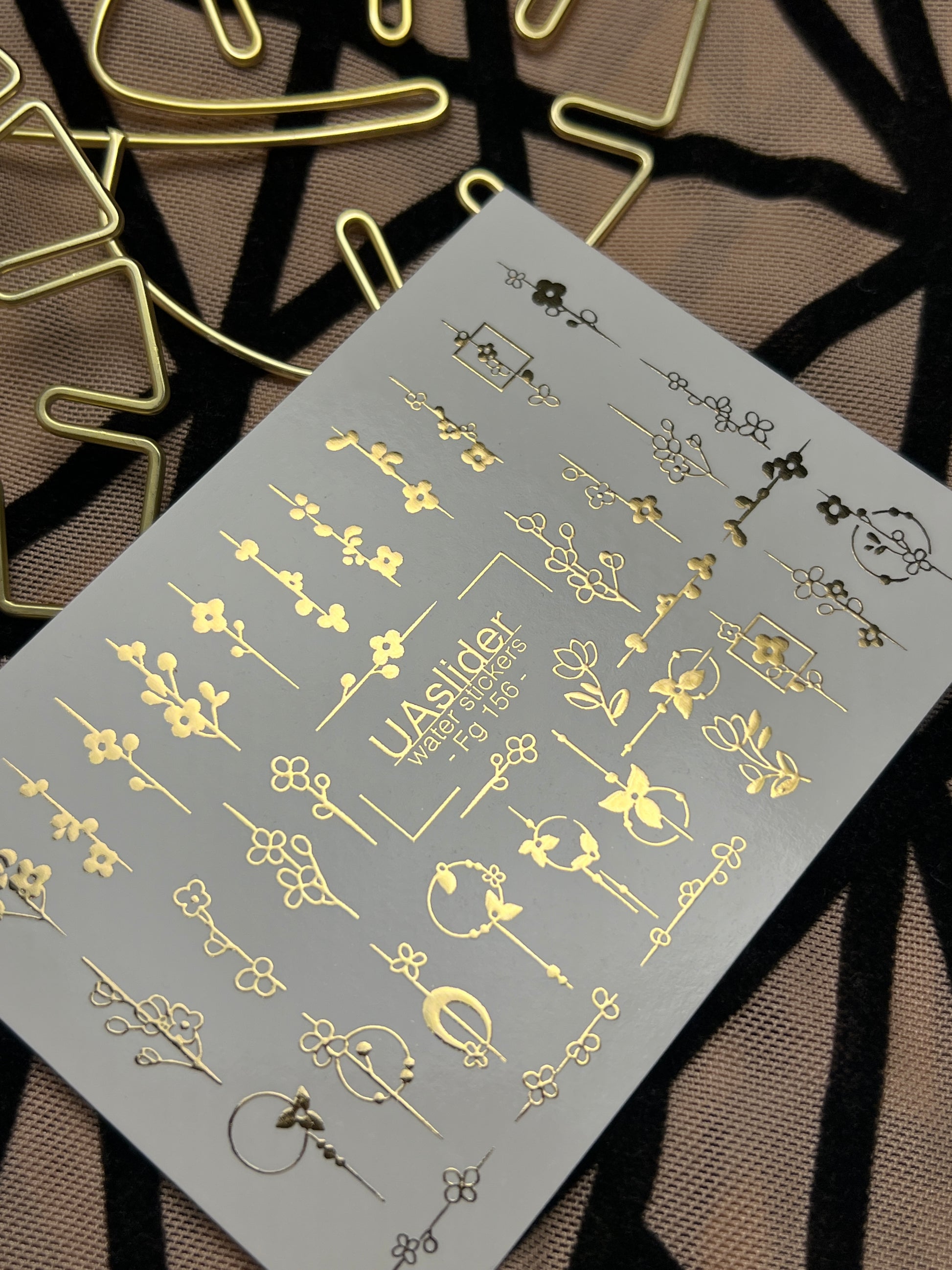 Adesivi per unghie in acqua Fg-156 | Adesivi per unghie a trasferimento ad acqua con foglia oro | Design botanici floreali minimalistiFg_156