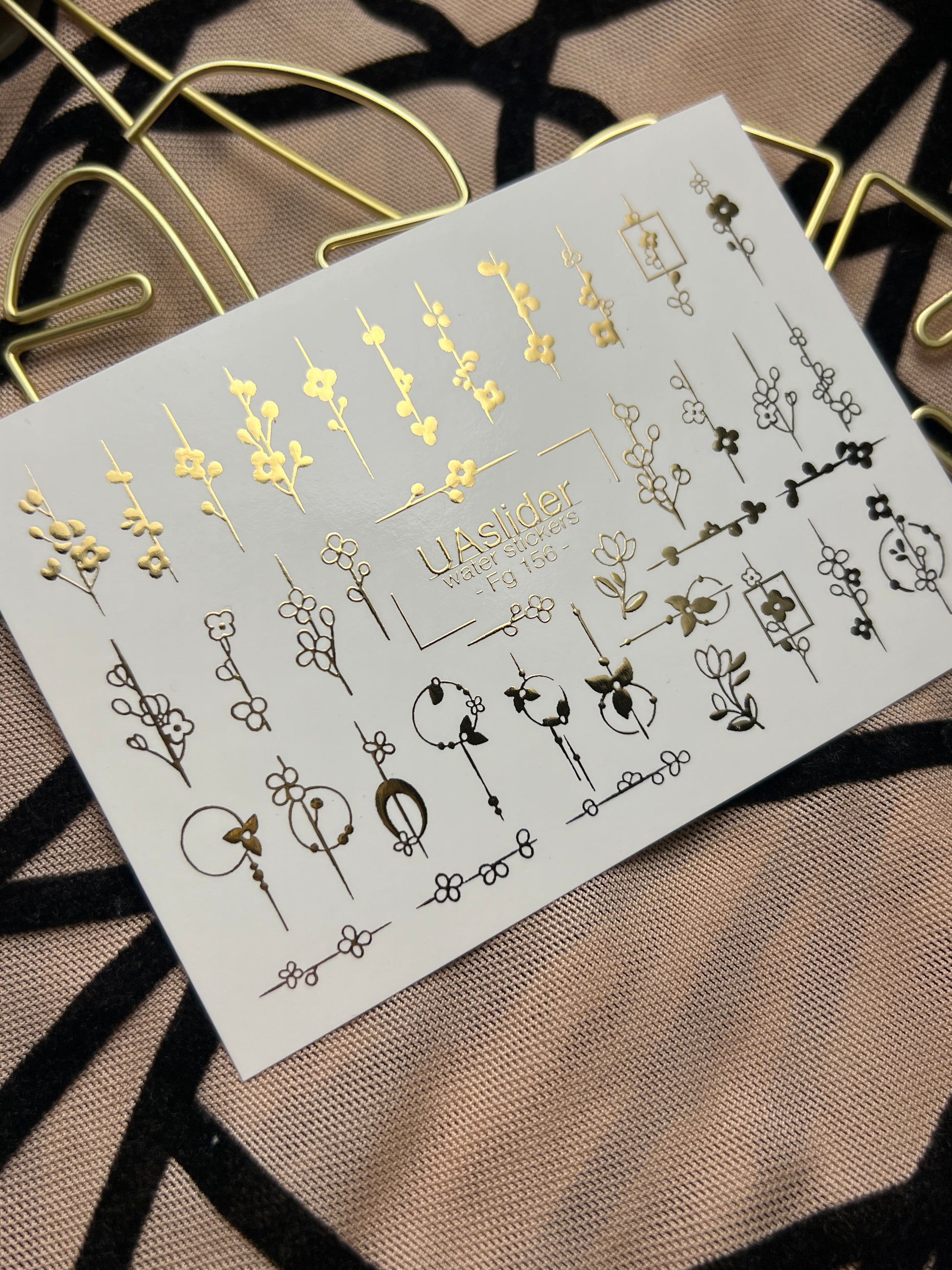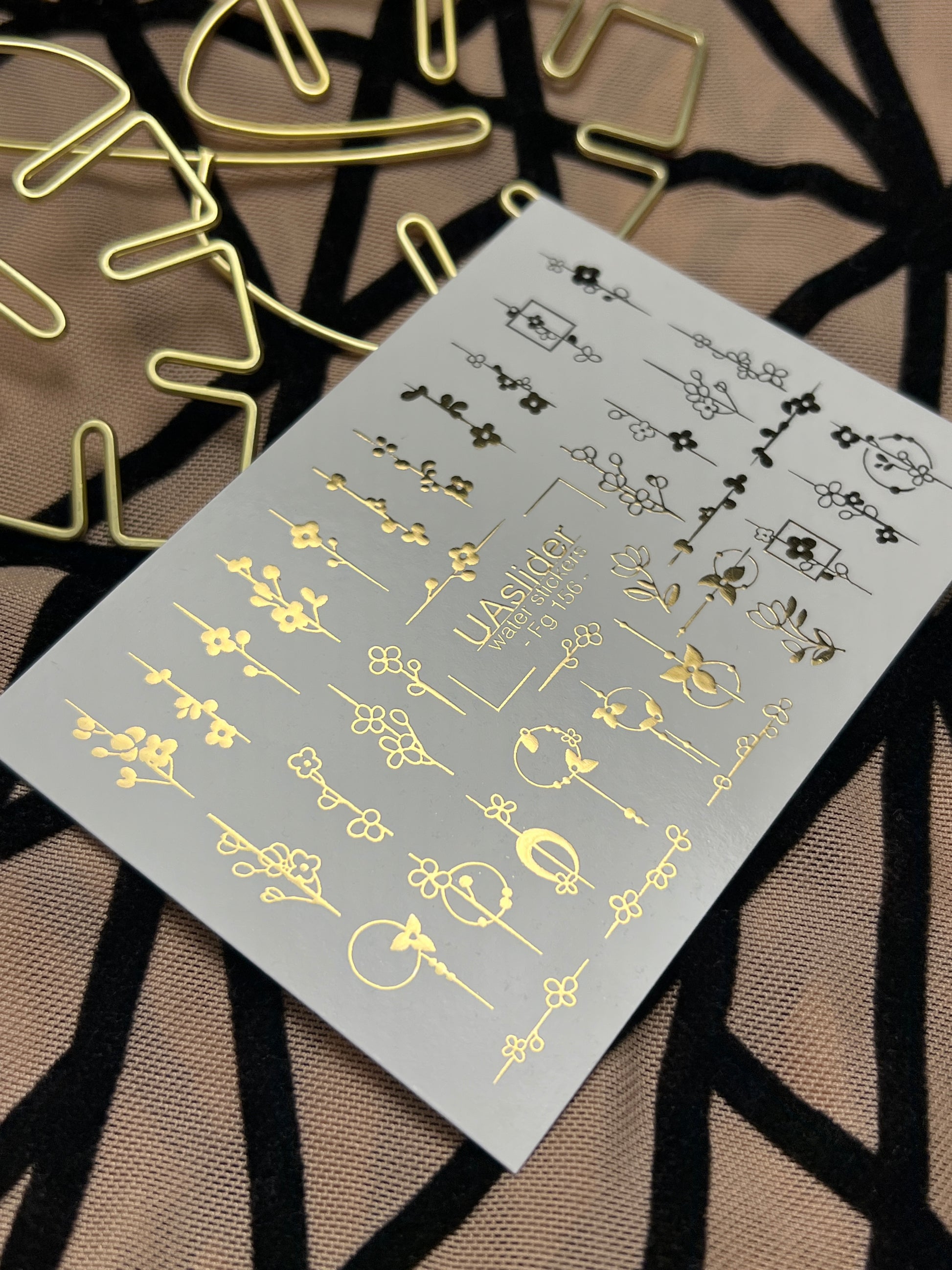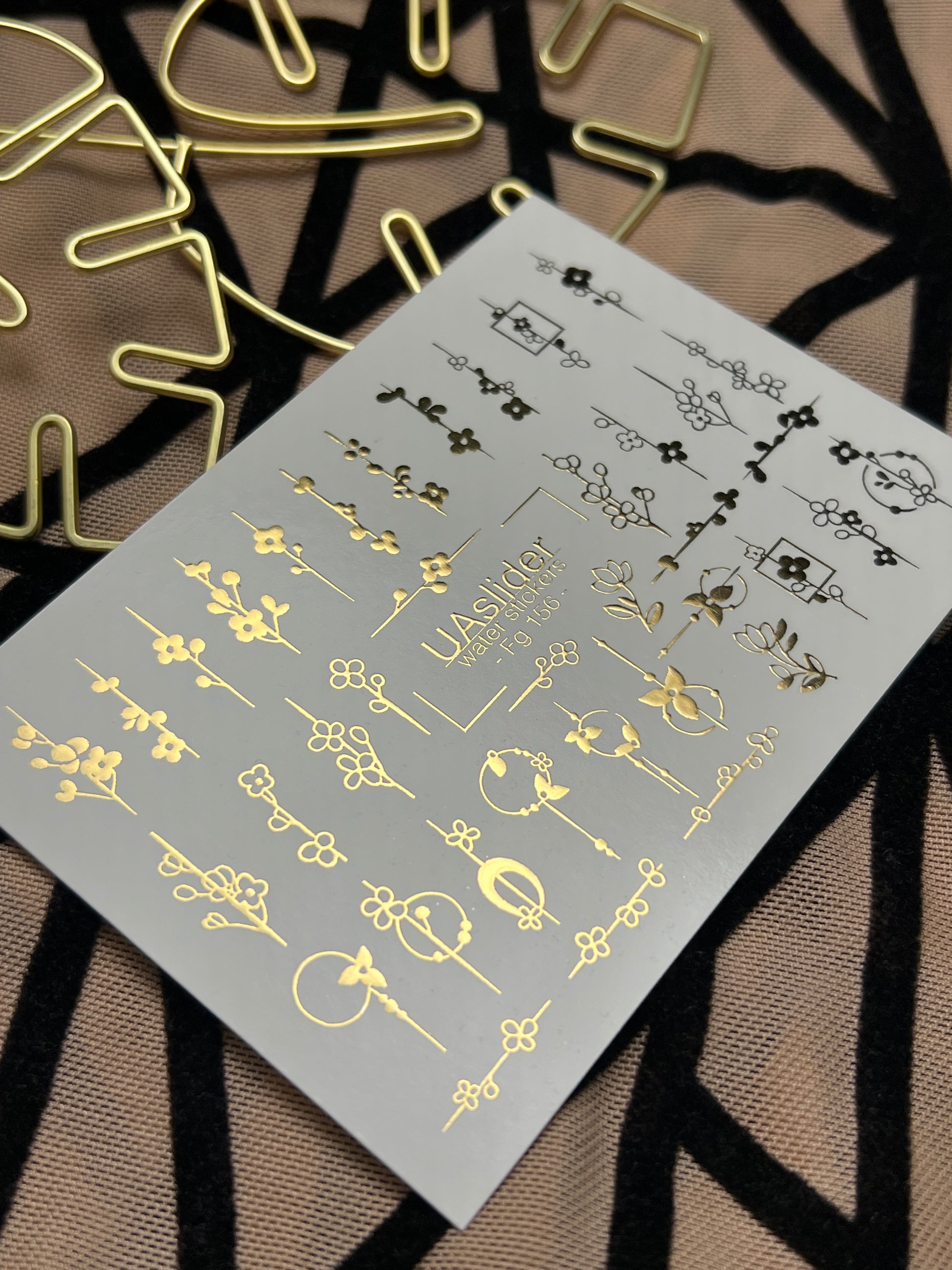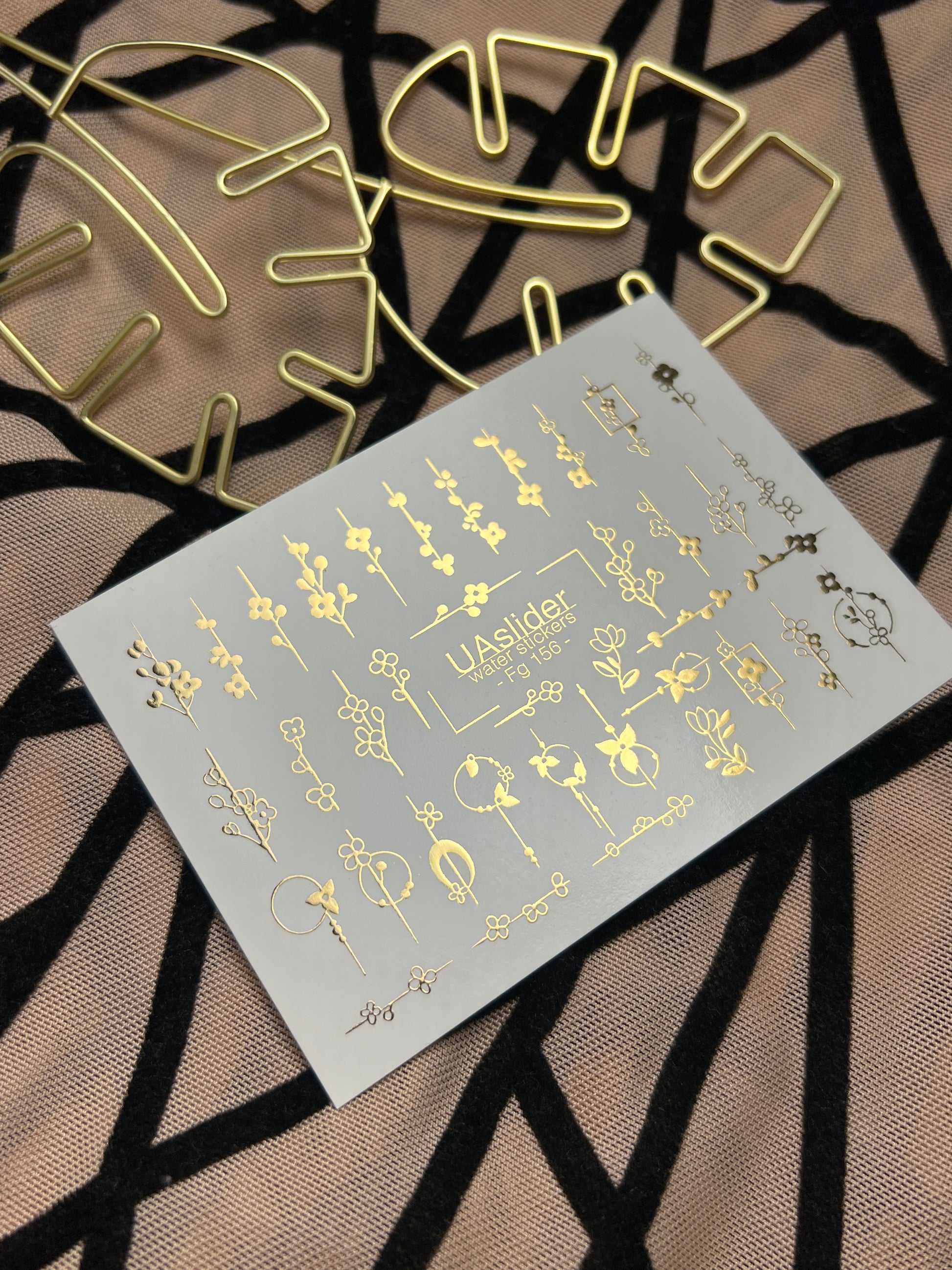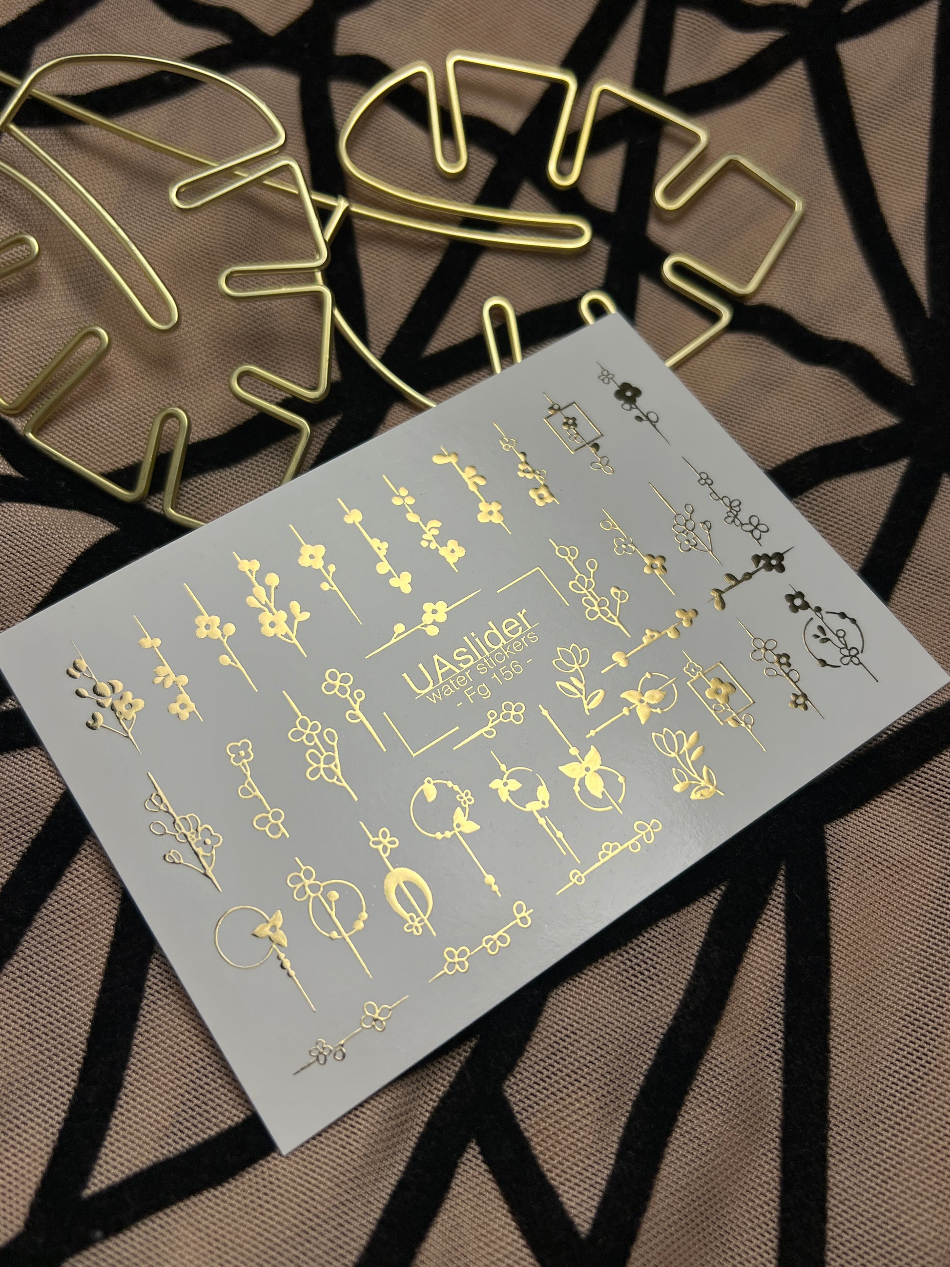 Adesivi per unghie in acqua Fg-156 | Adesivi per unghie a trasferimento ad acqua con foglia oro | Design botanici floreali minimalistiFg_156