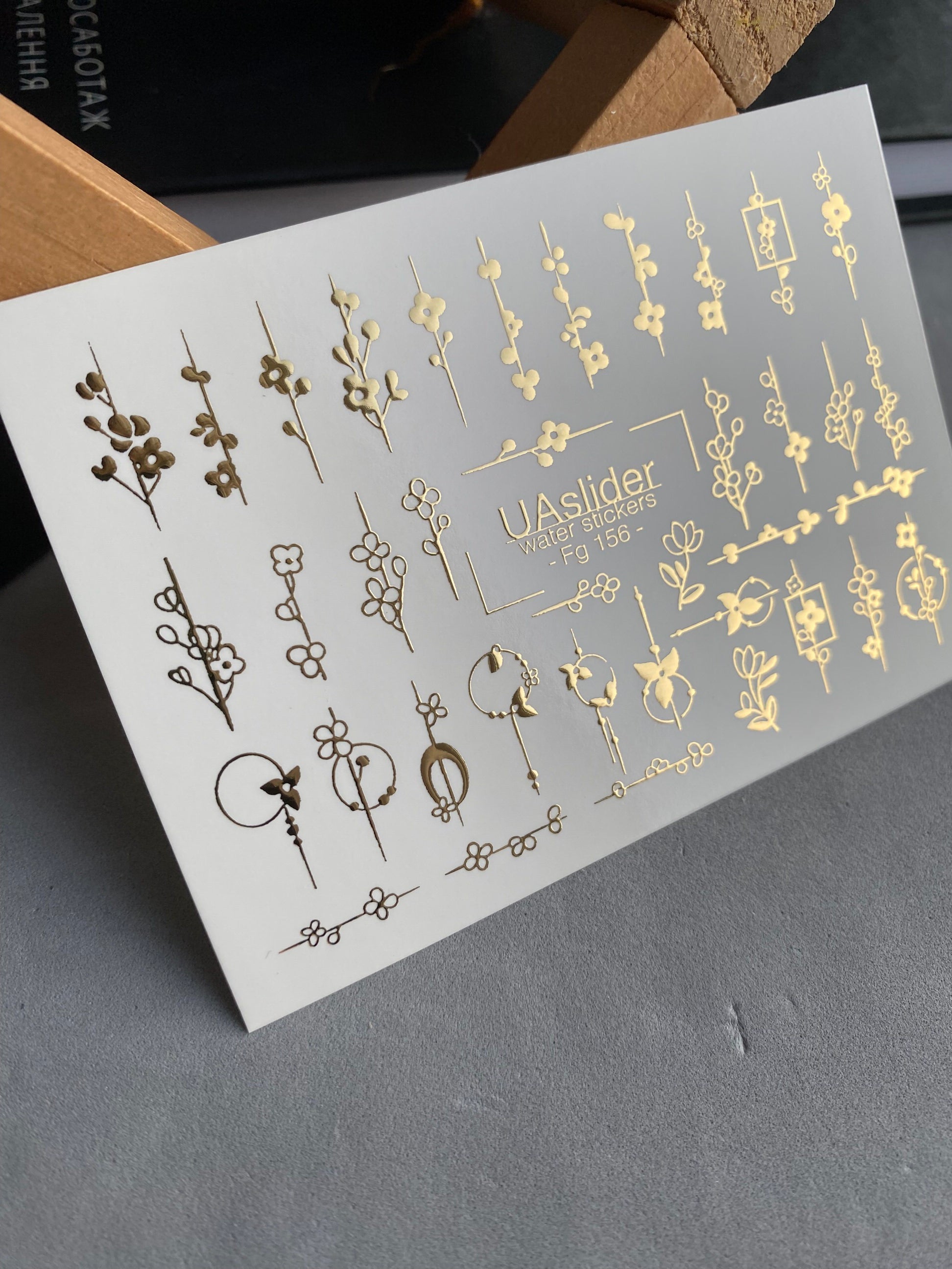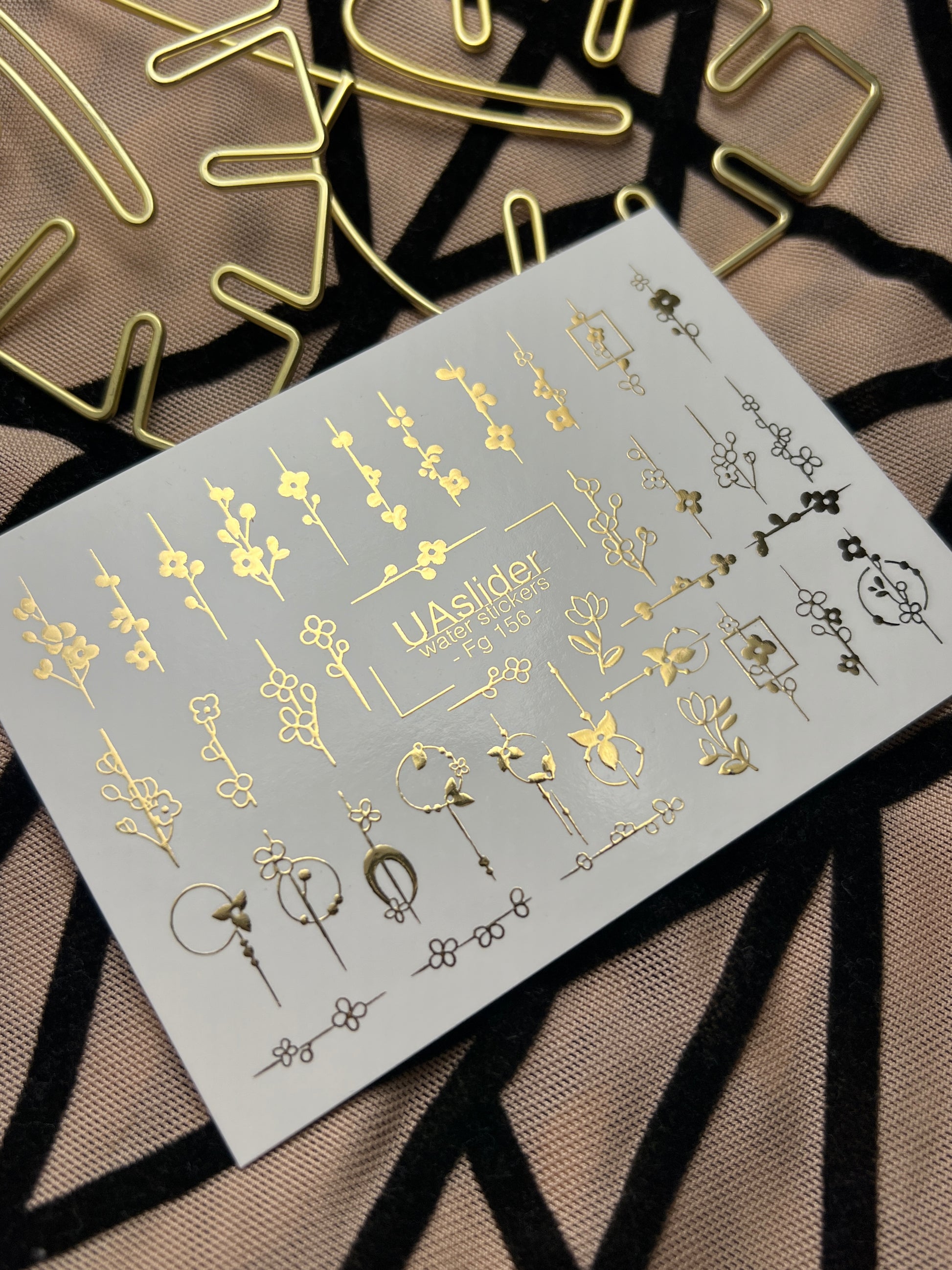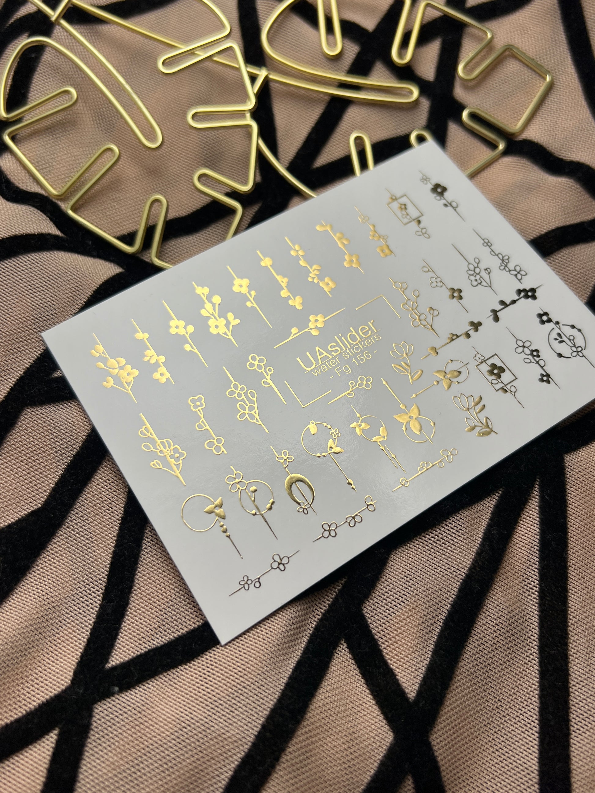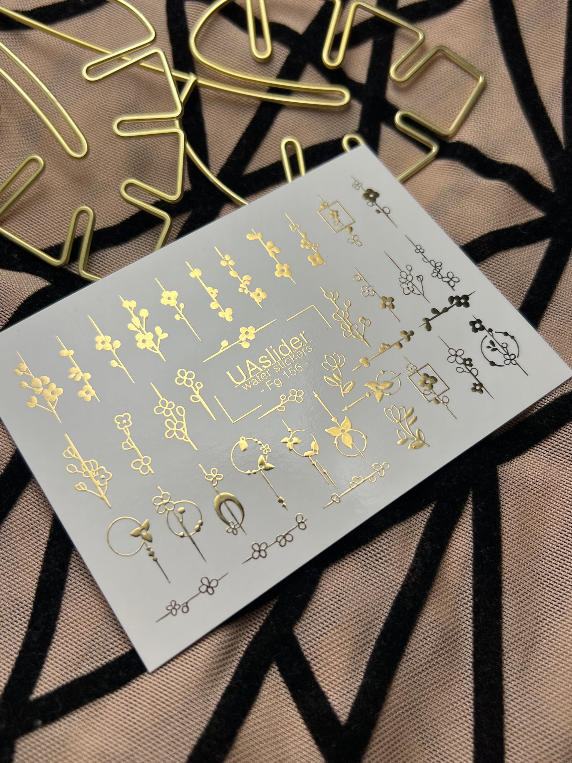 Adesivi per unghie in acqua Fg-156 | Adesivi per unghie a trasferimento ad acqua con foglia oro | Design botanici floreali minimalistiFg_156