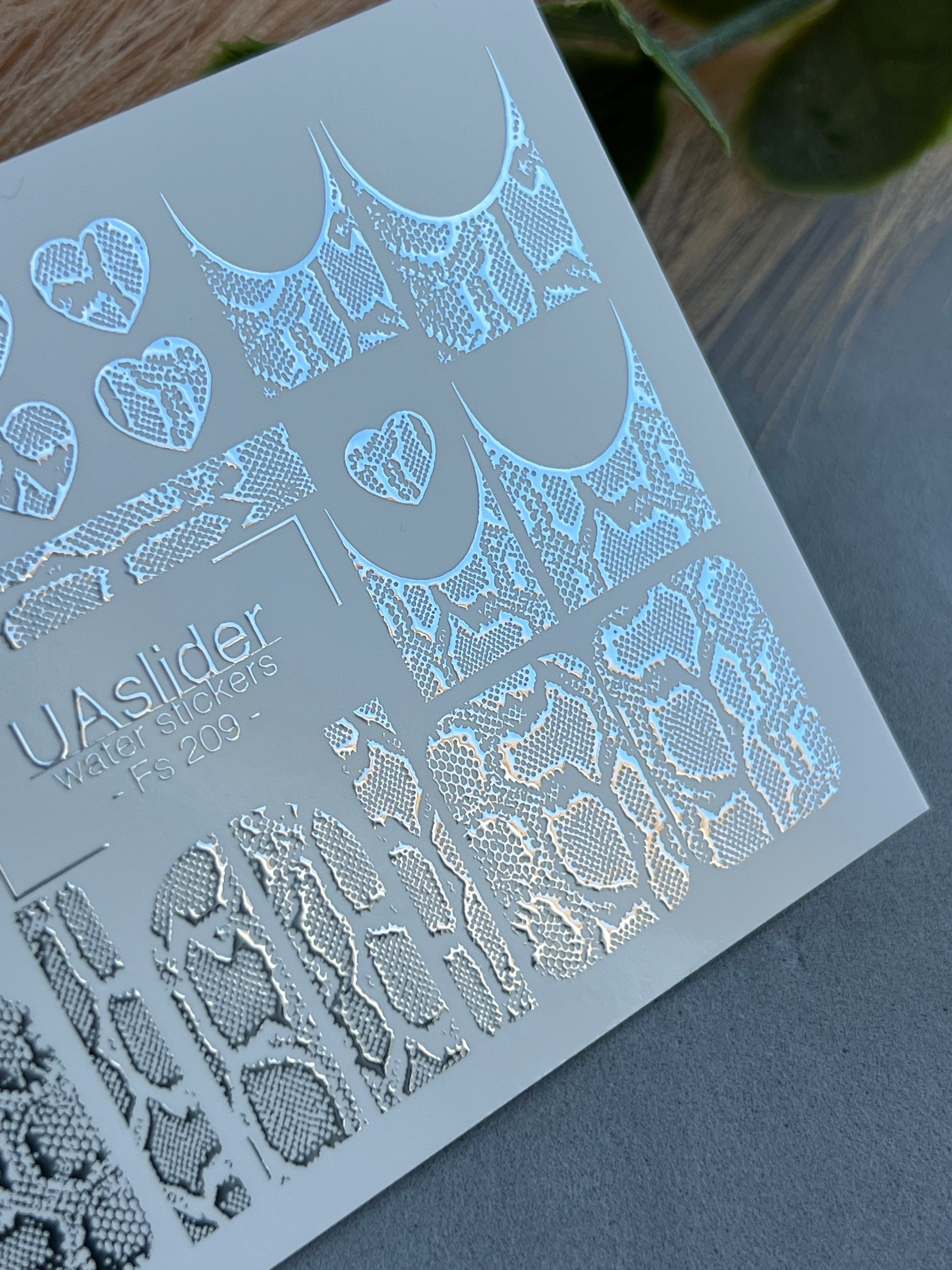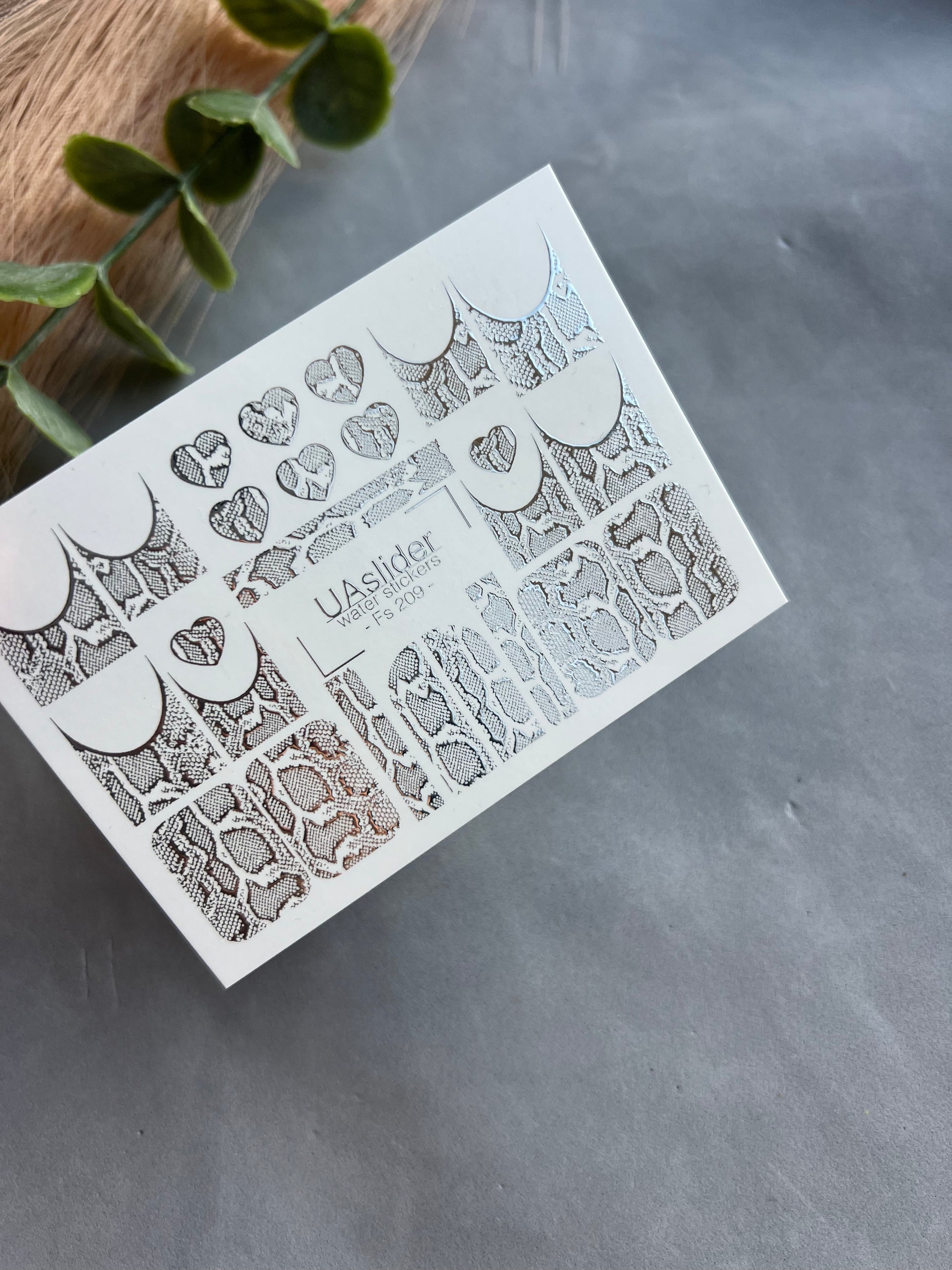 Adesivo per unghie Fs-209 | Adesivi per unghie a trasferimento ad acqua Pelle di serpente | Cuori e design francese