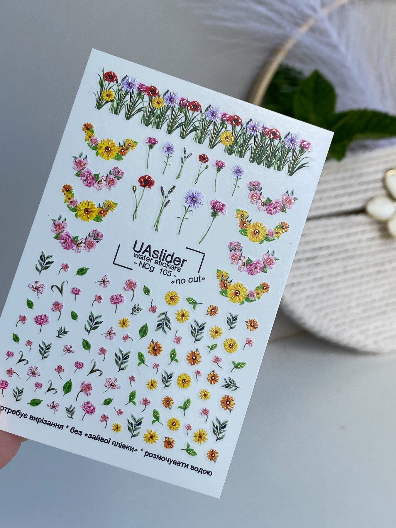 Adesivo per unghie ad acqua NCg-105 | Adesivi per unghie a scivolamento ad acqua Fiori selvatici | Adesivi per unghie ad acqua Fiori del prato e vegetazione