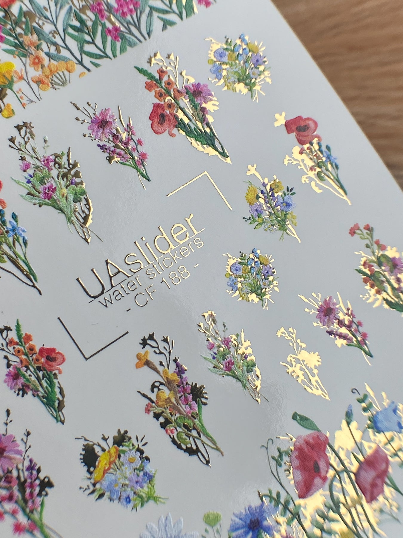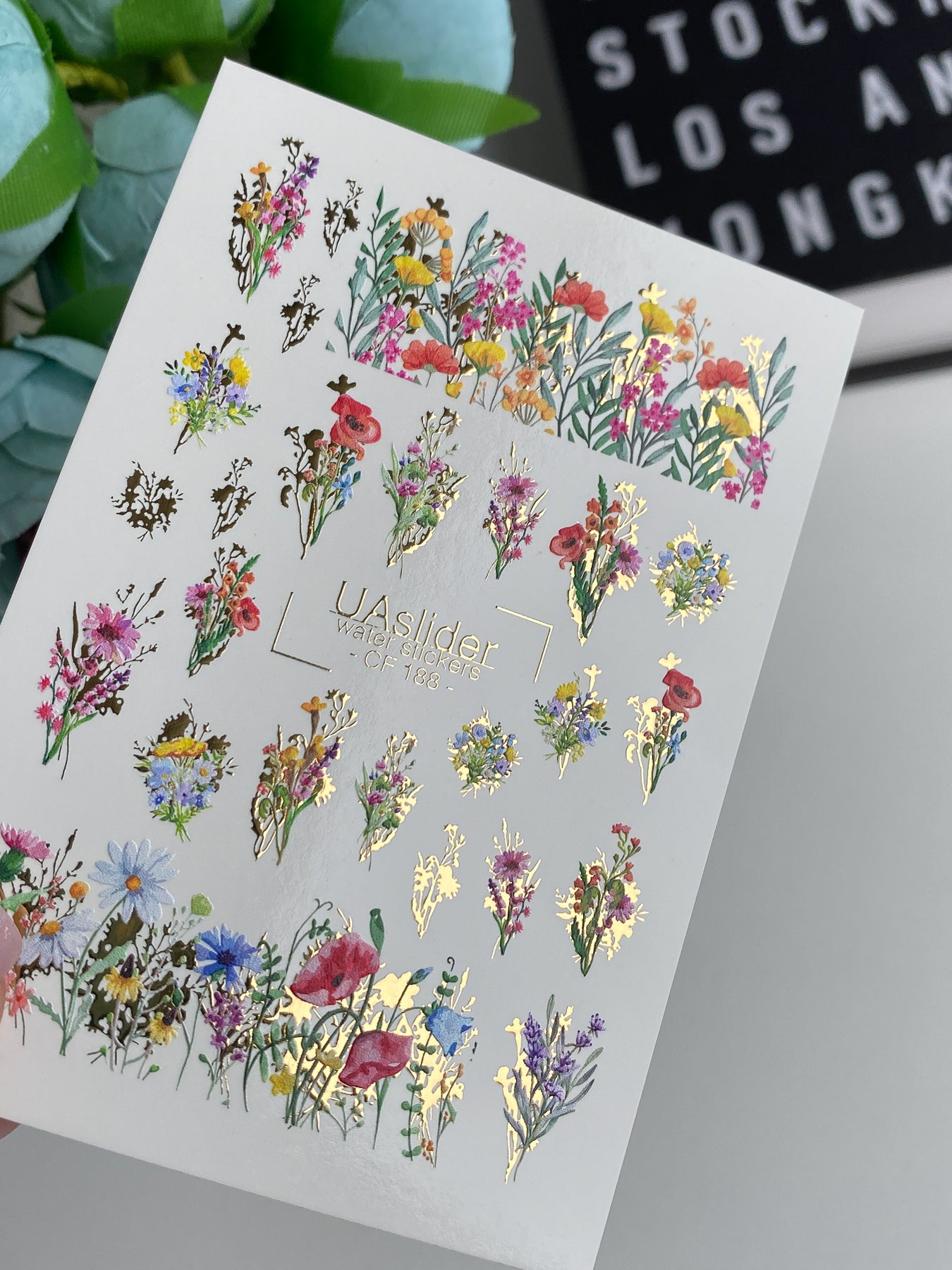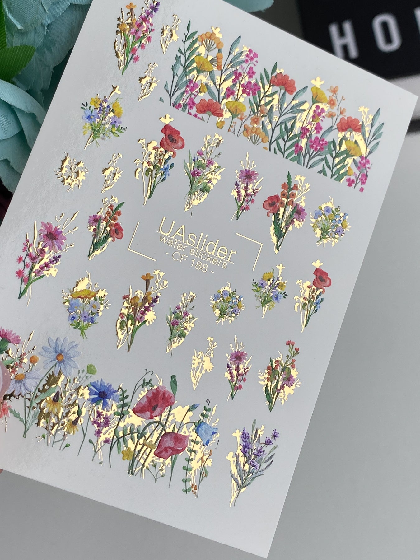 ネイルウォーターデカール CF-188 | ネイルウォーターデカール | ゴールデンアクセント付きワイルドフラワーブーケCF_188