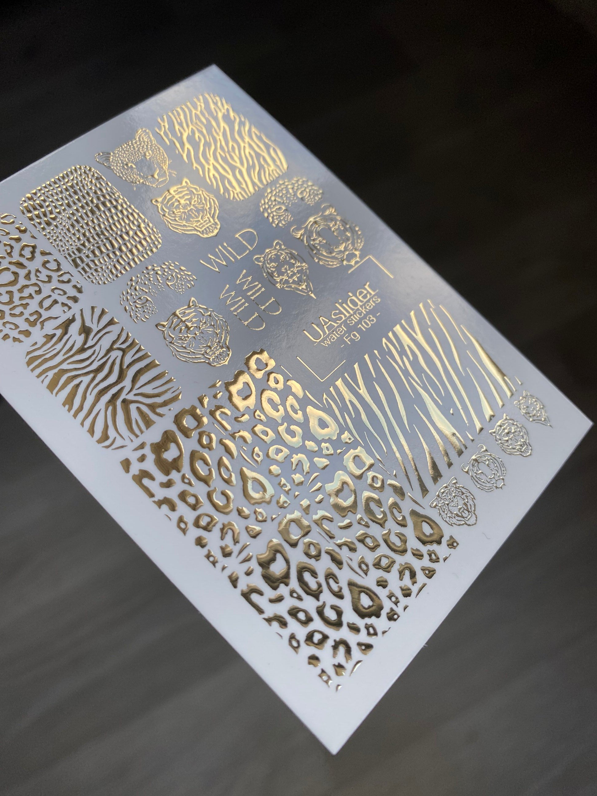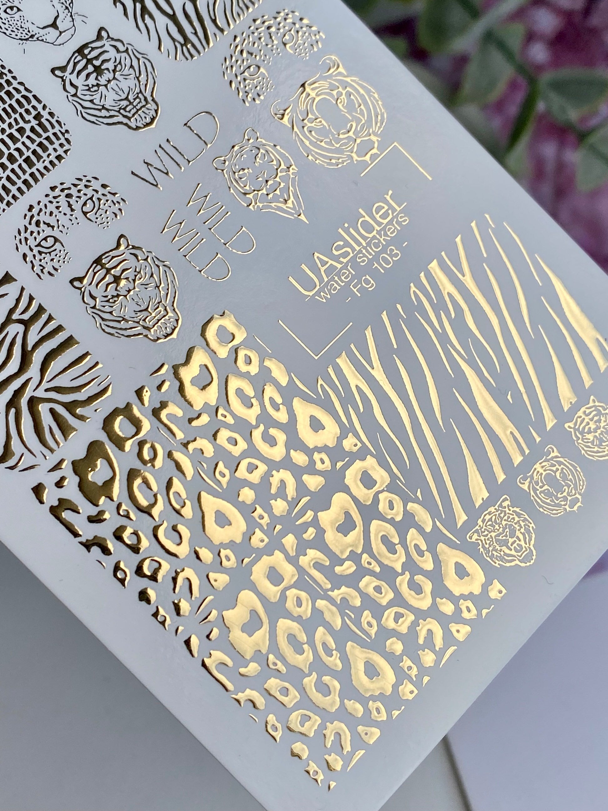 Nagų vandens lipdukas Fg-103 | Vandens slydimo nagų lipdukai su auksiniu gyvūnų raštu | Laukinio džiunglių stiliausFg_103