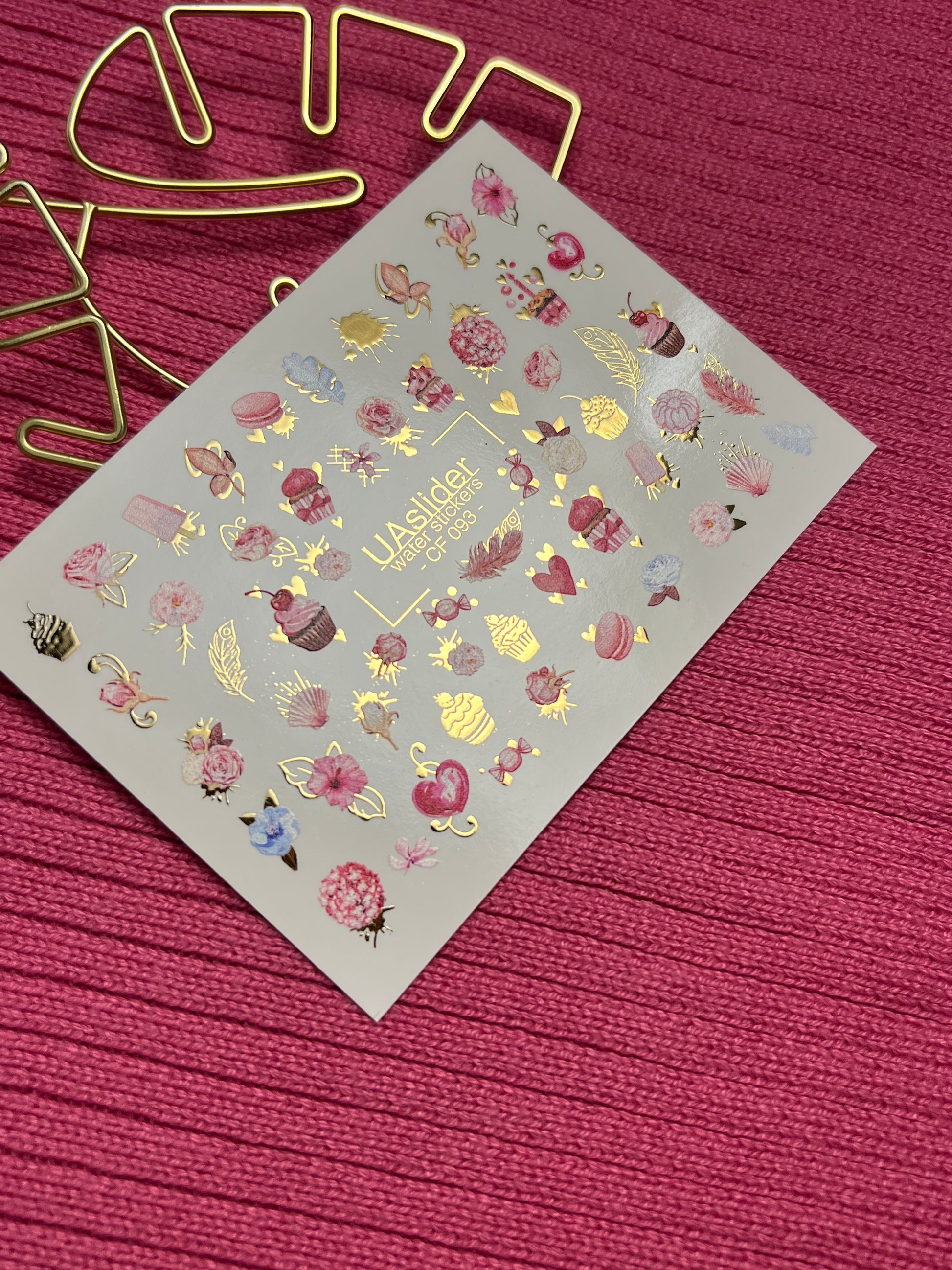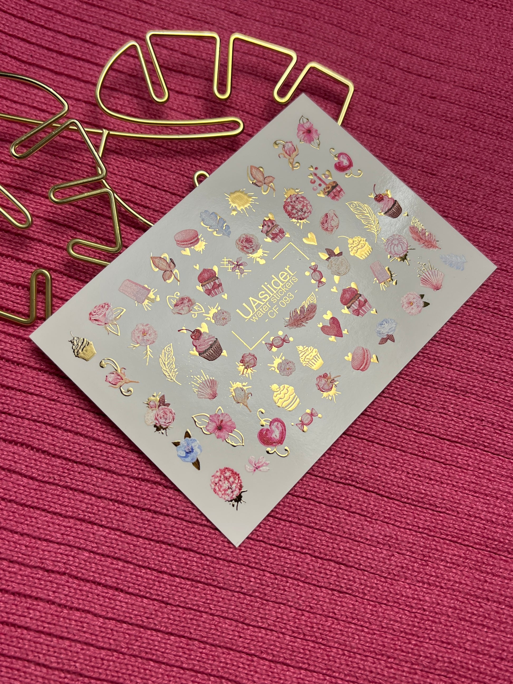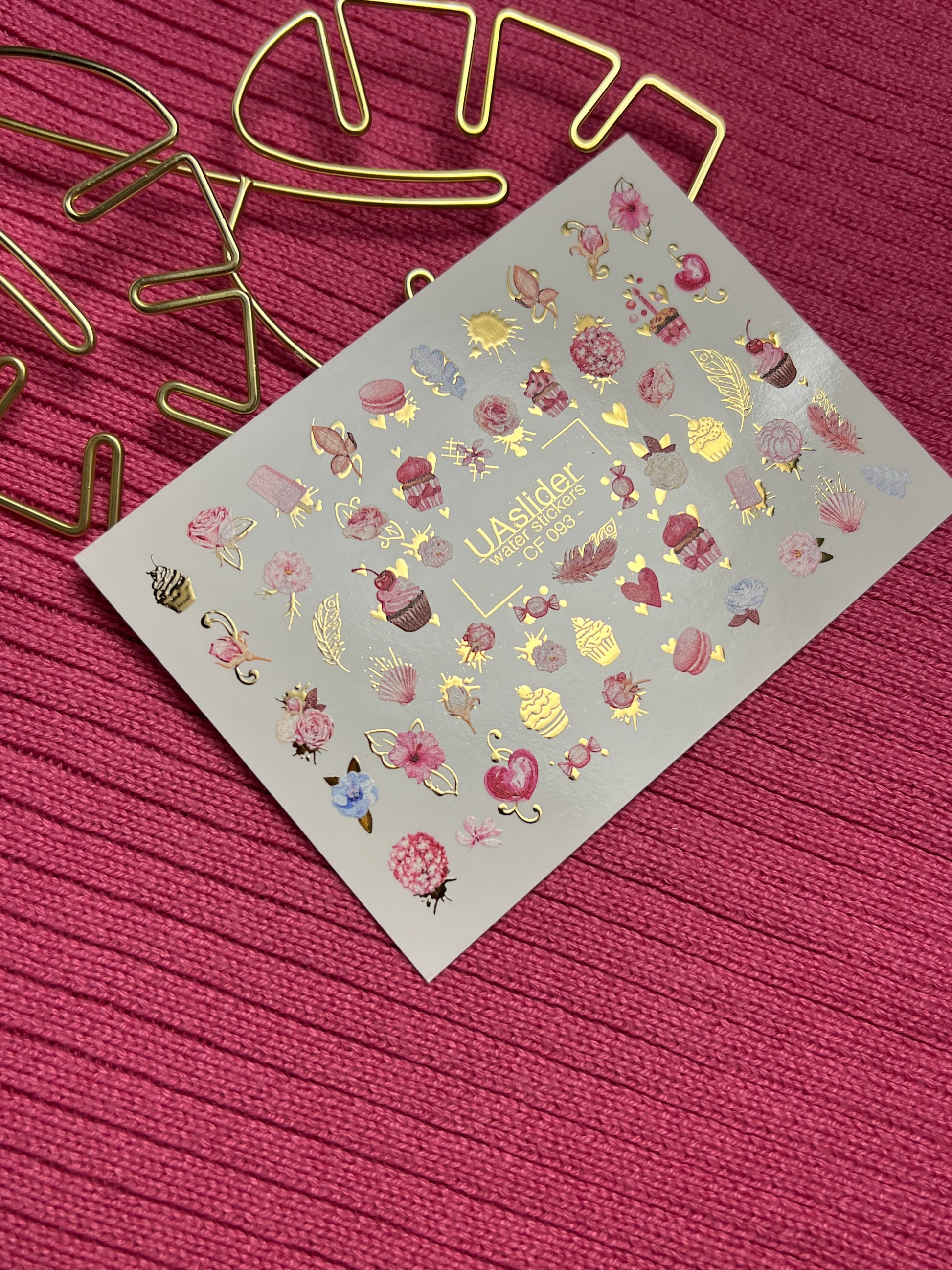 Nagu ūdens uzlīme CF-093 | Saldās ūdens slīdēšanas nagu uzlīmes | Mafini, ziedi un sirdis