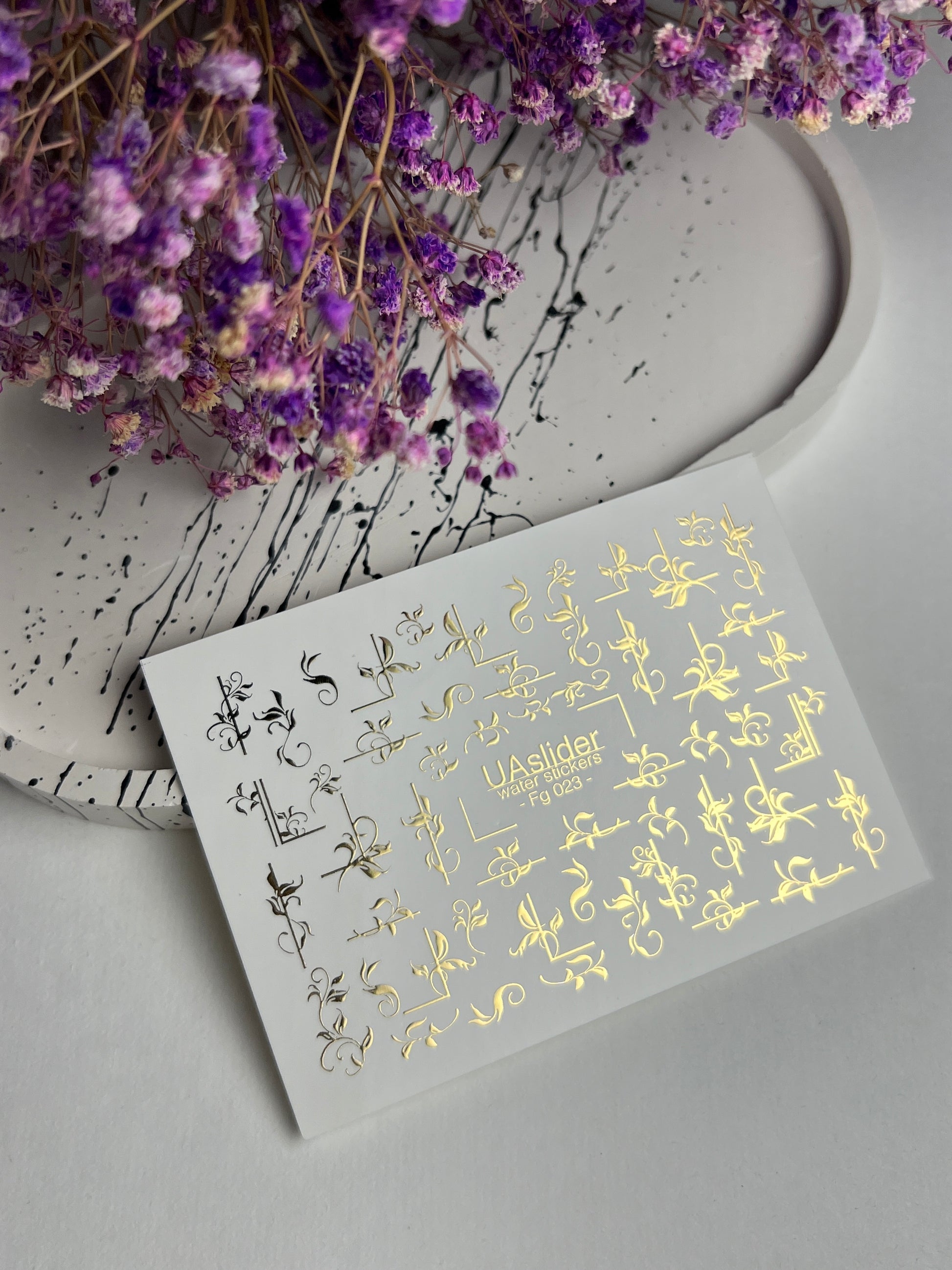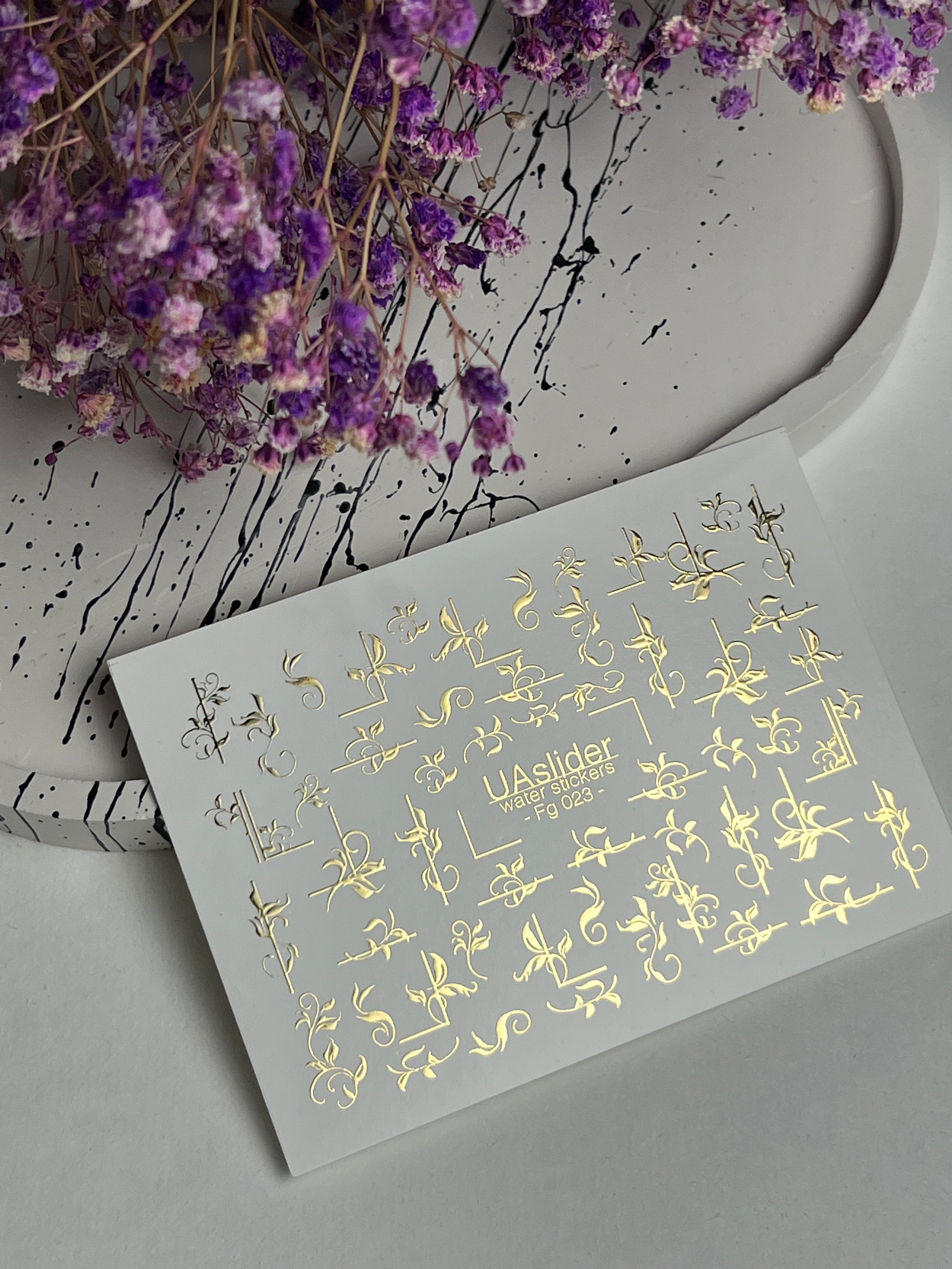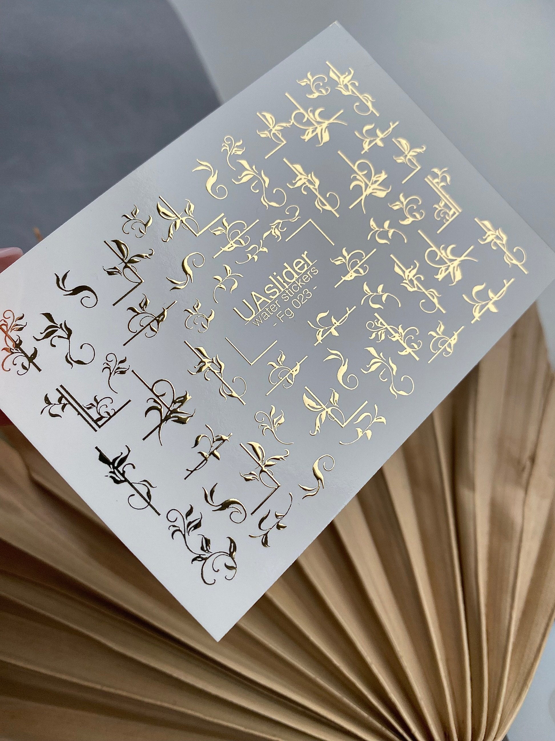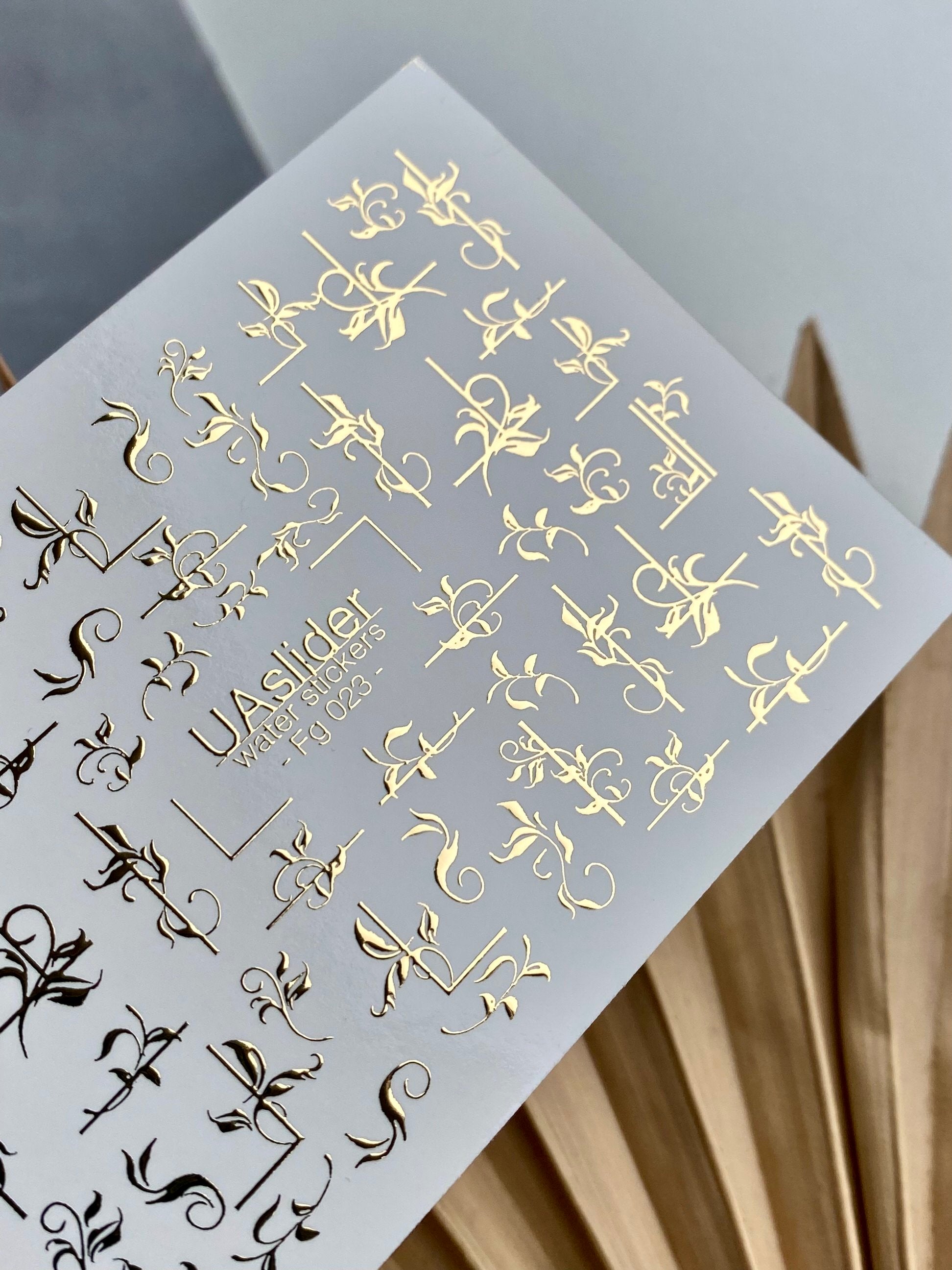 Nagel Water Decal Fg-023 | Decoratieve Water Slide Nagel Decals met Goudfolie | Elegante Krullen & Bloemenmotieven