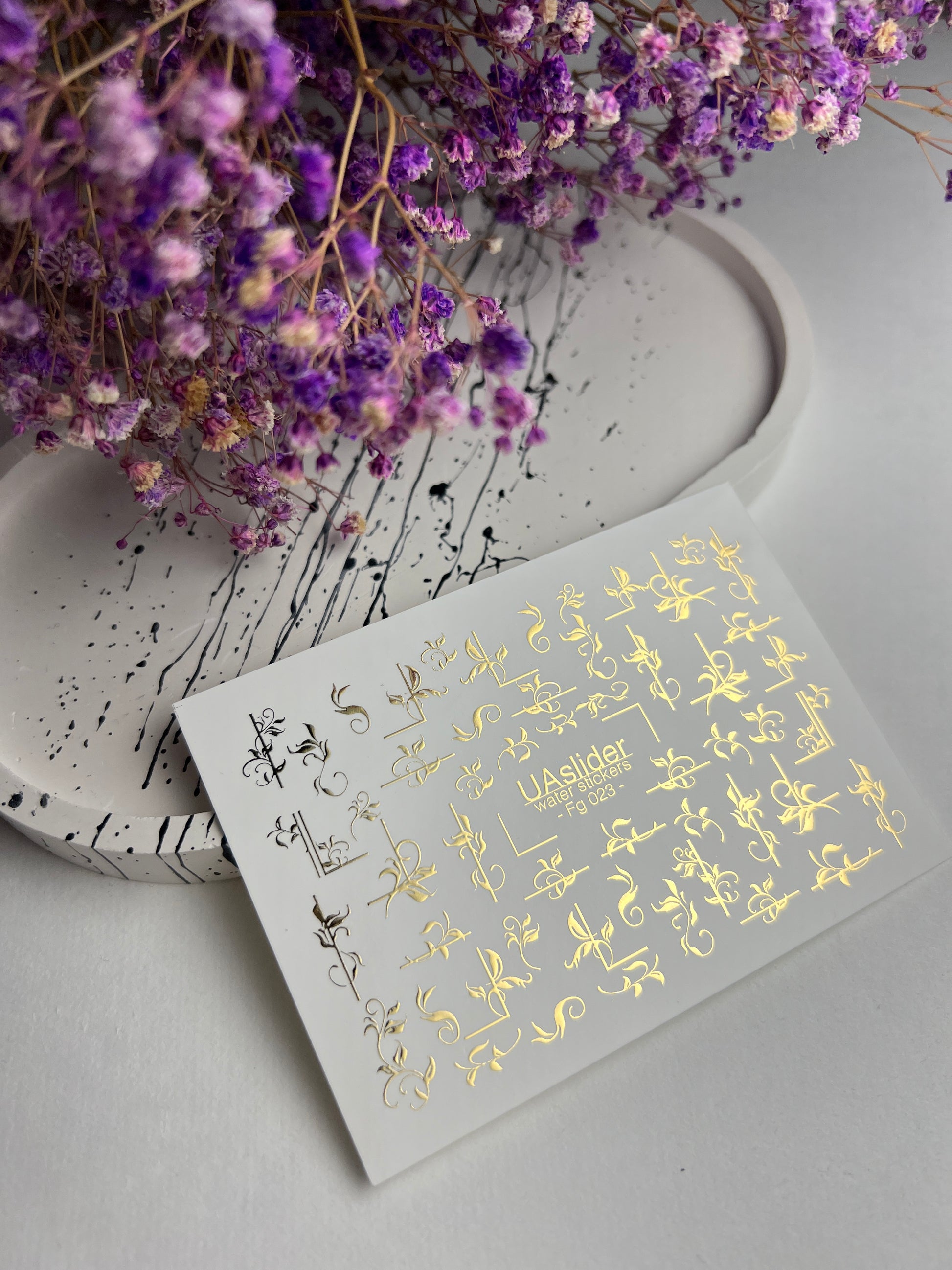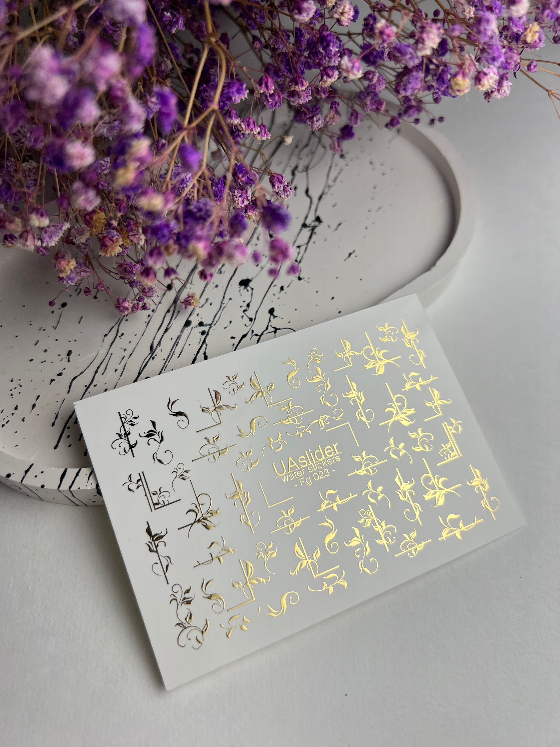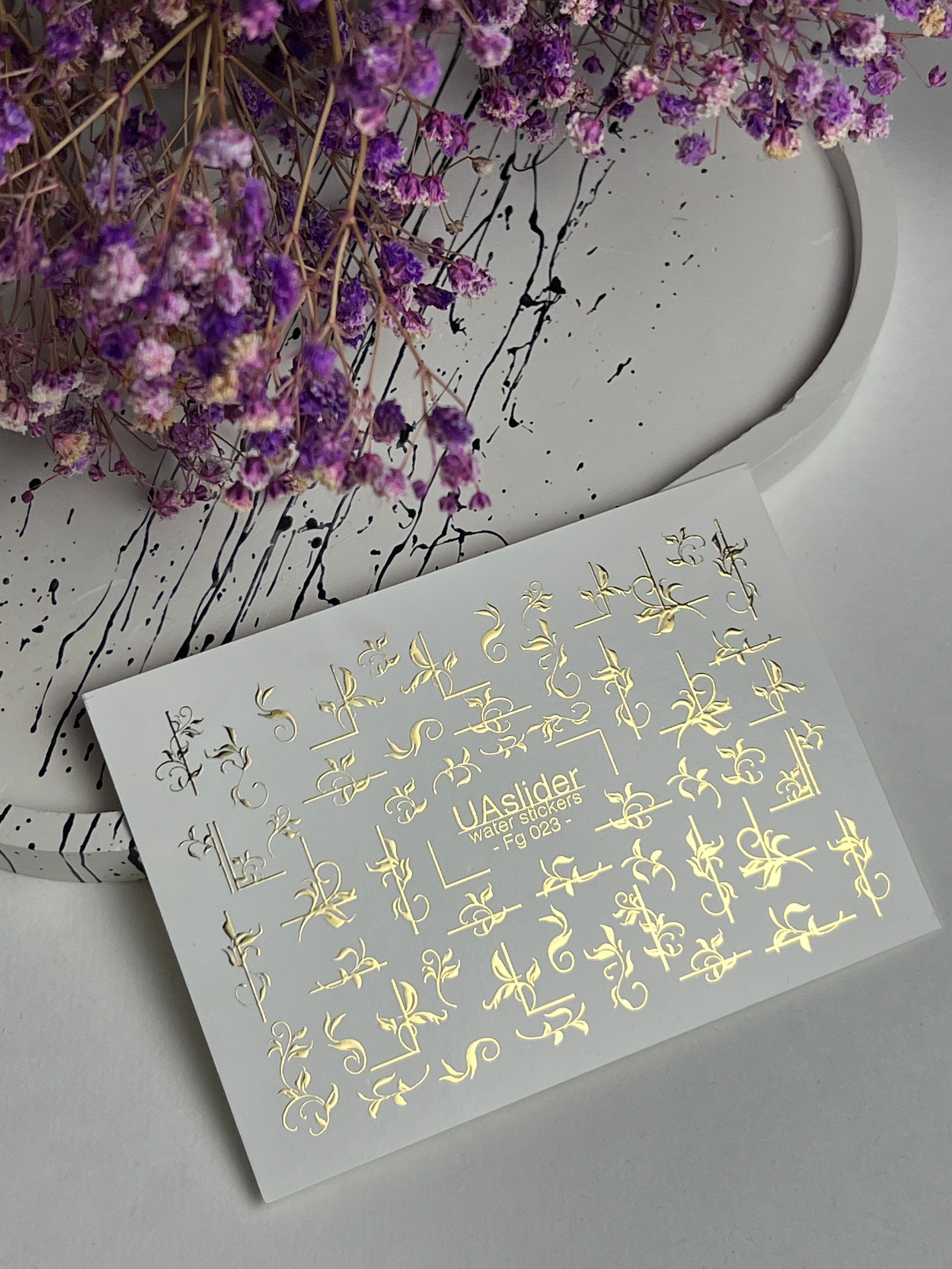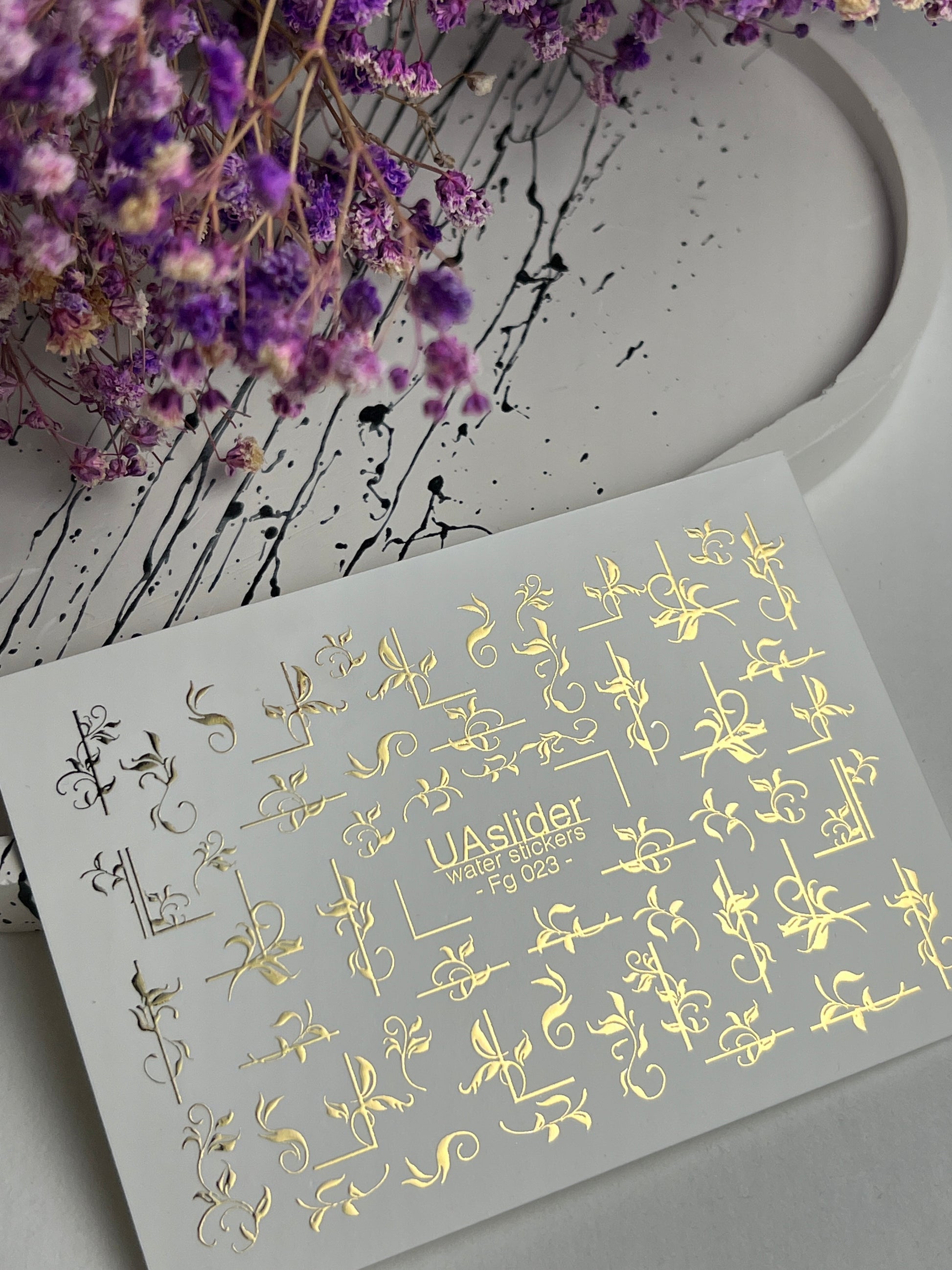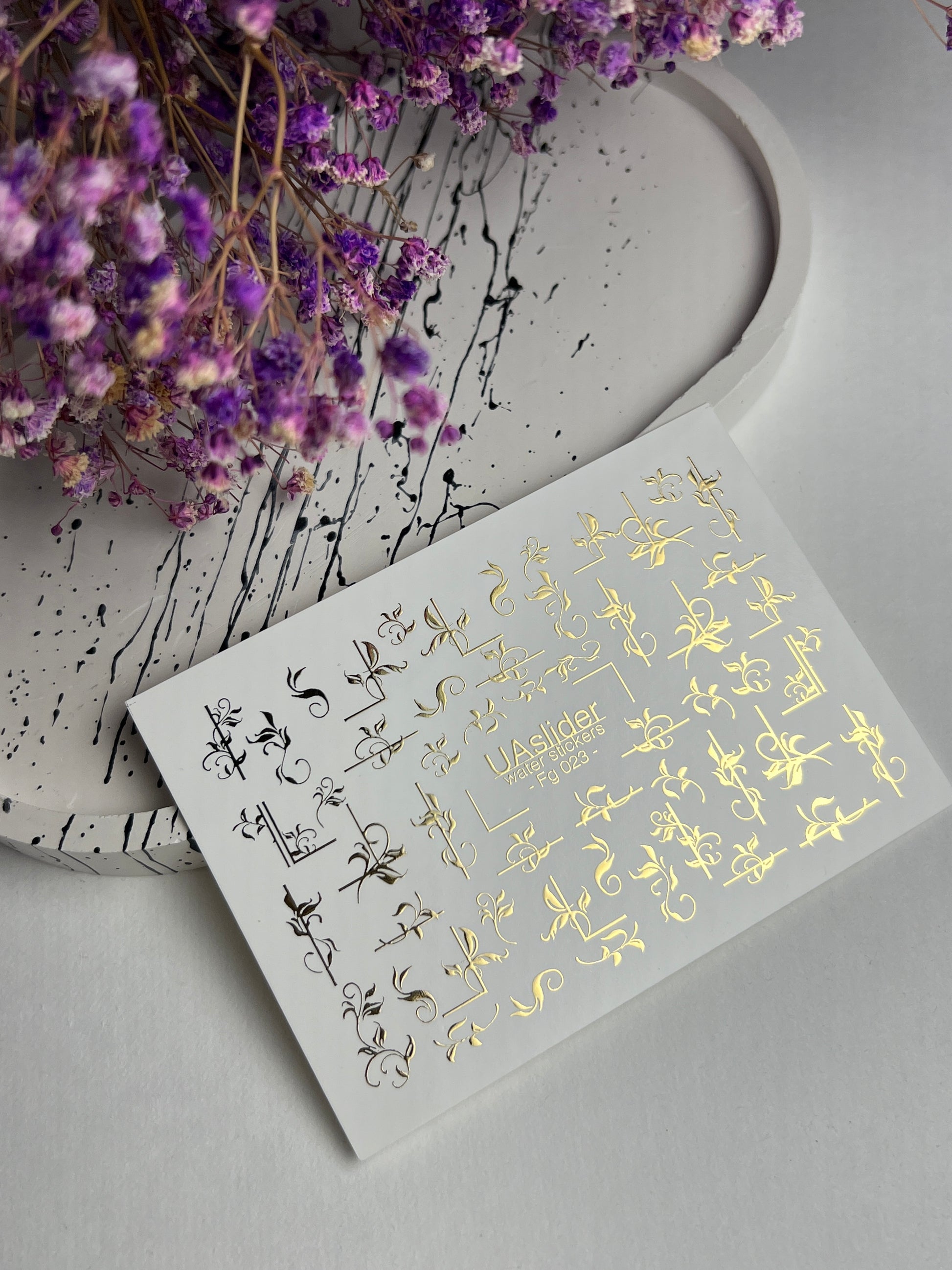 Nagel Water Decal Fg-023 | Decoratieve Water Slide Nagel Decals met Goudfolie | Elegante Krullen & Bloemenmotieven