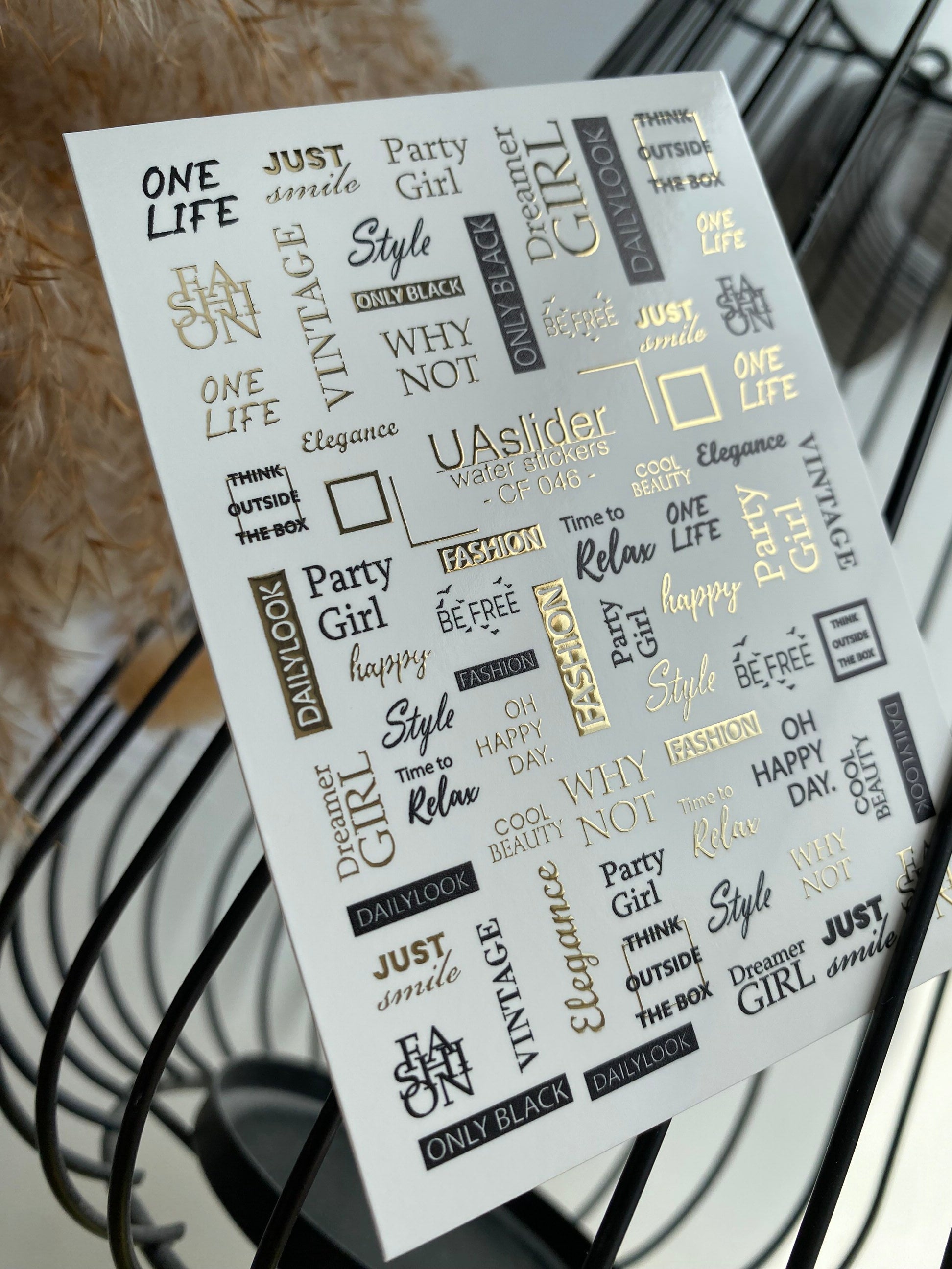 Naklejka na paznokcie CF-046 | Modne cytaty na naklejki wodne na paznokcie | Złote i czarne litery, typografiaCF_046